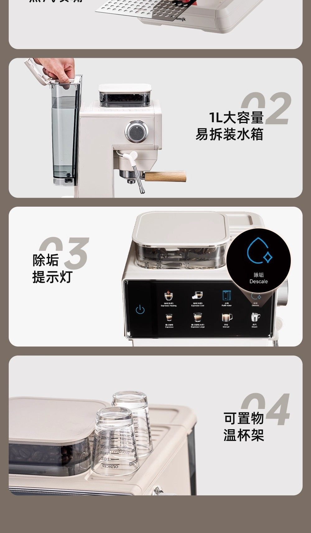 | Function | Dry grinding,Steam,Insulation,Lcd display,Heating,Automatic cleaning,Temperature control,Easy to clean,Grind beans,Anti-dry burning protection |