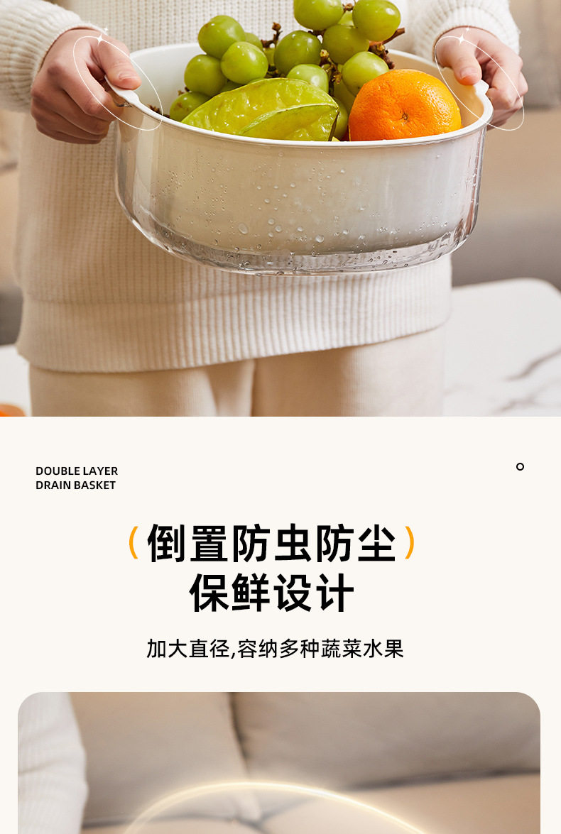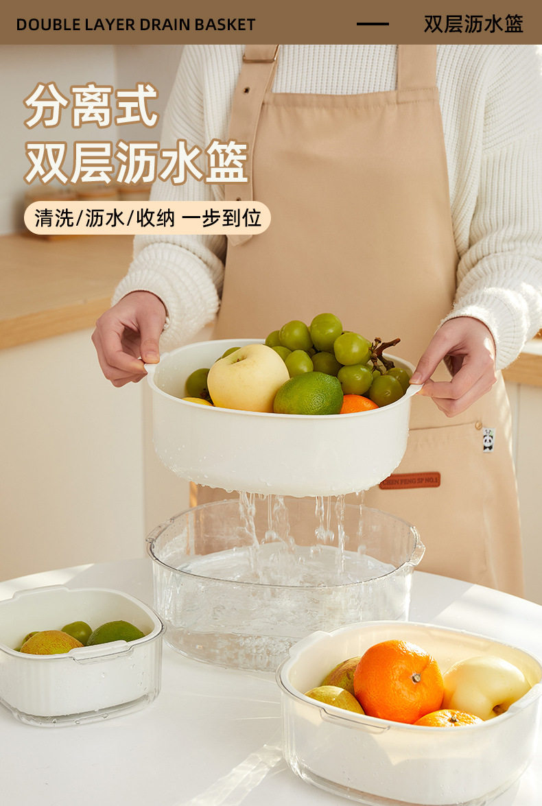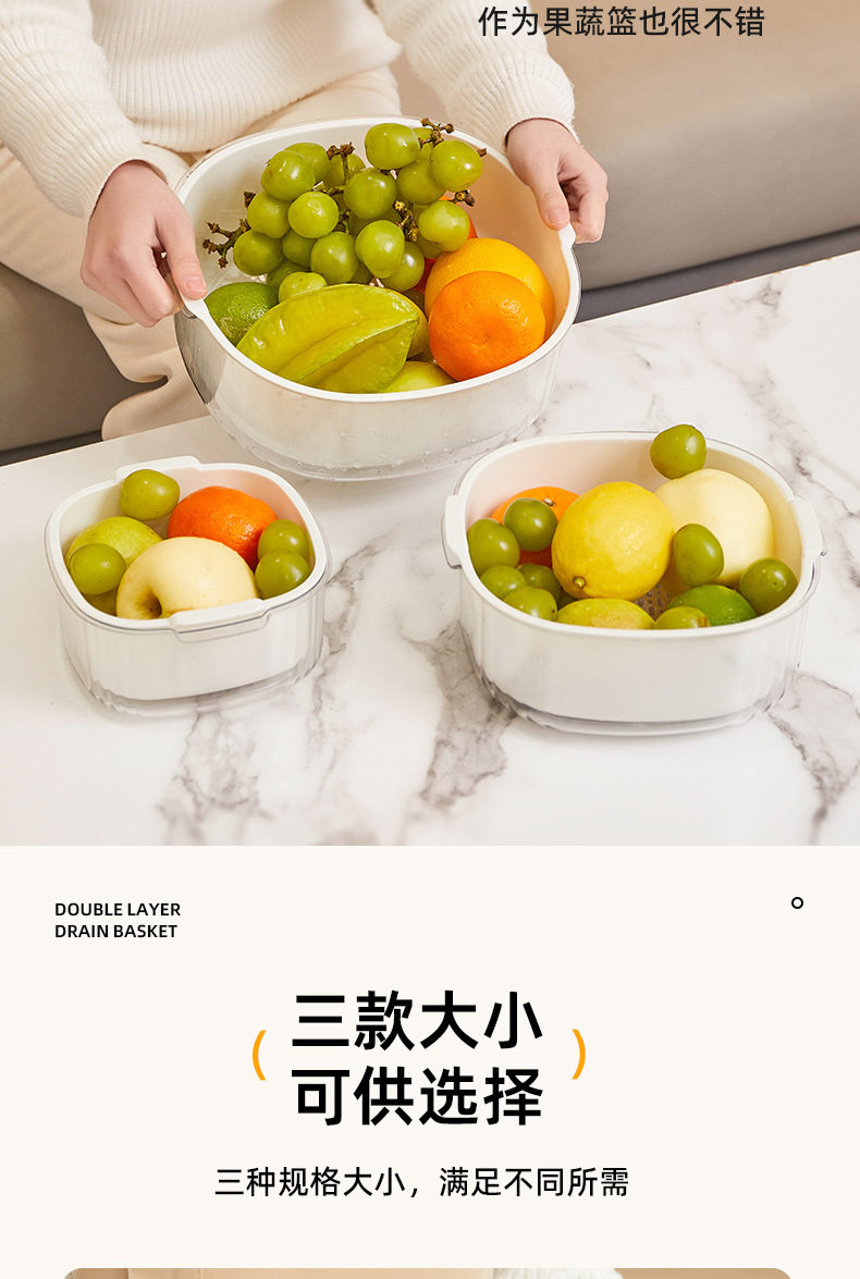 Double-Layer Draining Basket for Kitchen Sink, Living Room Fruit Tray Basket, Vegetable Washing Basin, Coffee Table Storage