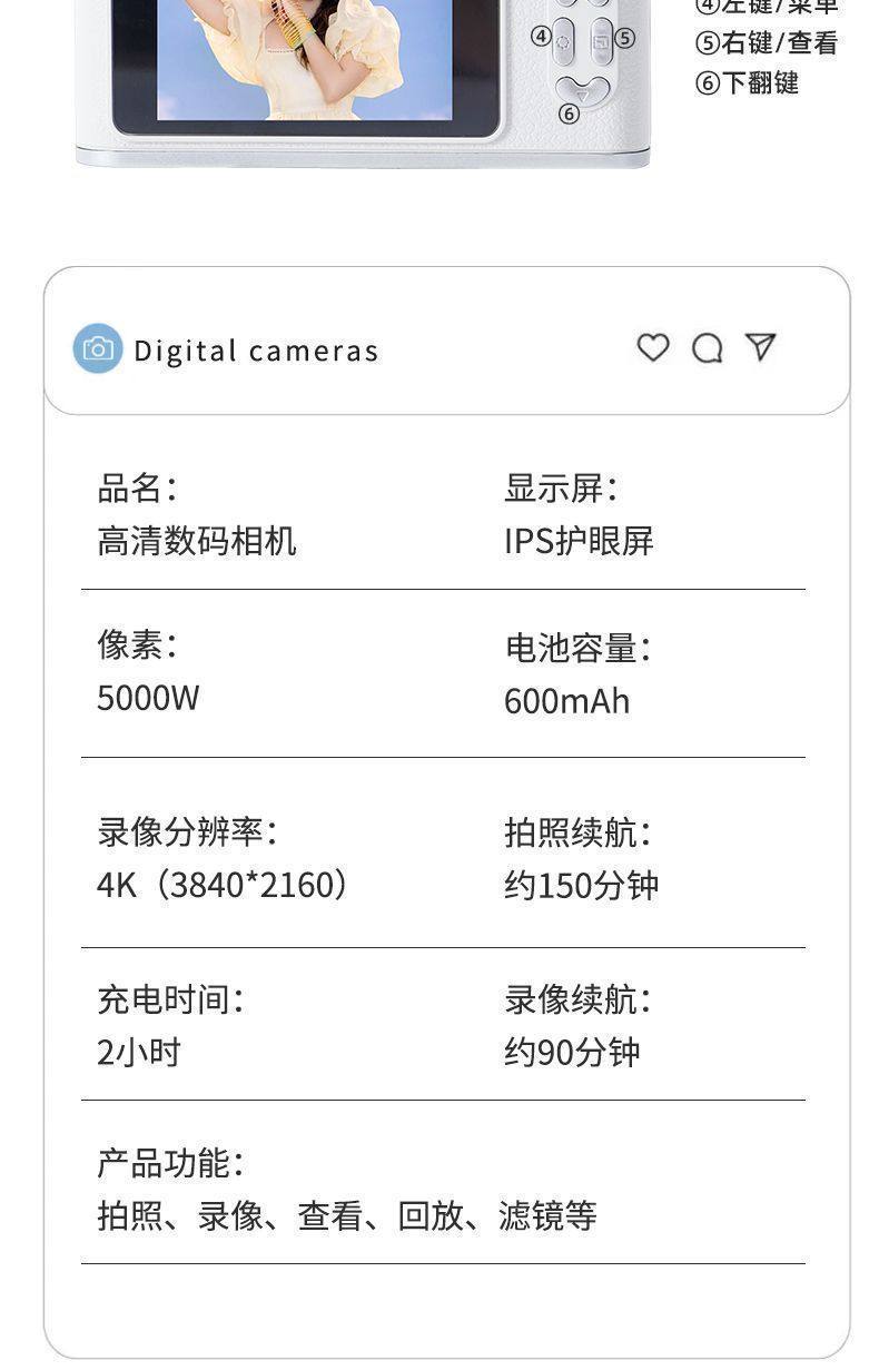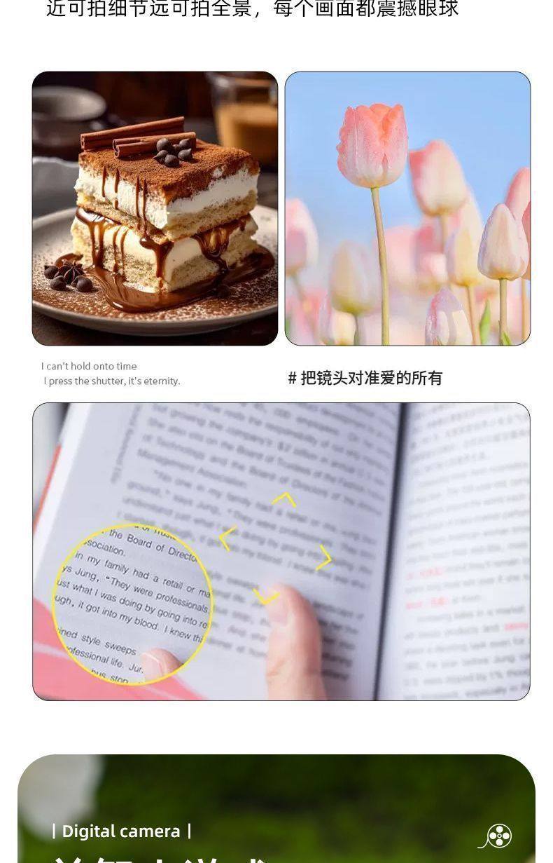 | Body color | Glacier white [autofocus + super long battery life + filter] gift box packaging - [bare machine] no functions, no accessories and stickers + 50 shots,Classic black [auto focus + super long battery life + filter] gift box packaging - [bare machine] no functions, no accessories stickers + 50 shots,Fairy pink [auto focus + super long battery life + filter] gift box packaging - [bare machine] no functions, no accessories and stickers + 50 shots,Glacier white [autofocus + super long battery life + filter] gift box packaging - [100 million pixels + 16g memory card + can store 2000 pictures],Classic black [autofocus + super long battery life + filter] gift box packaging - [100 million pixels + 16g memory card + can store 2000 pictures],Fairy pink [autofocus + super long battery life + filter] gift box packaging - [100 million pixels + 16g memory card + can store 2,000 pictures],Glacier white [autofocus + super long battery life + filter] gift box packaging - [100 million pixels + 32g memory card + can store 4000 pictures],Classic black [autofocus + super long battery life + filter] gift box packaging - [100 million pixels + 32g memory card + can store 4000 pictures],Fairy pink [autofocus + super long battery life + filter] gift box packaging - [100 million pixels + 32g memory card + can store 4,000 pictures],Glacier white [autofocus + super long battery life + filter] gift box packaging - [100 million pixels + 128g memory card + can store 80,000 pictures],Glacier white [autofocus + super long battery life + filter] gift box packaging - [512g memory card + 200,000 photos can be taken] limited edition,Glacier white [autofocus + super long battery life + filter] gift box packaging - [100 million pixels + 64g memory card + can store 8,000 pictures],Classic black [autofocus + super long battery life + filter] gift box packaging - [512g memory card + 200,000 photos can be taken] limited edition,Classic black [autofocus + super long battery life + filter] gift box packaging - [100 million pixels + 128g memory card + can store 80,000 pictures],Classic black [autofocus + super long battery life + filter] gift box packaging - [100 million pixels + 64g memory card + can store 8,000 pictures],Fairy pink [autofocus + super long battery life + filter] gift box packaging - [512g memory card + 200,000 photos can be taken] limited edition,Fairy pink [autofocus + super long battery life + filter] gift box packaging - [100 million pixels + 128g memory card + can store 80,000 pictures],Fairy pink [autofocus + super long battery life + filter] gift box packaging - [100 million pixels + 64g memory card + can store 8,000 pictures] |