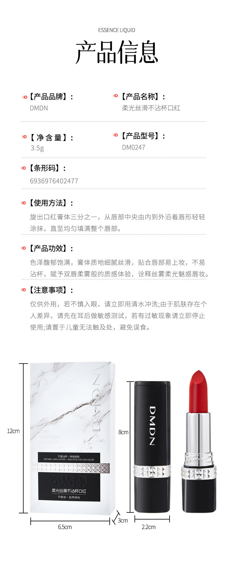 | Product name | Dmdn soft light silky non-stick lipstick |