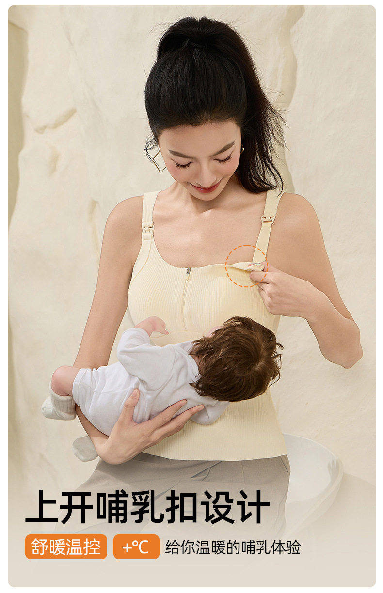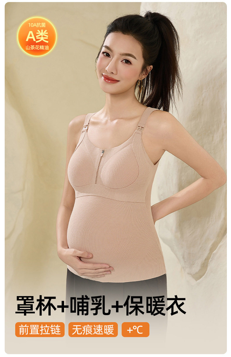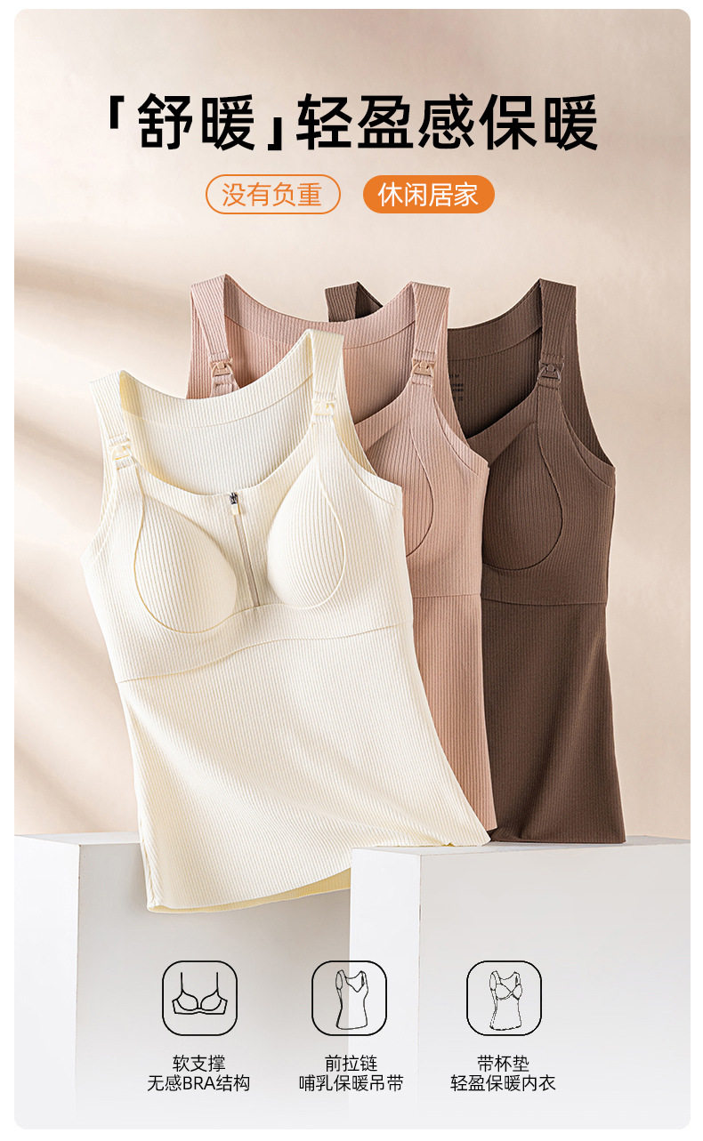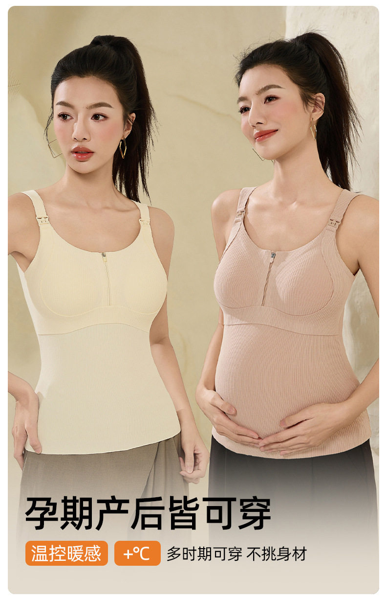Maternity Pure Cotton Nursing Tank Top for Women, Autumn and Winter Postpartum Breastfeeding Thermal Large Size Camisole