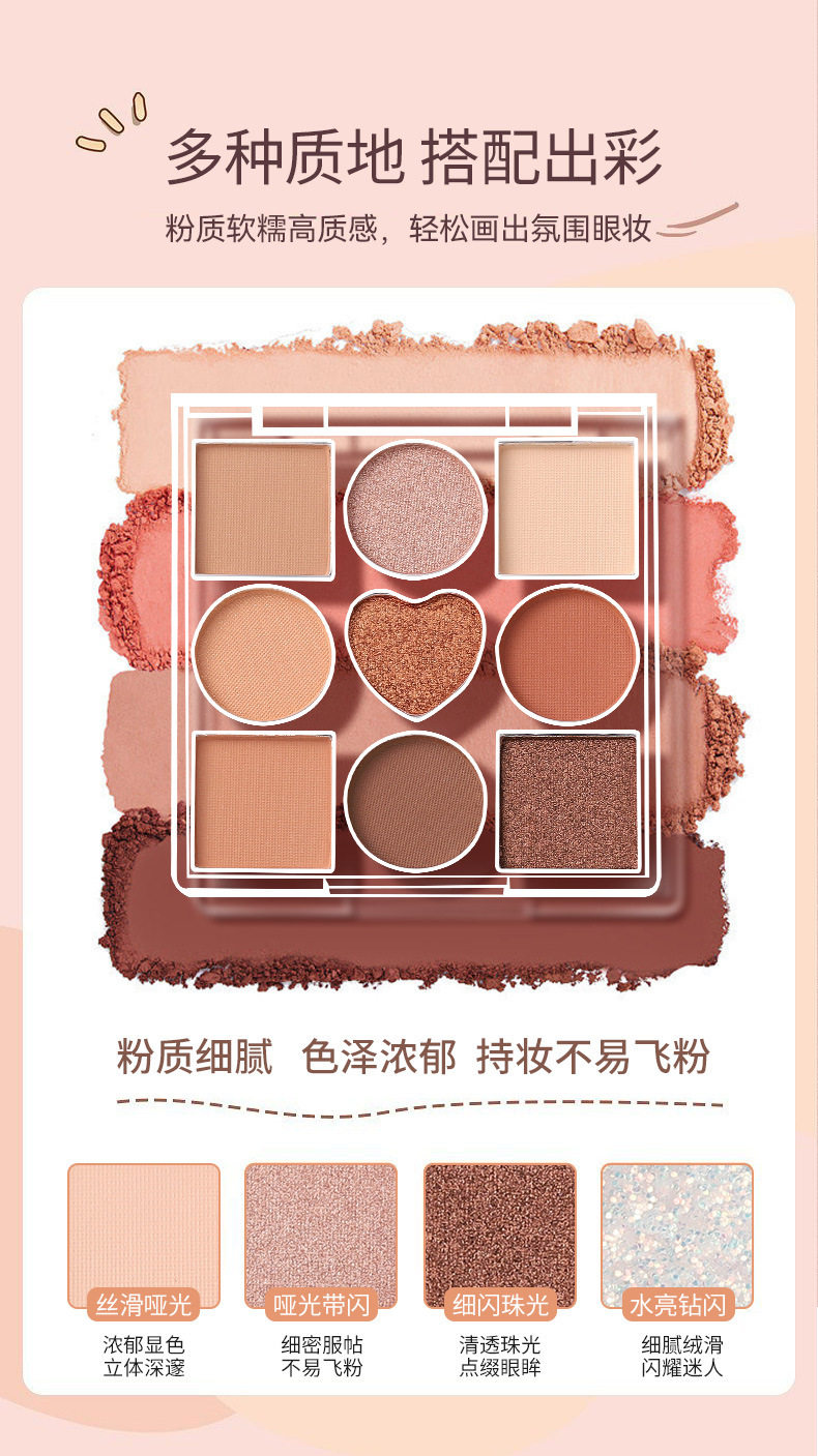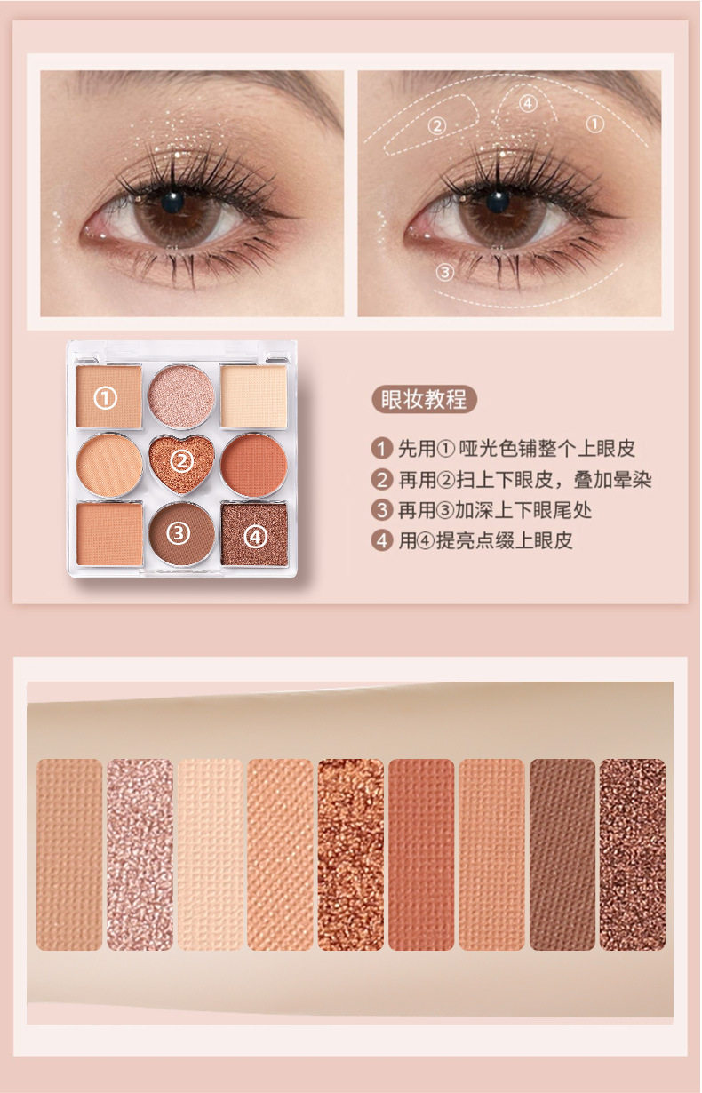 Lamela Afternoon Tea Nine Color Eyeshadow Earth Color Matte Pearl Glitter Powder Sequin Eyeshadow Palette 5180