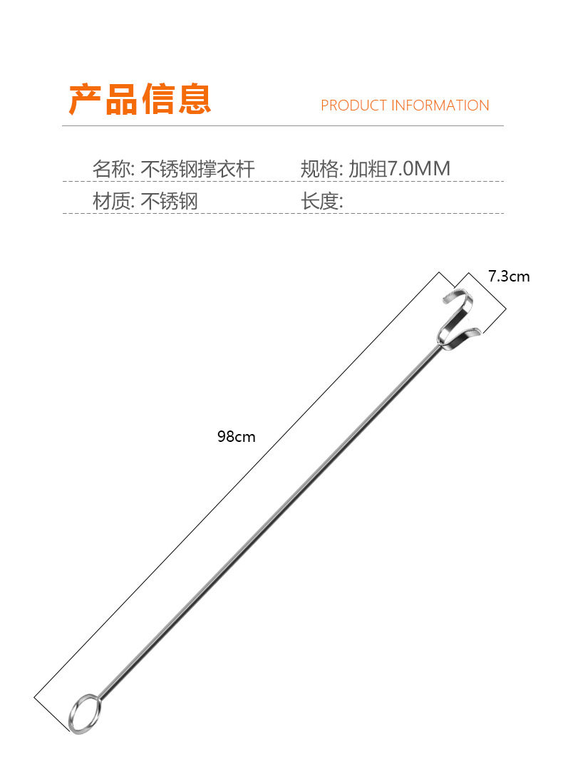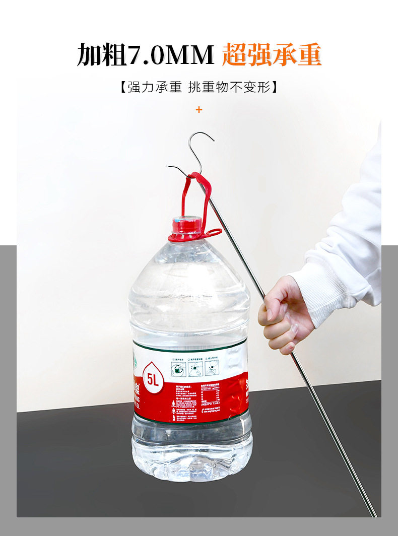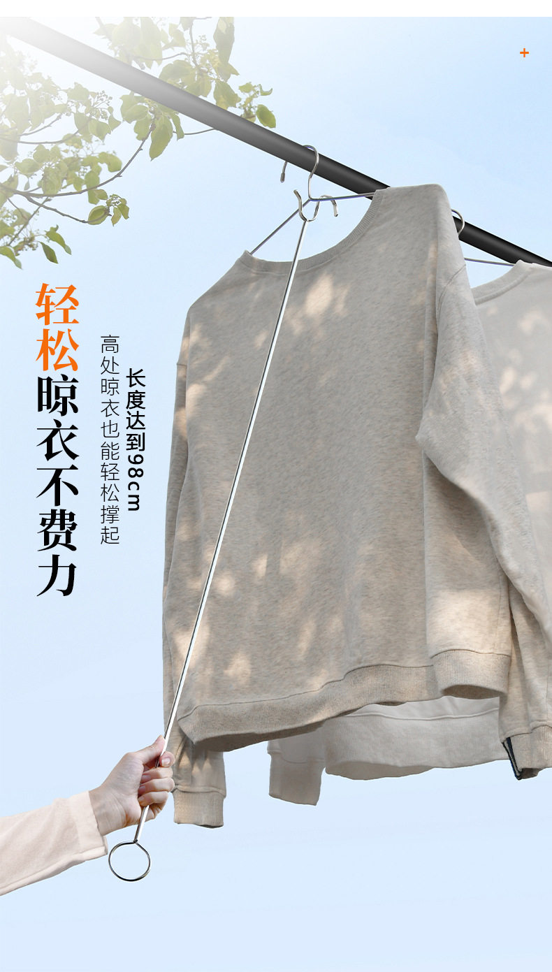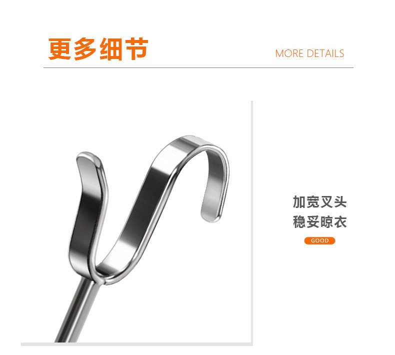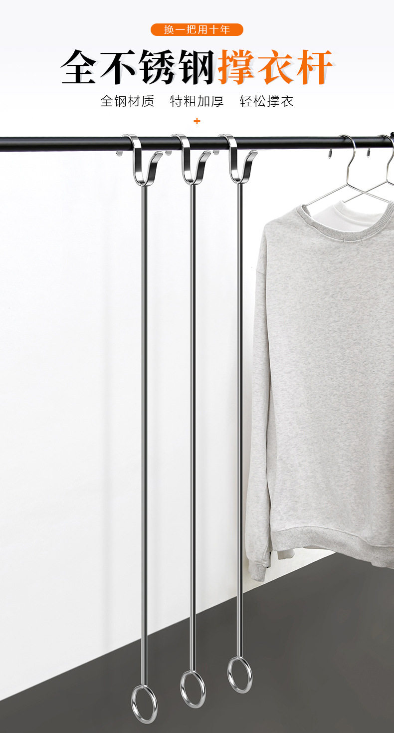 Solid Stainless Steel Clothes Drying Fork Balcony Clothes Rod Household Extended Creative Clothes Drying Rod Clothes Drying Rod Hanging Clothes Fork