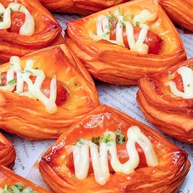 Aokun Sausage Danish Crispy 336g*12 Pieces Commercial Snack Quick-Frozen Semi-Finished Danish Bread Afternoon Tea Whole Box