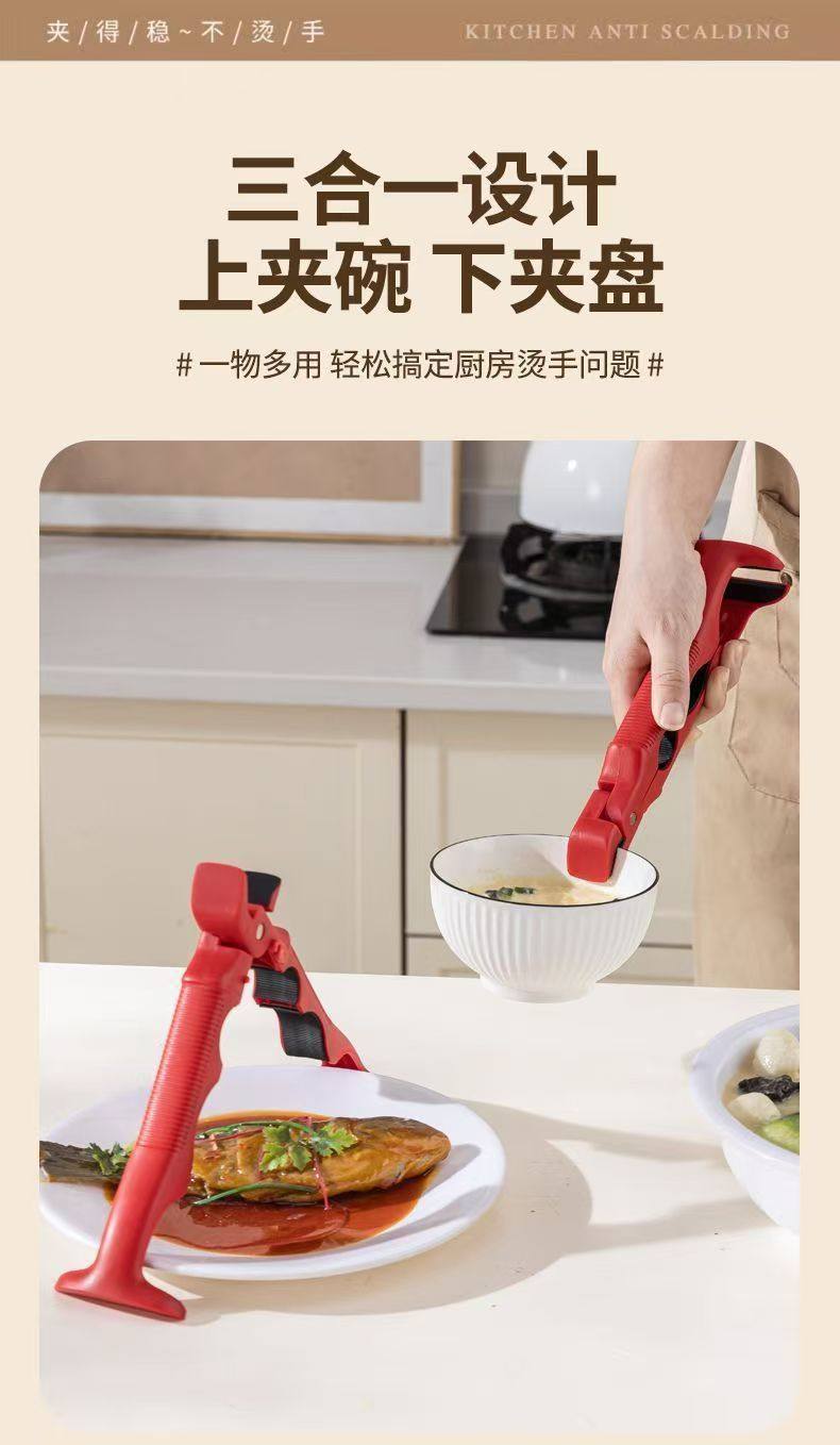Anti-Scalding Three-In-One Bowl and Plate Holder, Kitchen Microwave Bowl Clip, Casserole Non-Slip Clip
