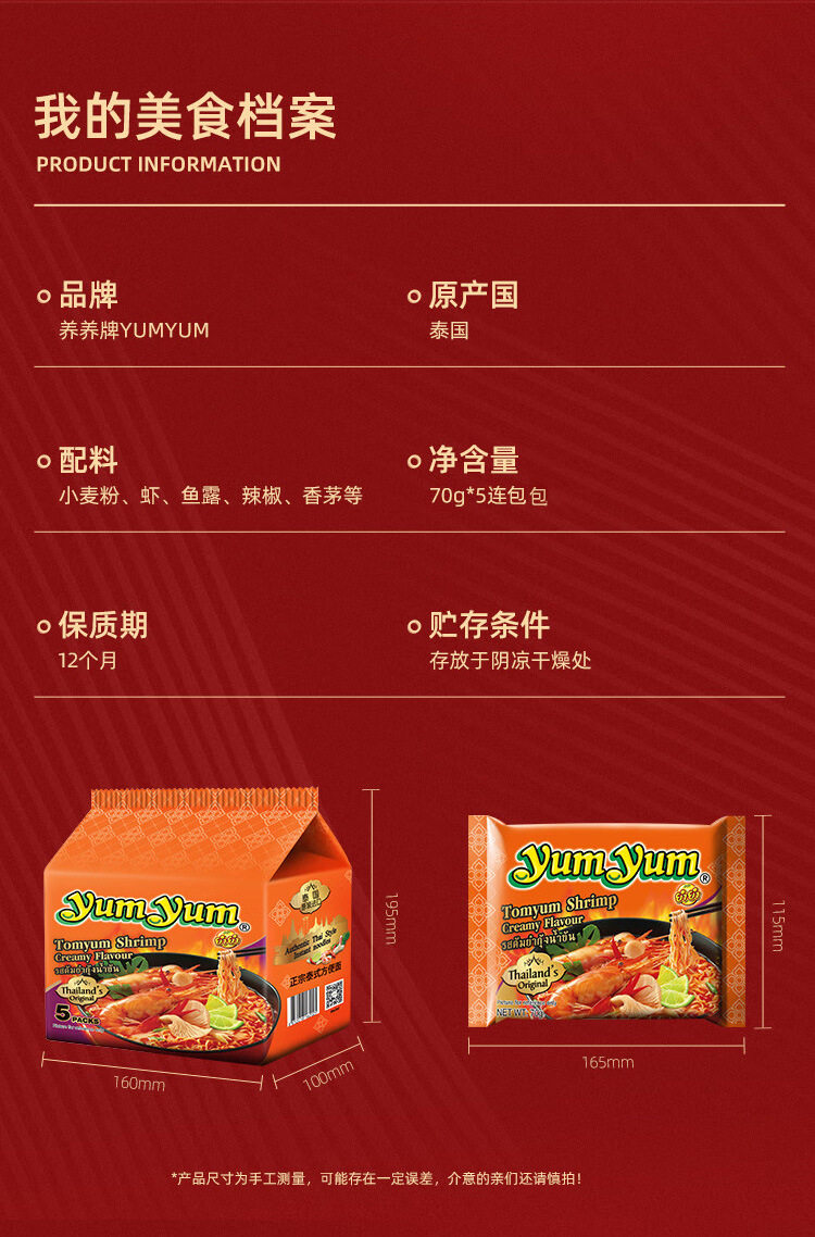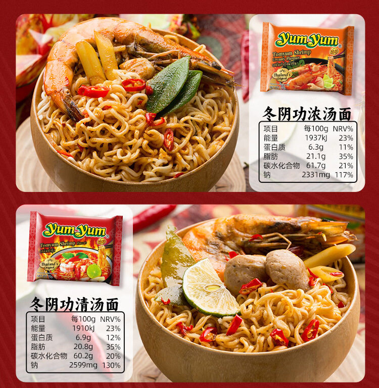 Thailand Imported Yumyum Yangyang Brand Tom Yum Instant Noodles Hot and Sour Shrimp Soup Instant Late Night Snack Instant Noodles Mixed Noodles