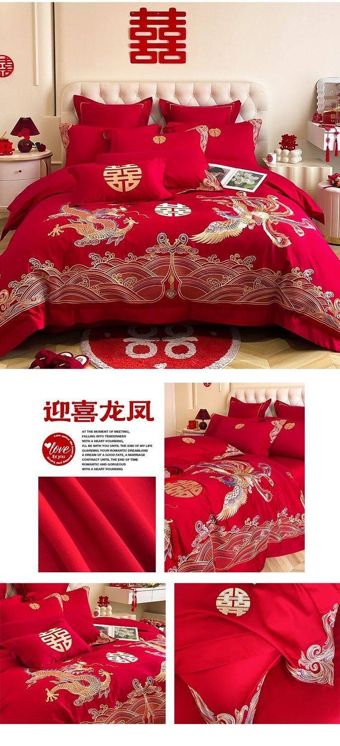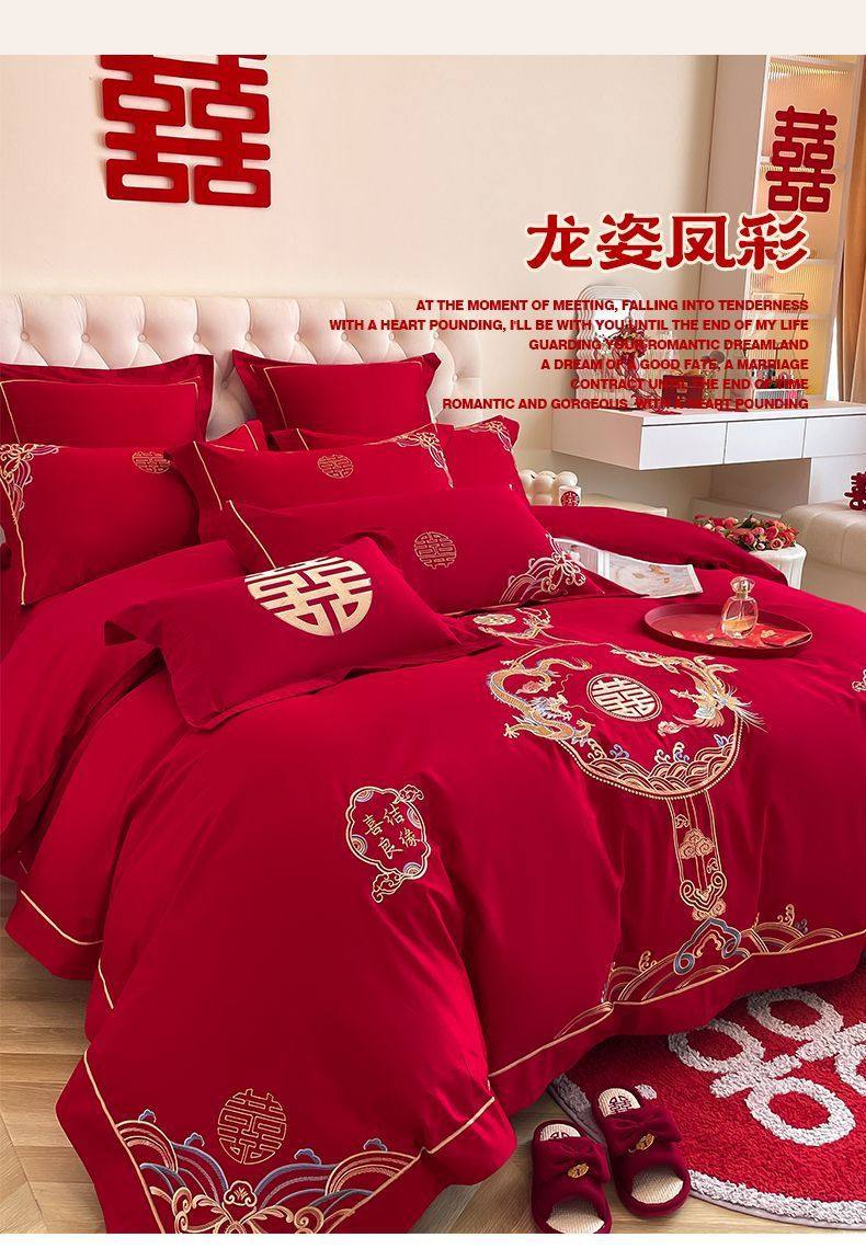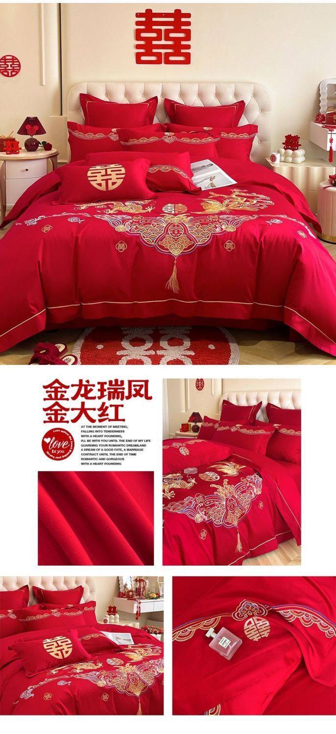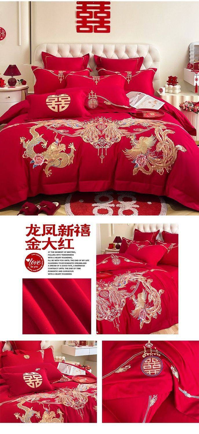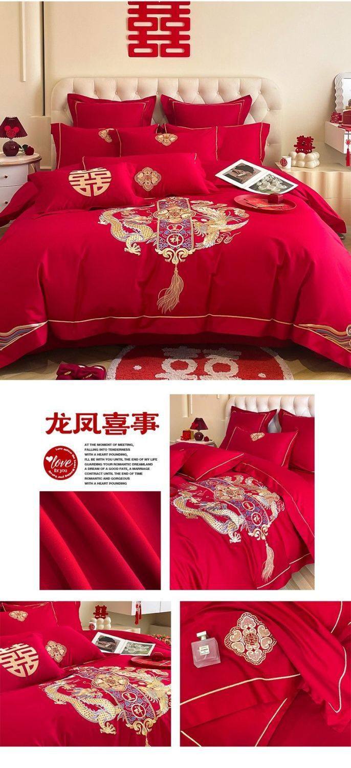 Wedding Quilt Seven-Piece Set, Complete Wedding Room Bedding Set, Dragon and Phoenix Four-Piece Set, Festive Bride's Dowry Quilt Wholesale