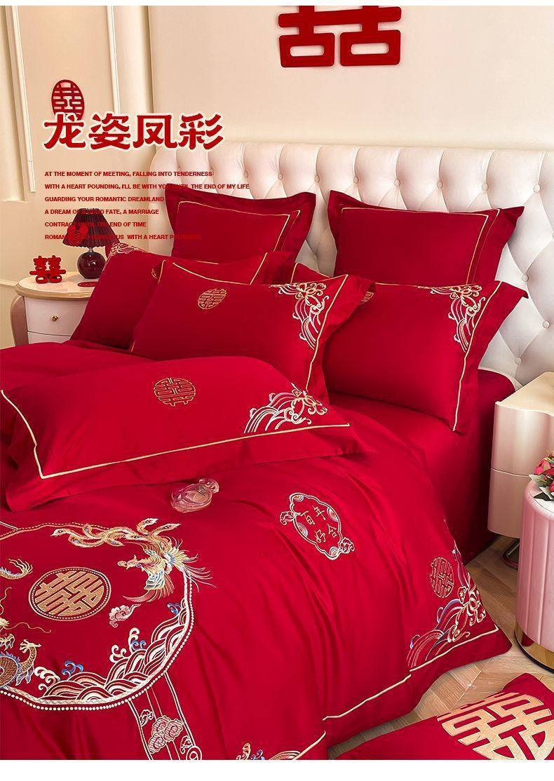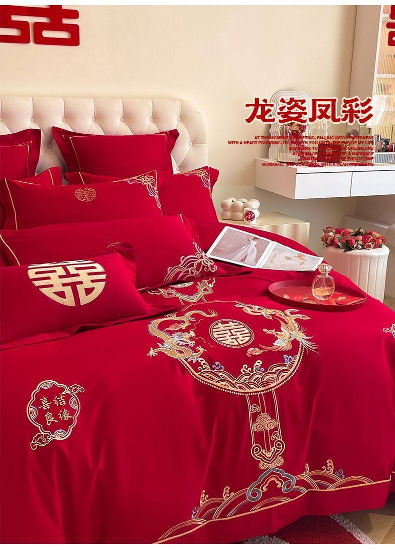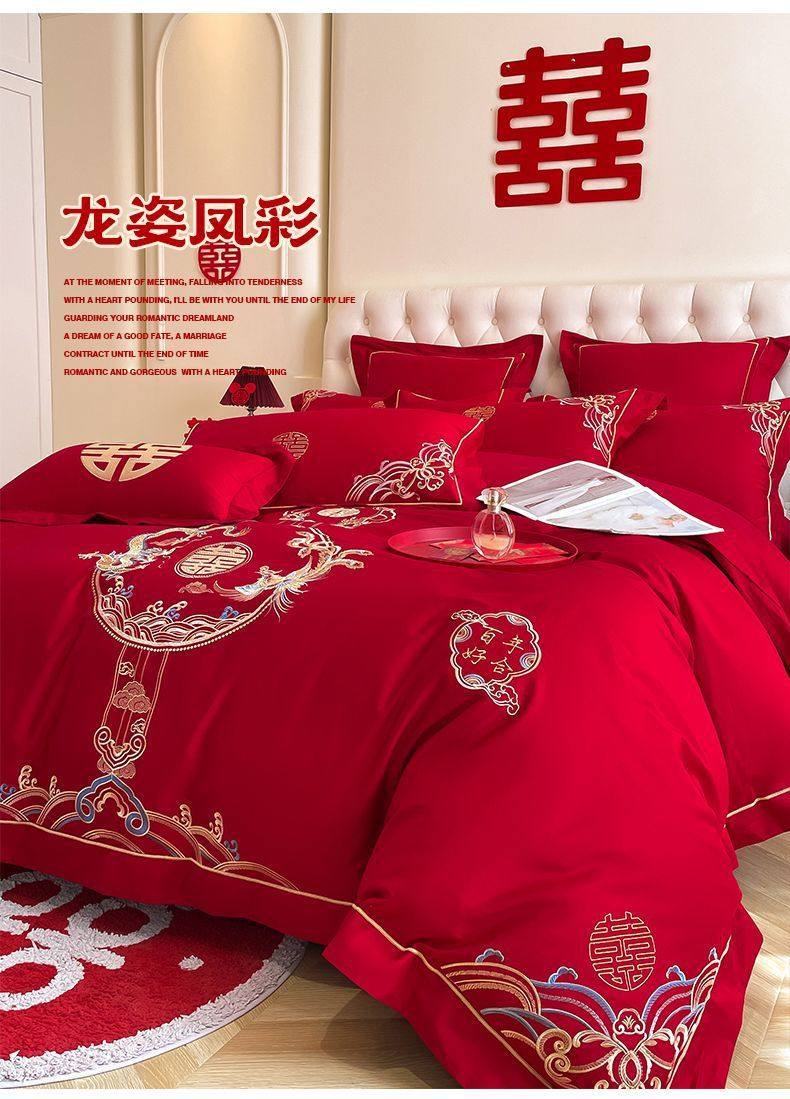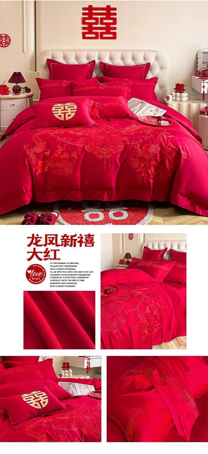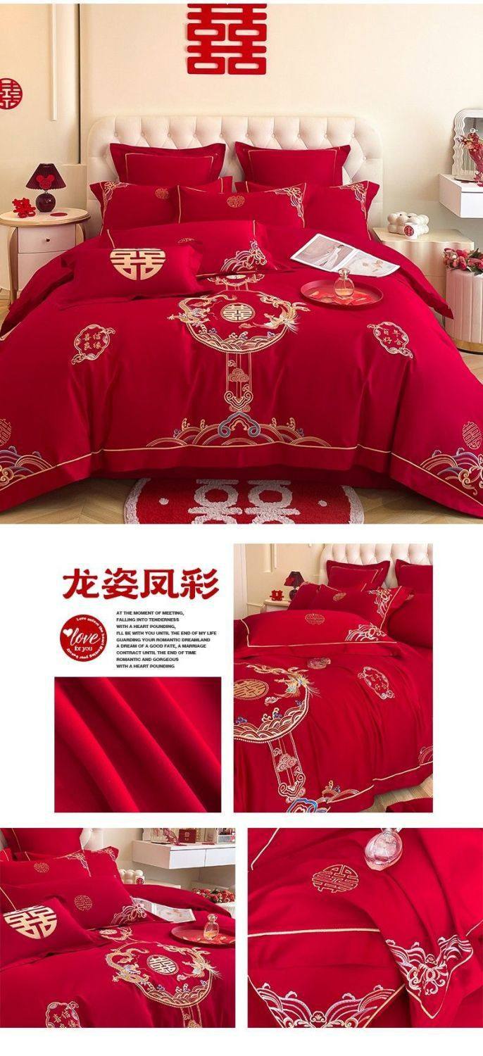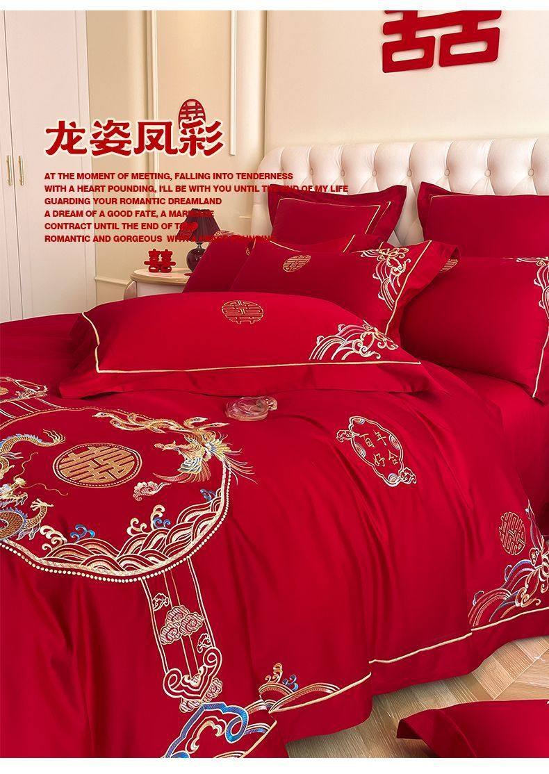 Wedding Quilt Seven-Piece Set, Complete Wedding Room Bedding Set, Dragon and Phoenix Four-Piece Set, Festive Bride's Dowry Quilt Wholesale