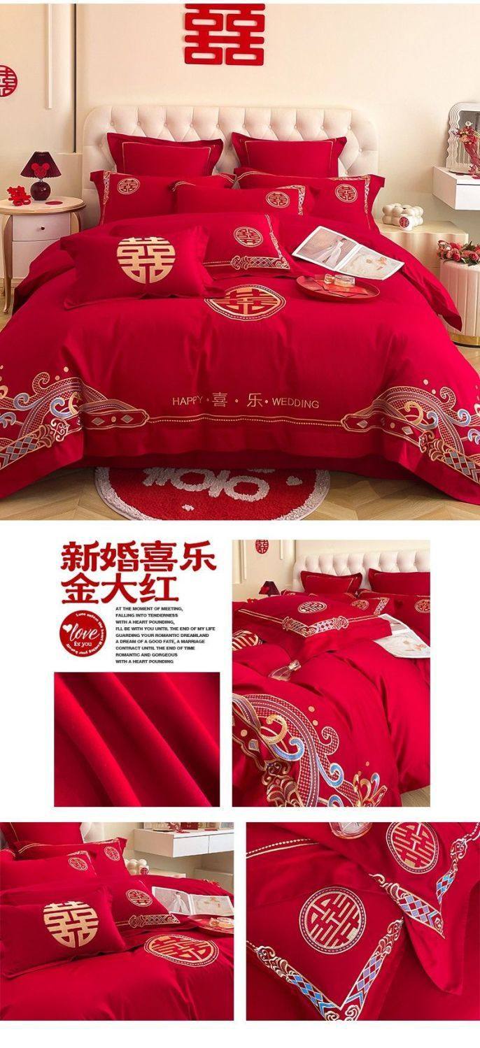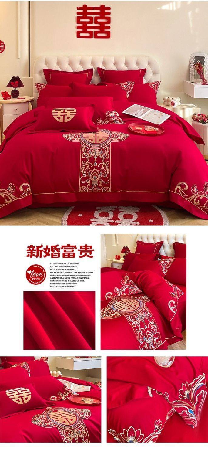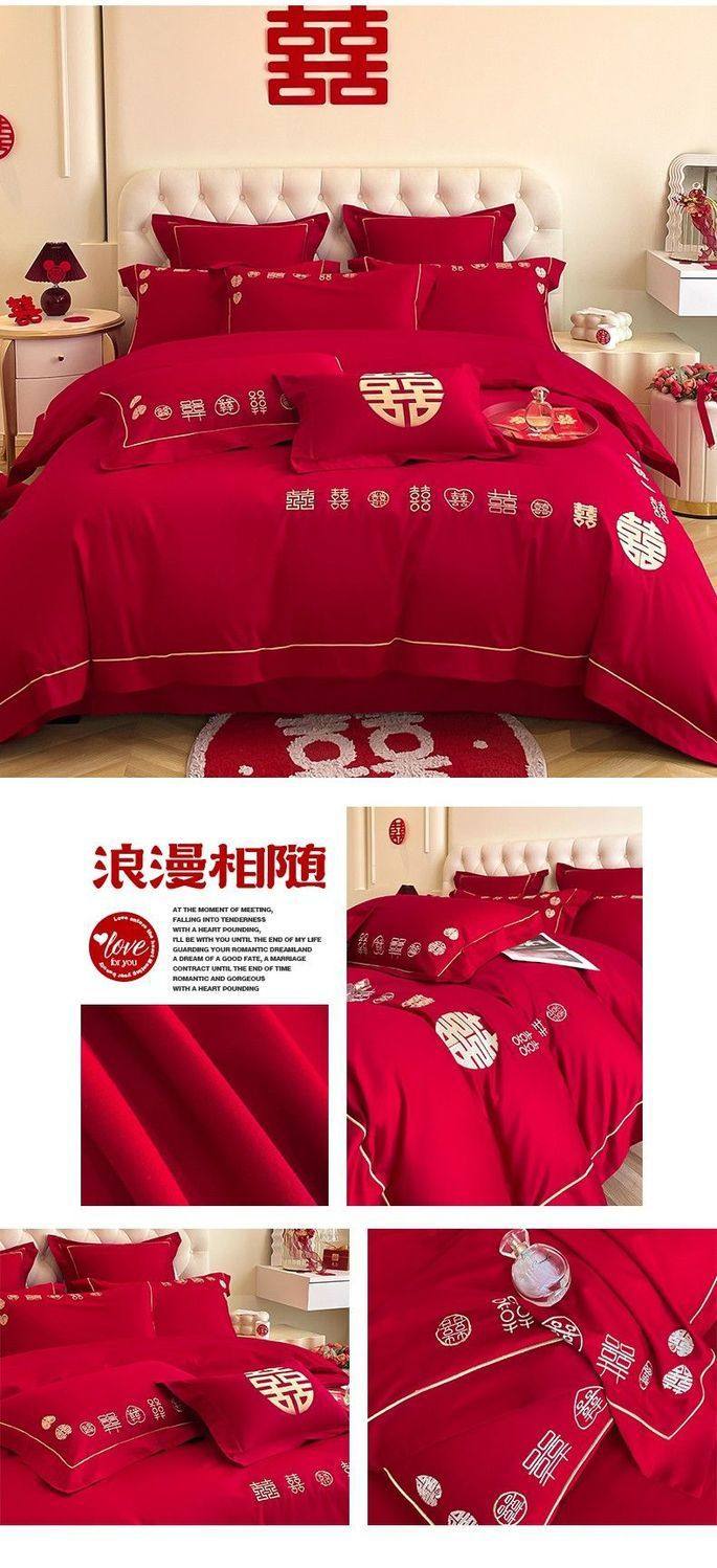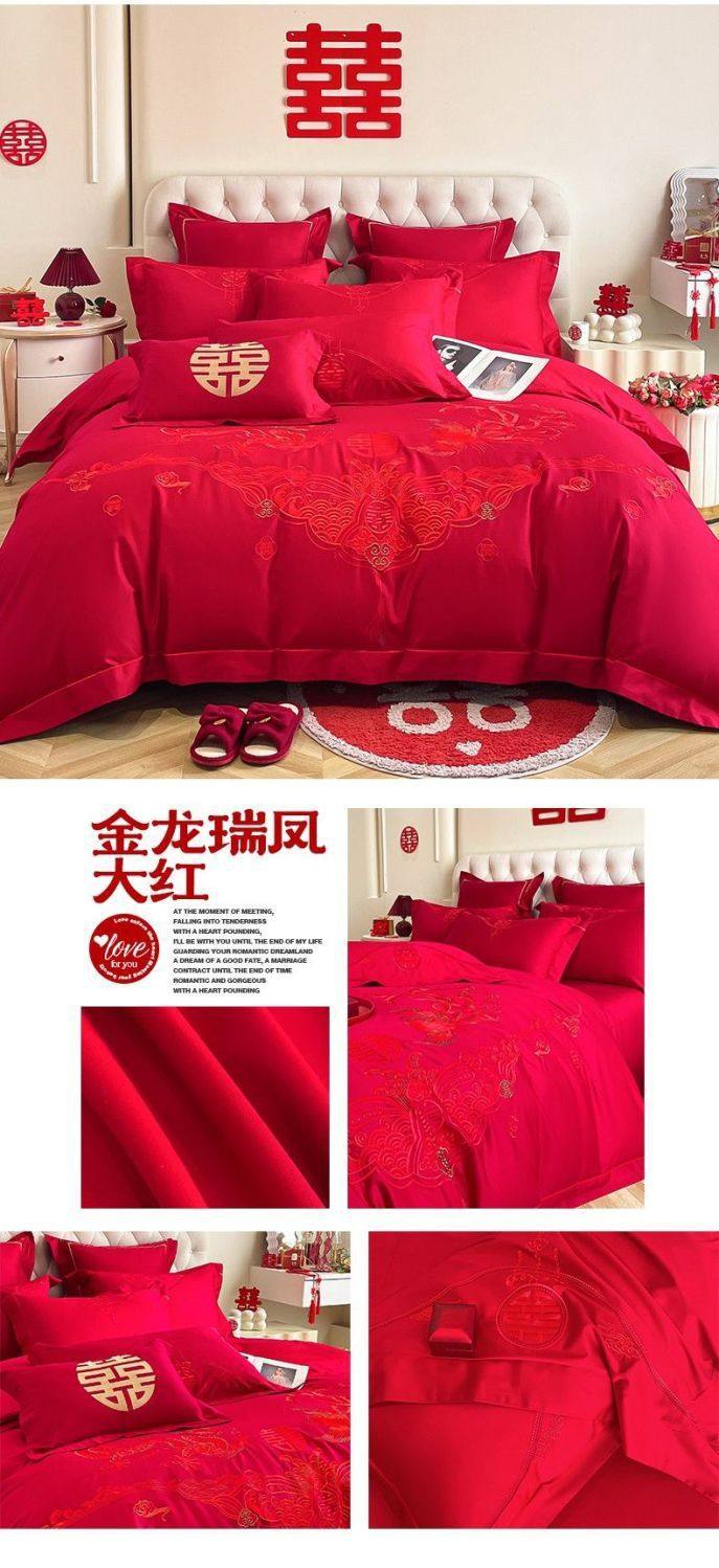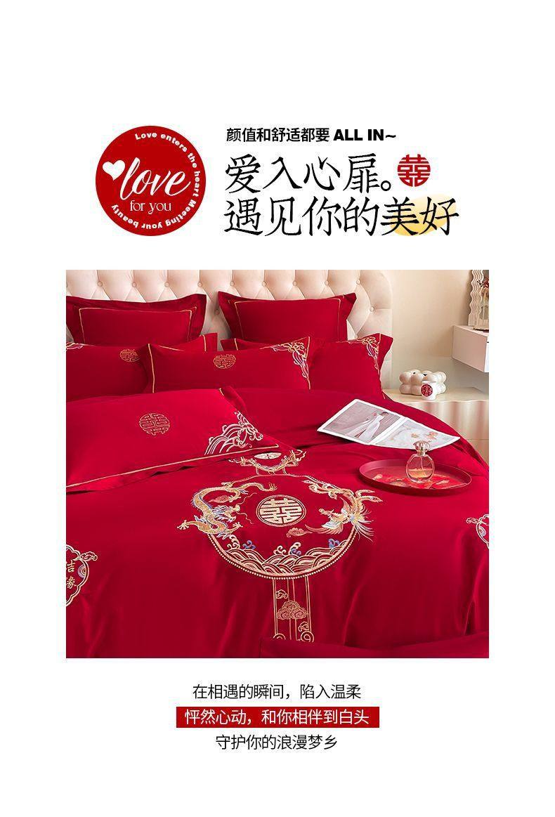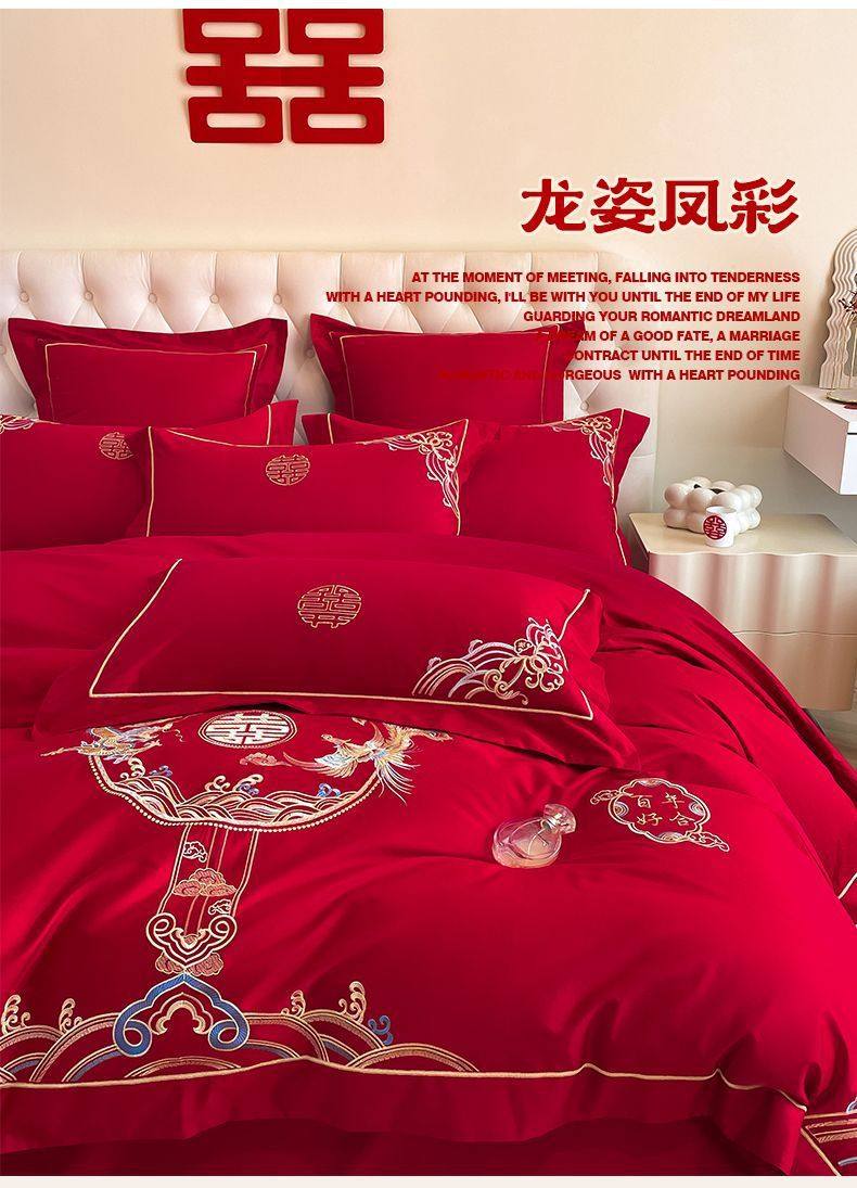 Wedding Quilt Seven-Piece Set, Complete Wedding Room Bedding Set, Dragon and Phoenix Four-Piece Set, Festive Bride's Dowry Quilt Wholesale