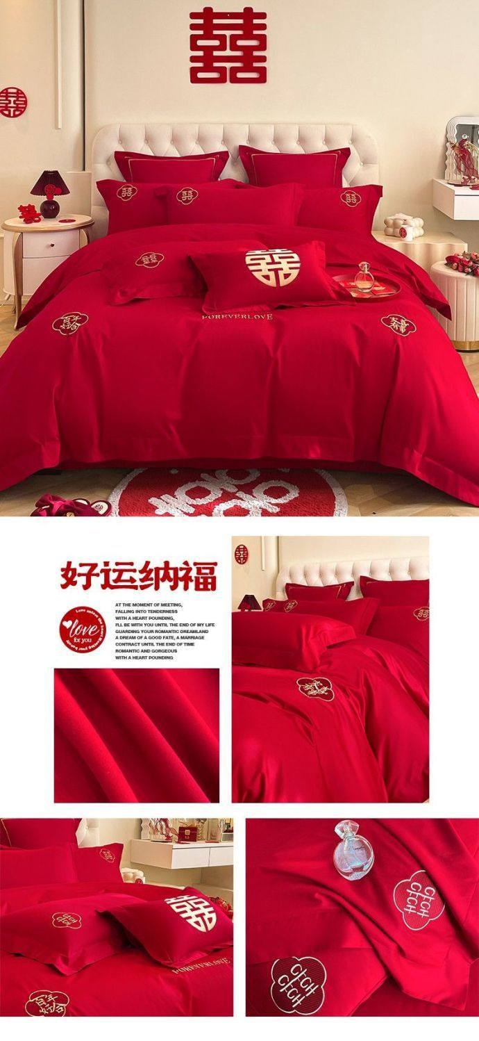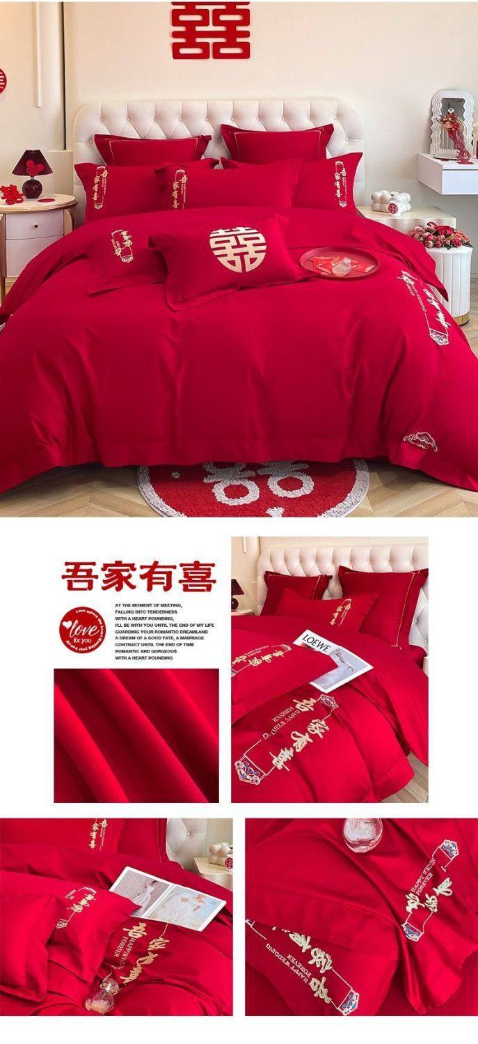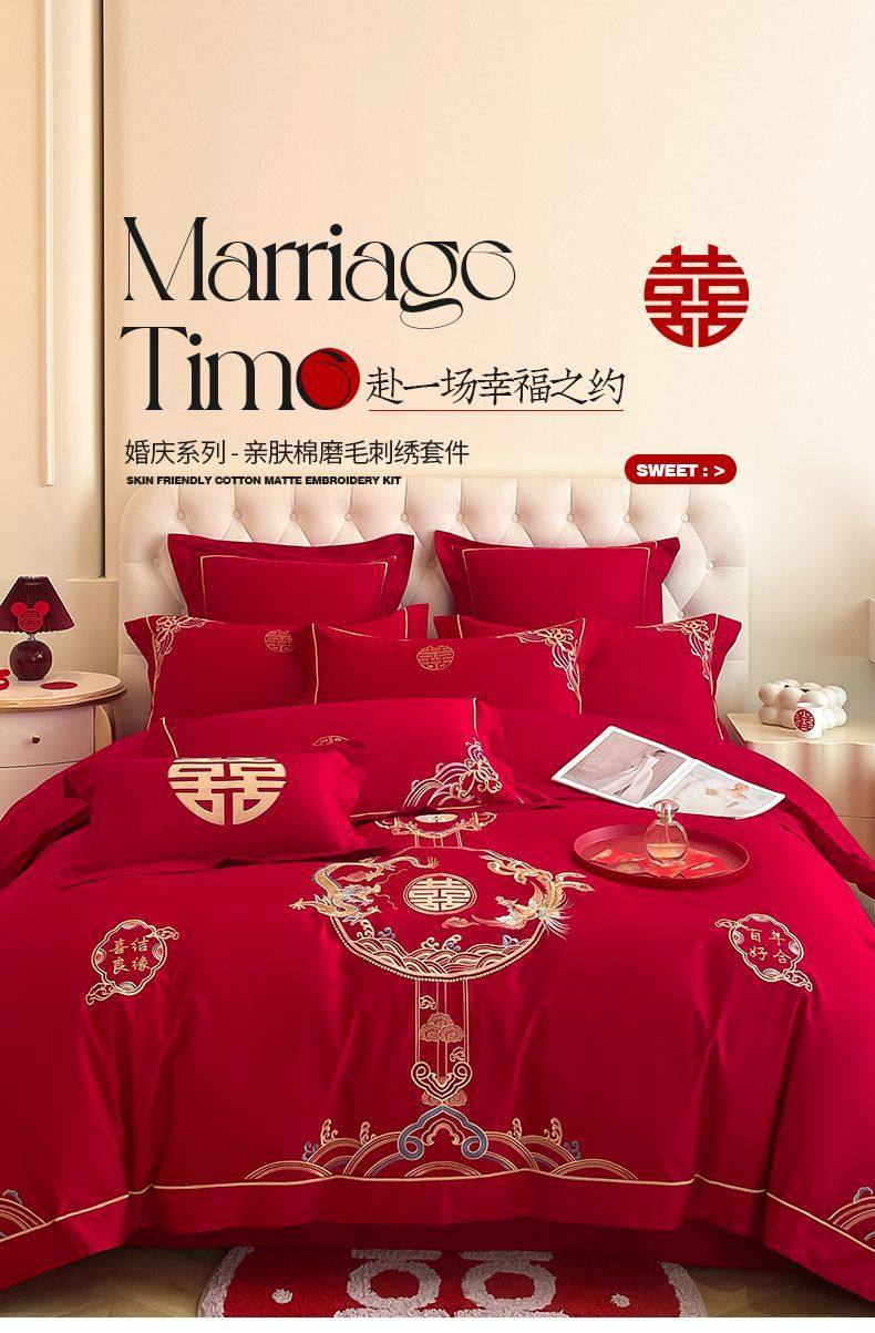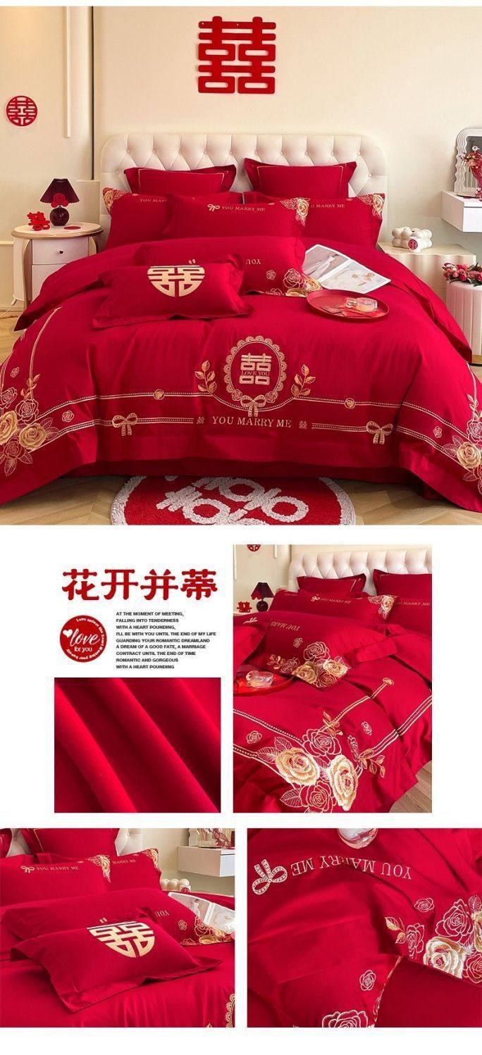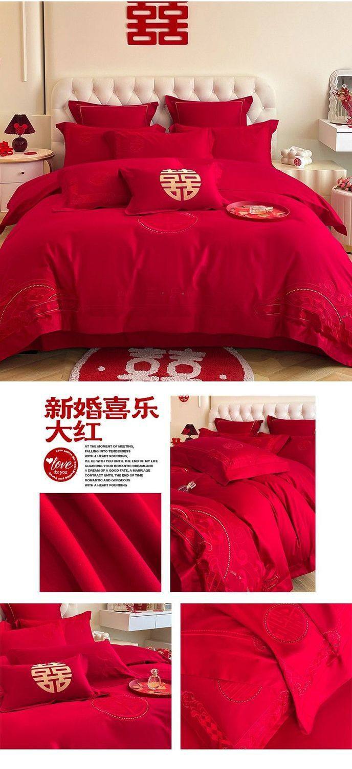 Wedding Quilt Seven-Piece Set, Complete Wedding Room Bedding Set, Dragon and Phoenix Four-Piece Set, Festive Bride's Dowry Quilt Wholesale