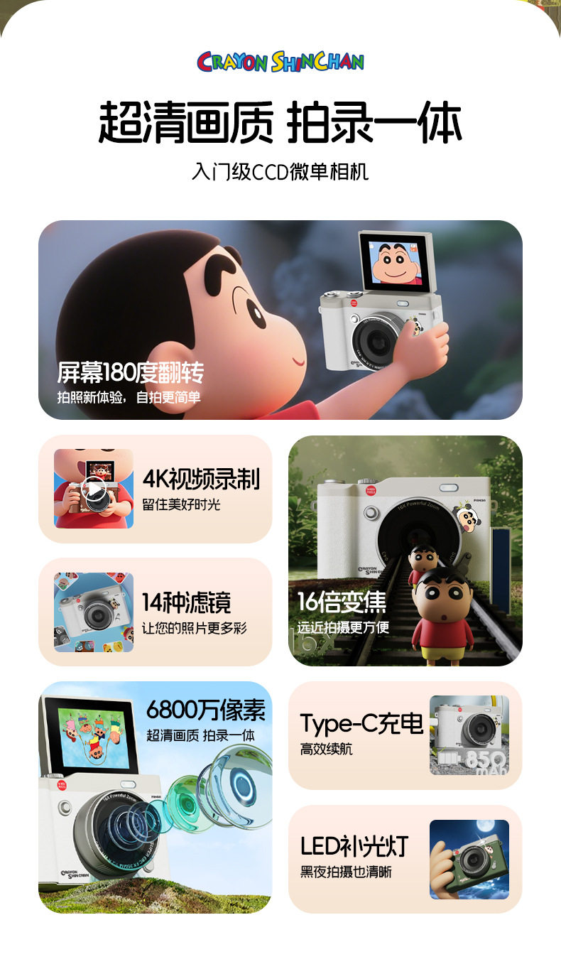 Crayon Shin-Chan Ccd Digital Camera Dual-Camera Student Campus Entry-Level Mirrorless Travel Photography Lvog Officially Licensed