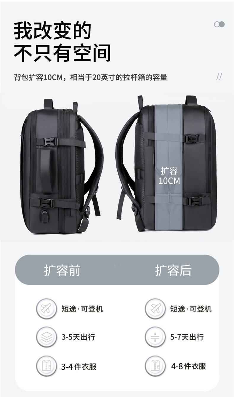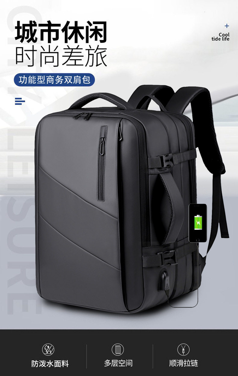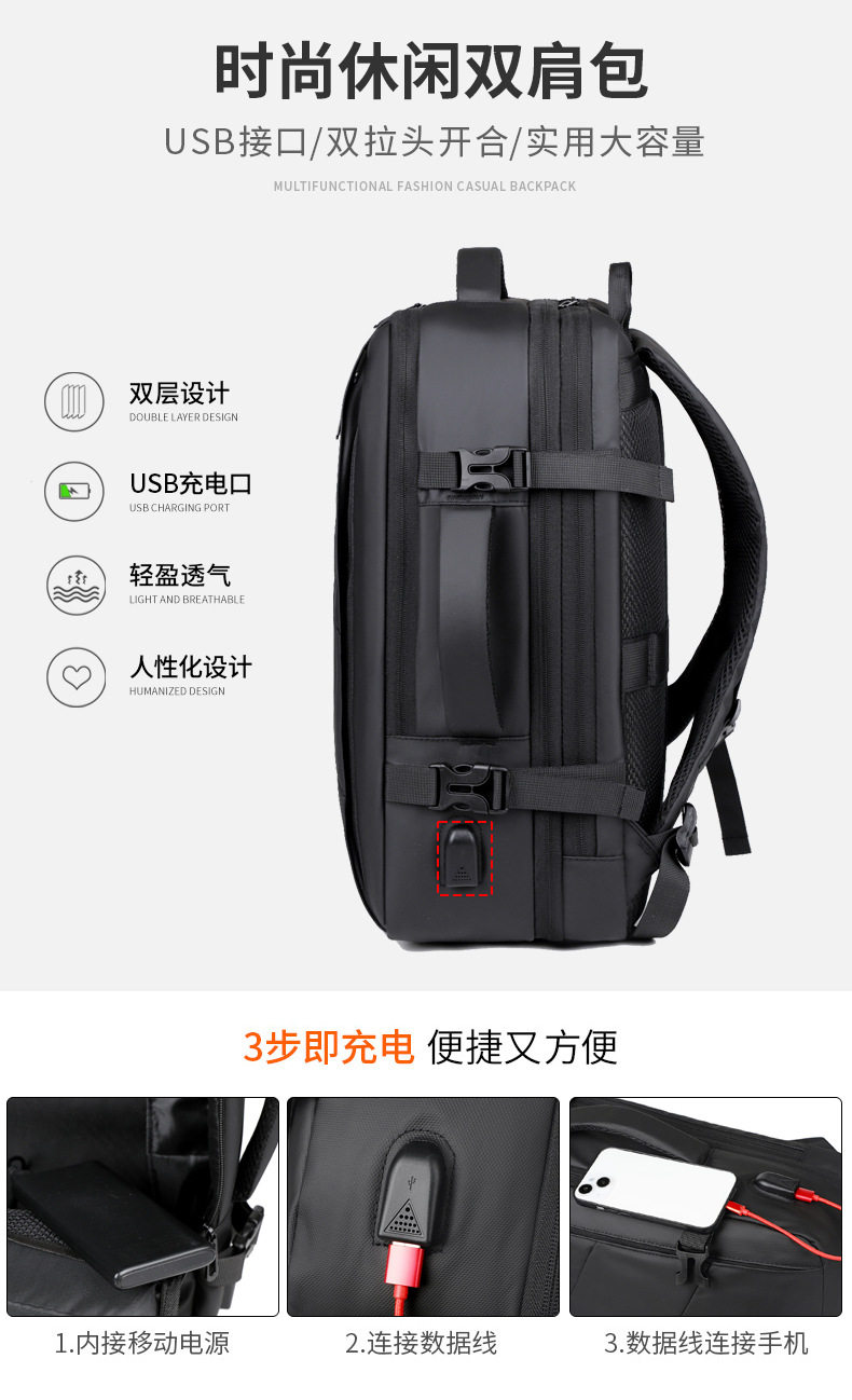 Cross-Border Backpack Men's Large-Capacity Laptop Bag Expandable Business Backpack Outdoor Travel Backpack