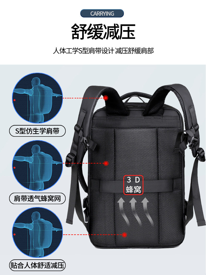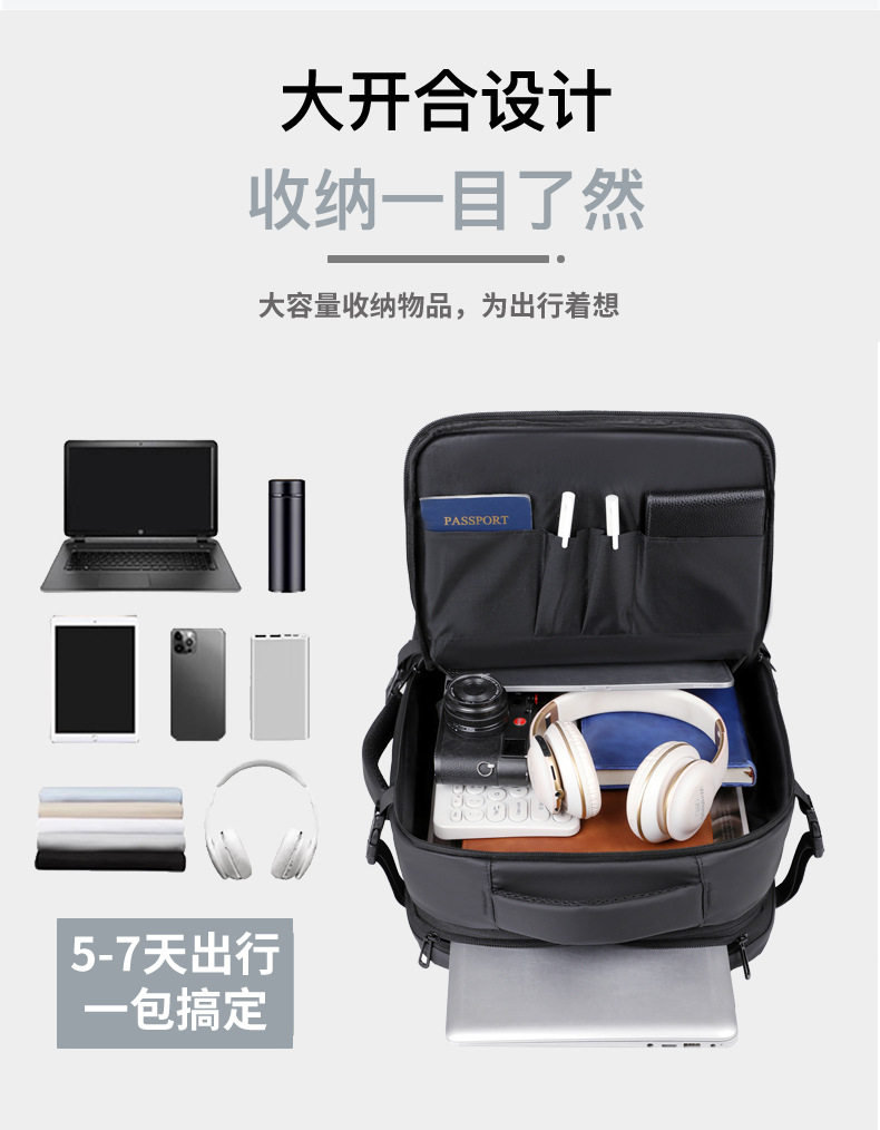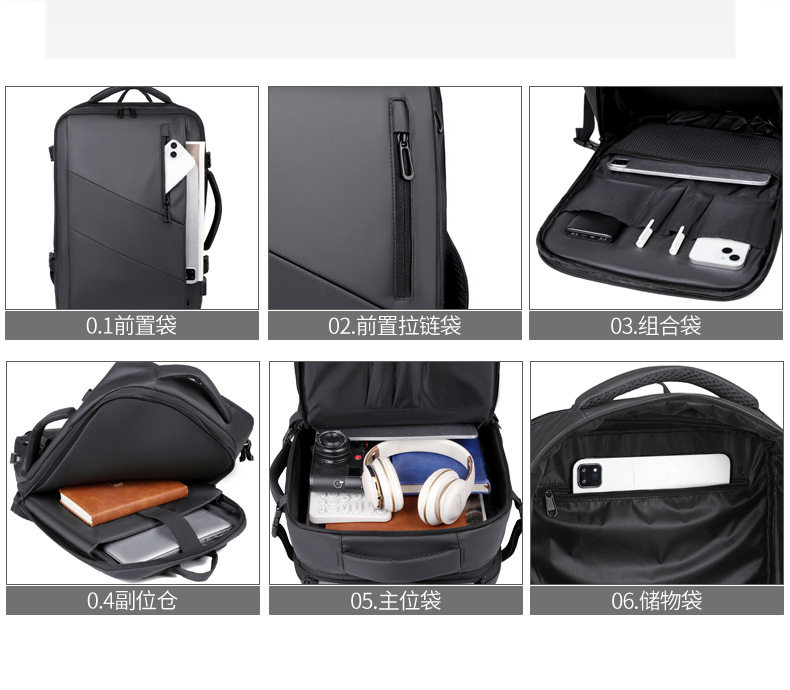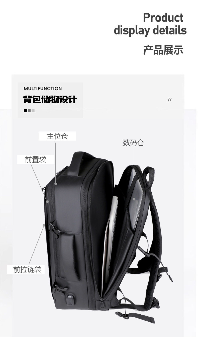 Cross-Border Backpack Men's Large-Capacity Laptop Bag Expandable Business Backpack Outdoor Travel Backpack