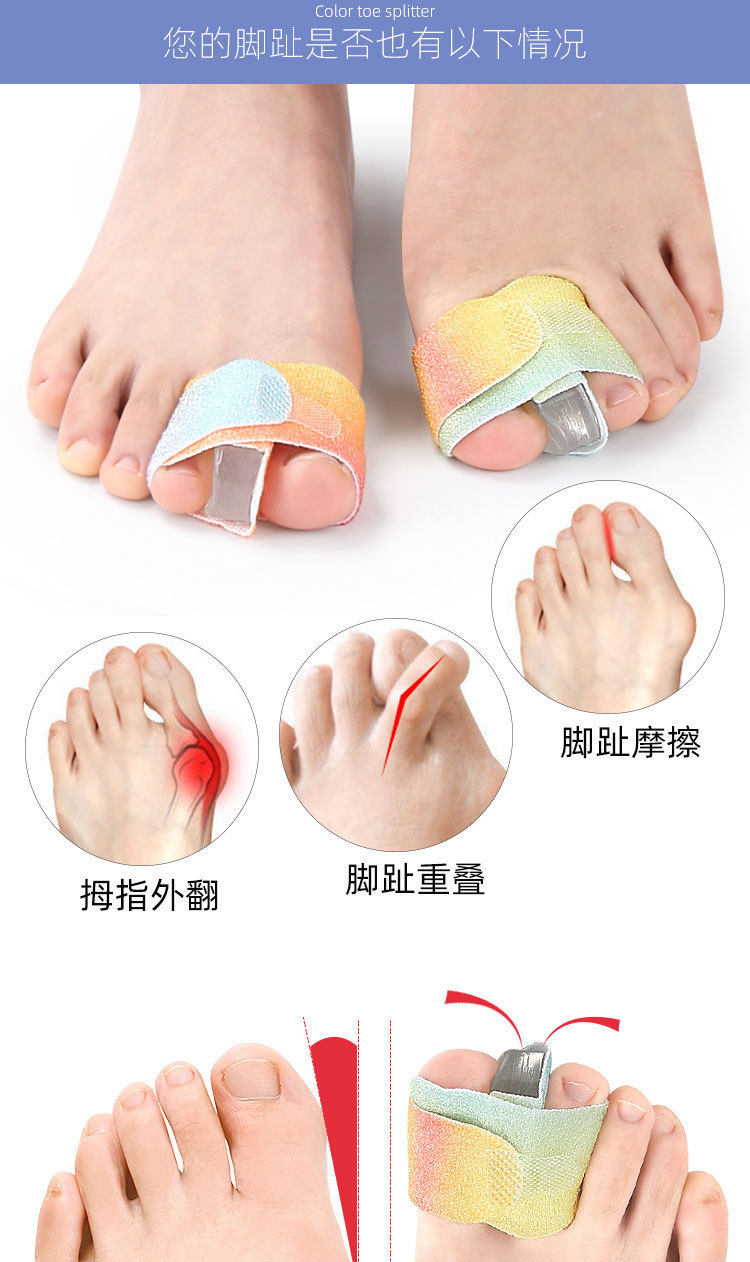 Colorful Toe Separator, Thumb Valgus, Overlapping Toe Separator, Wavy Strip, Toe Separator That Can Be Used Day and Night