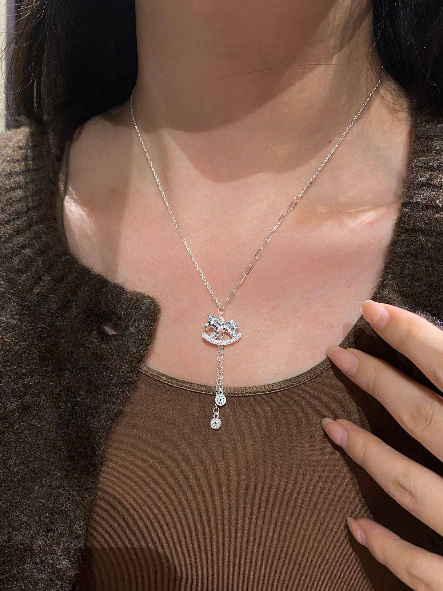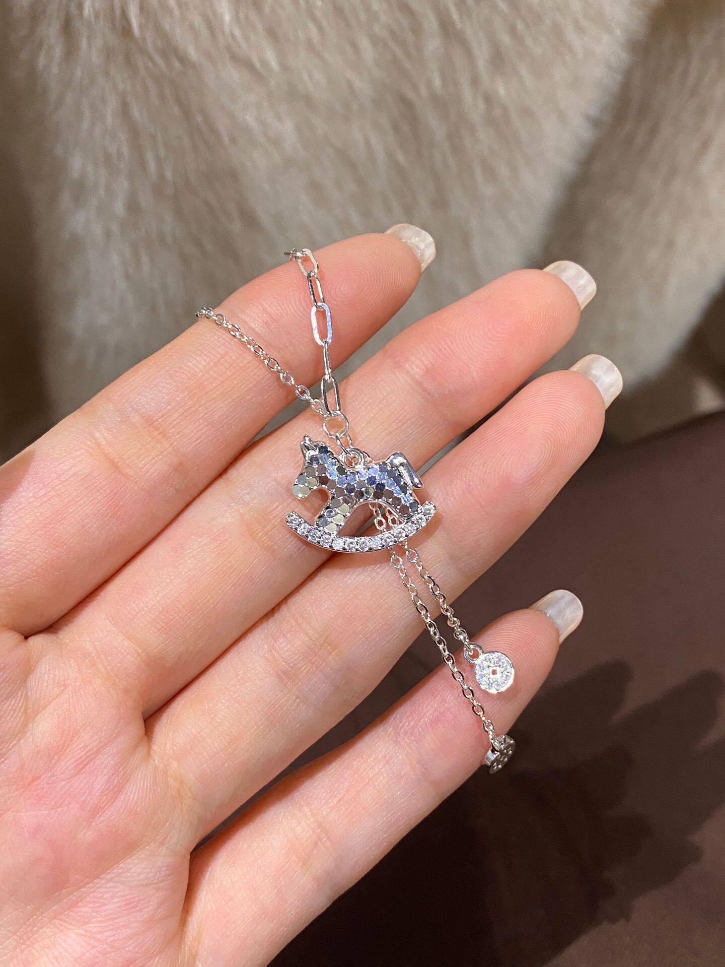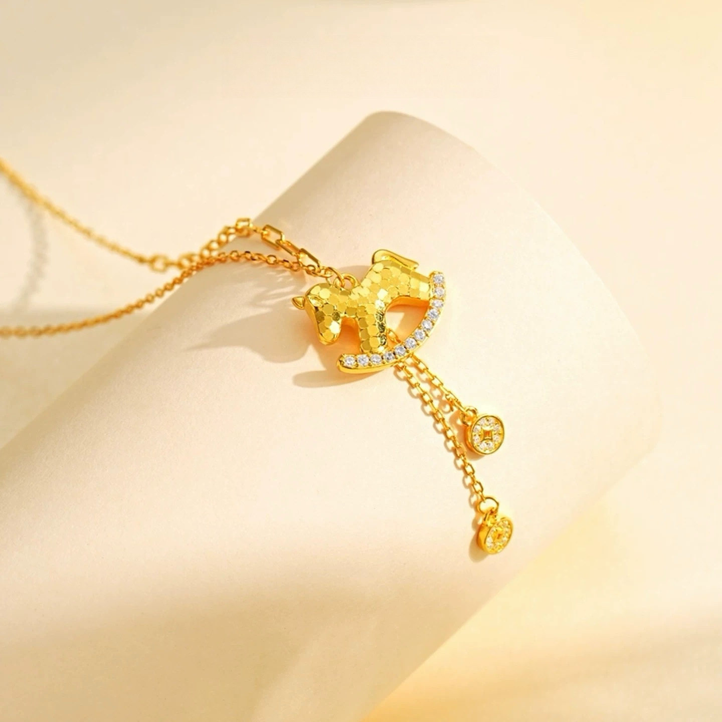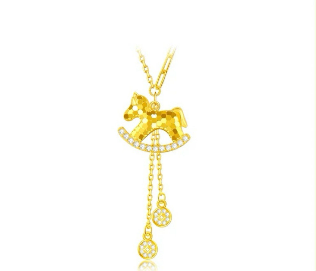 French "Get Rich Instantly" Golden Horse Year Necklace for Women, Light Luxury Niche Design Pendant Clavicle Chain