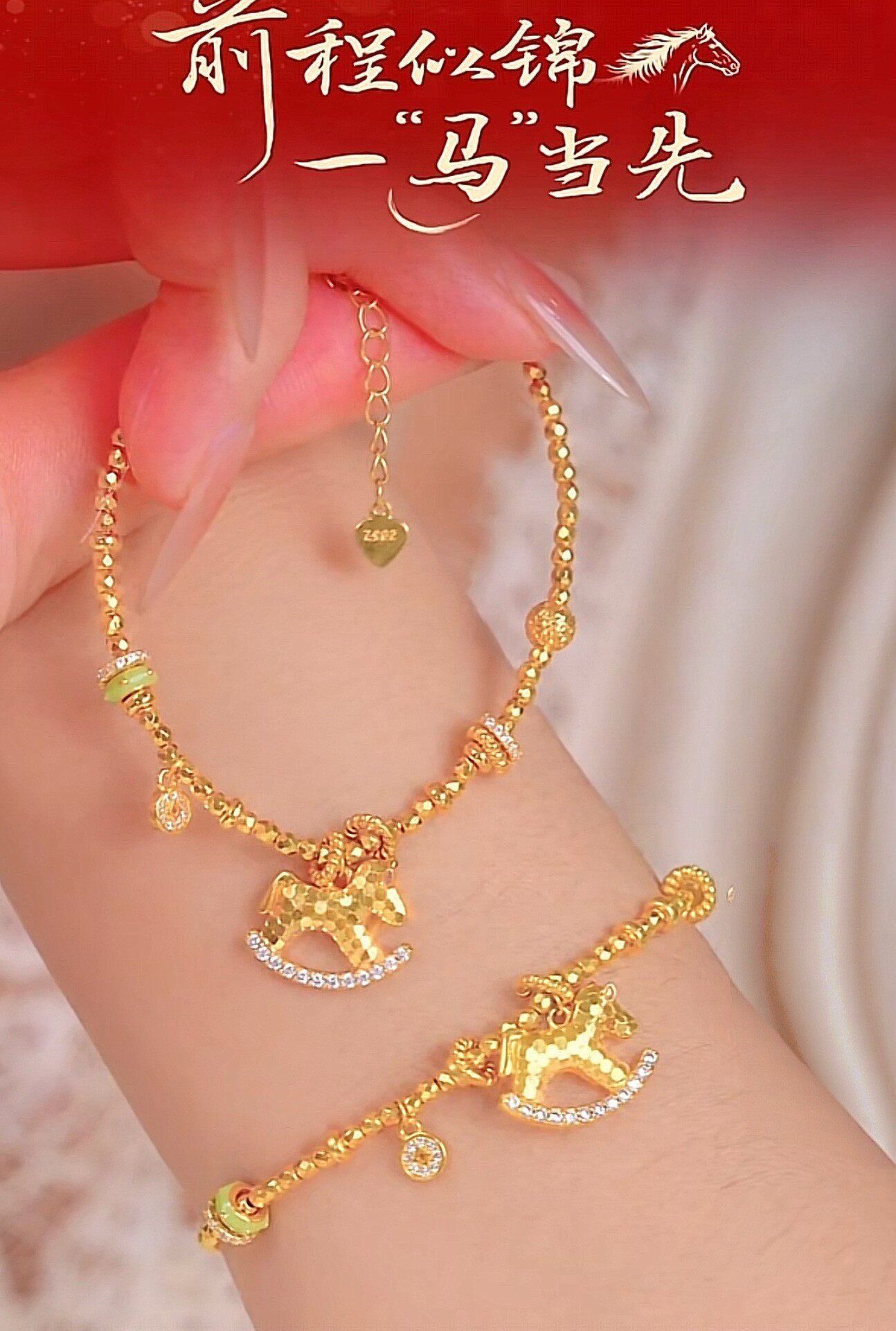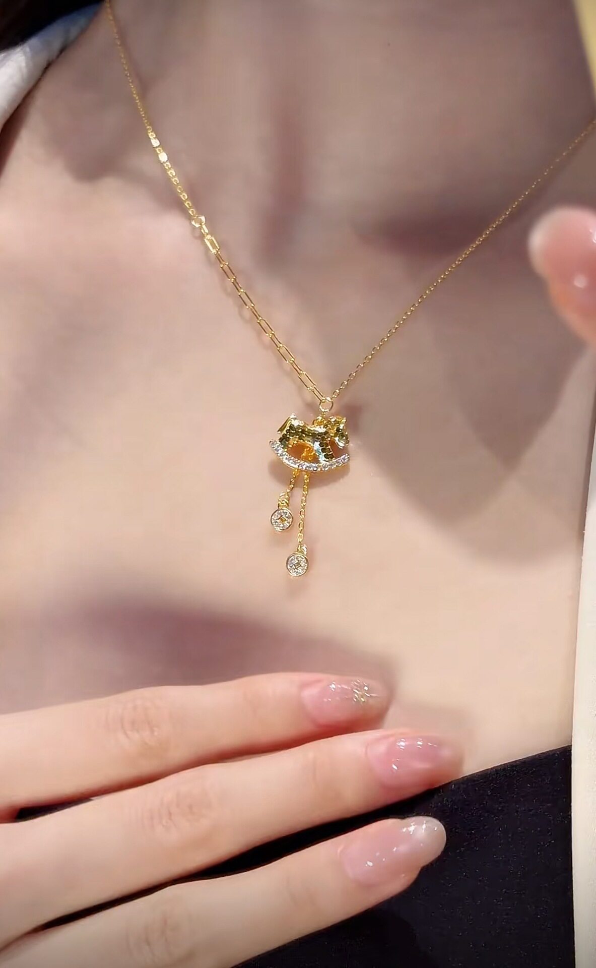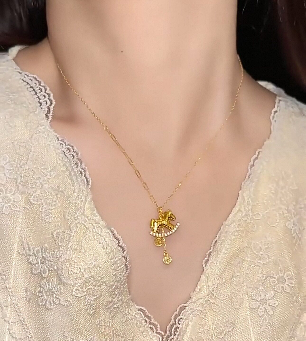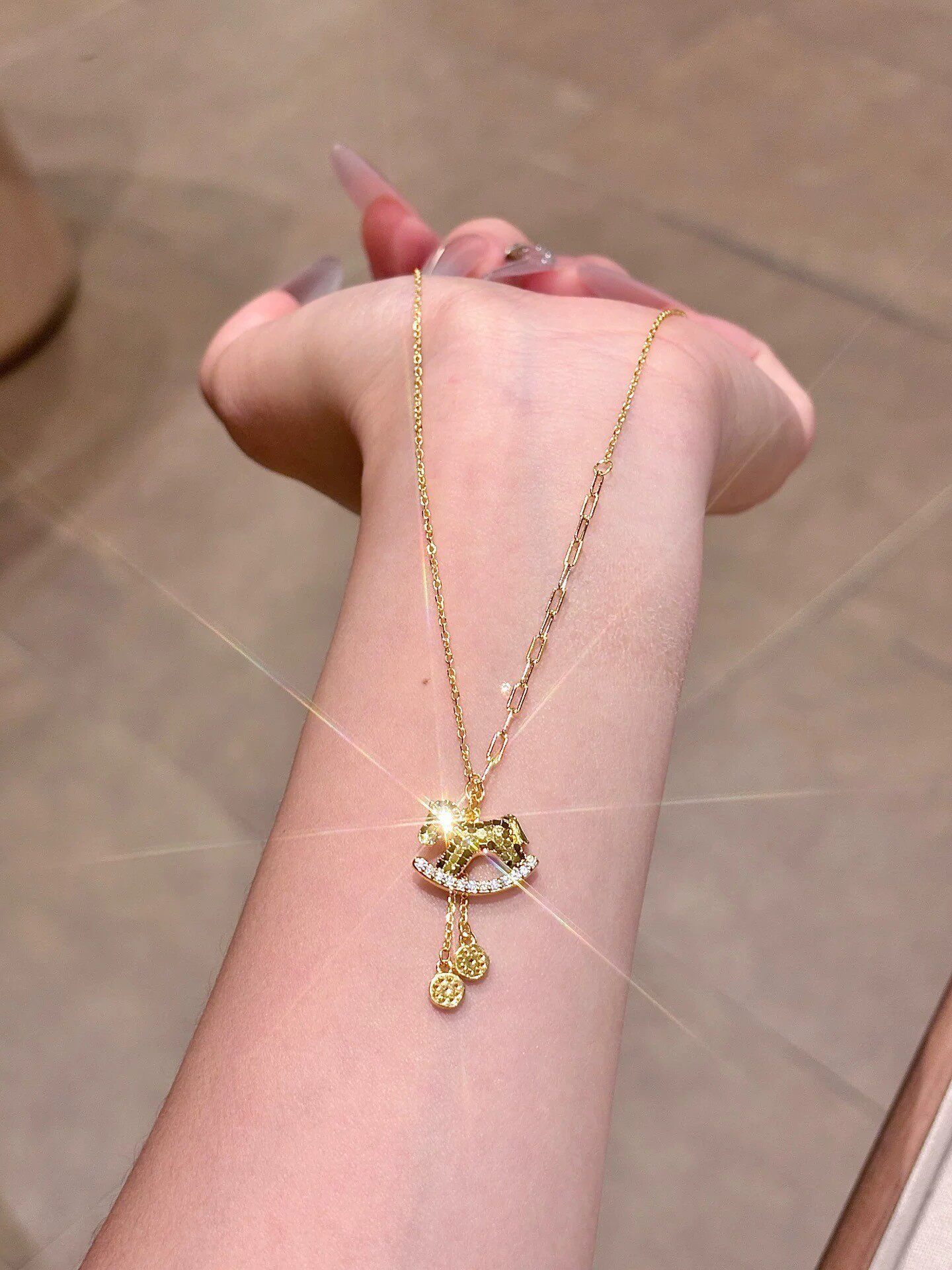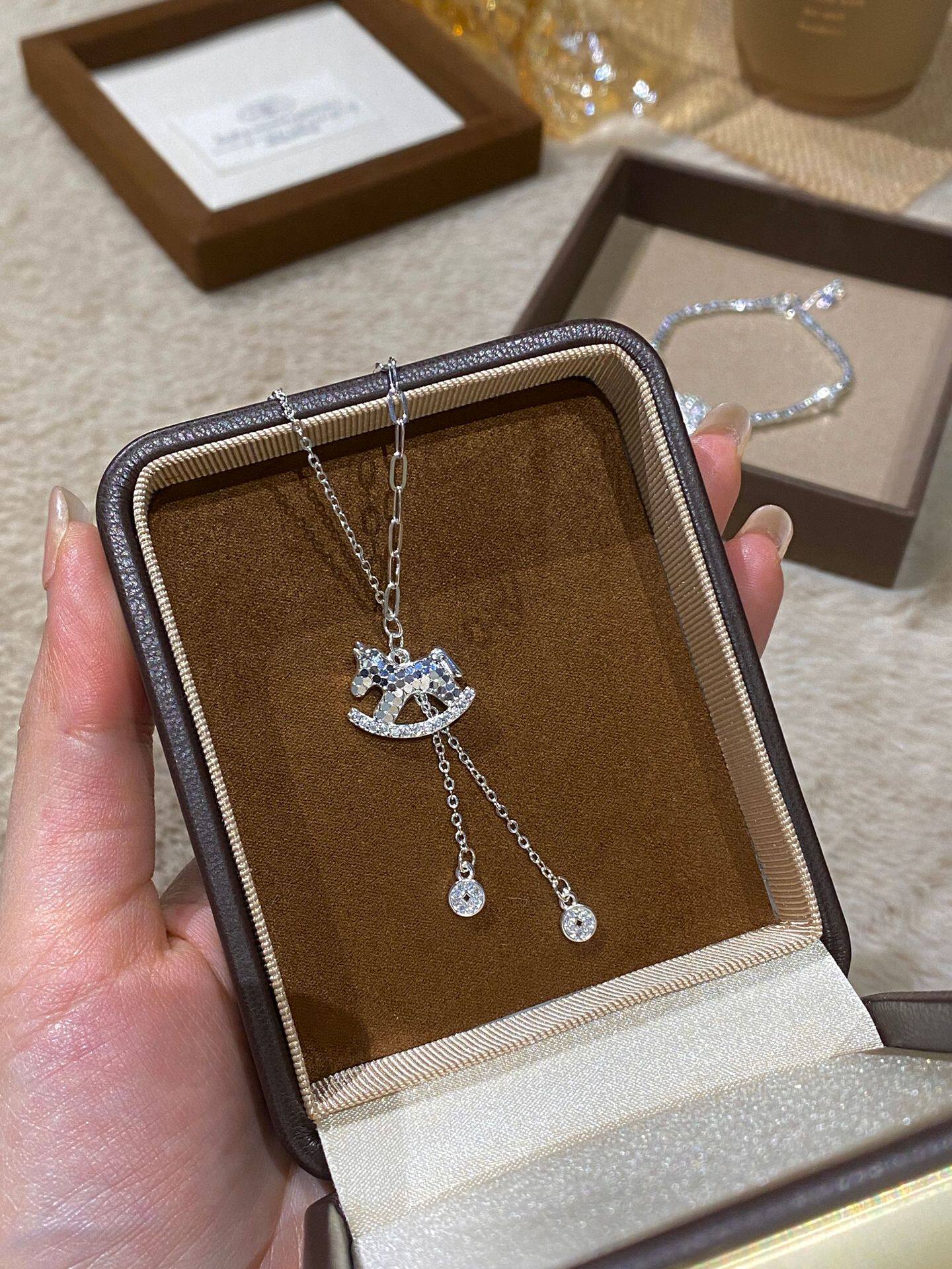French "Get Rich Instantly" Golden Horse Year Necklace for Women, Light Luxury Niche Design Pendant Clavicle Chain