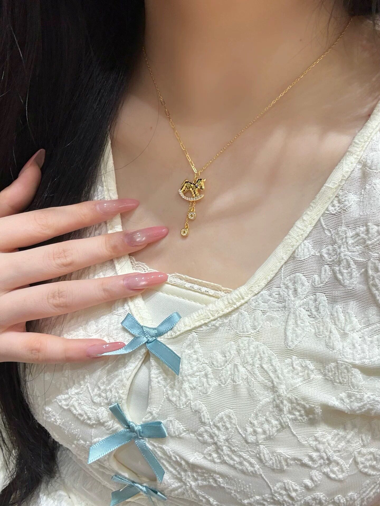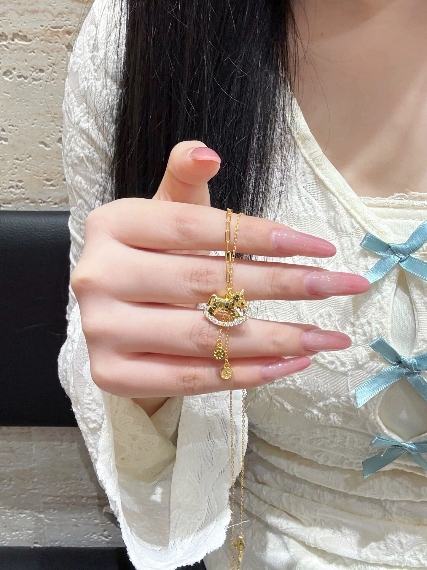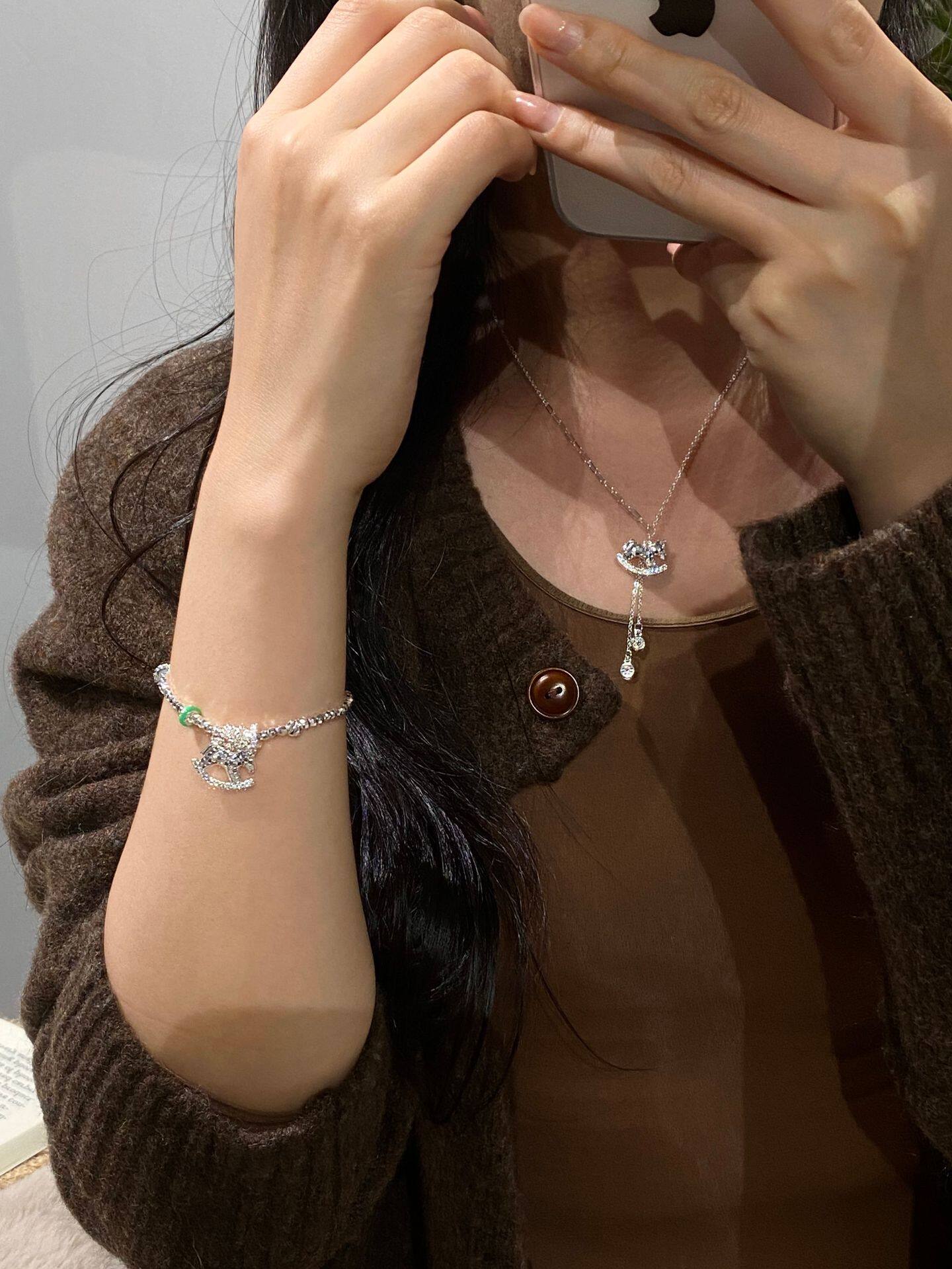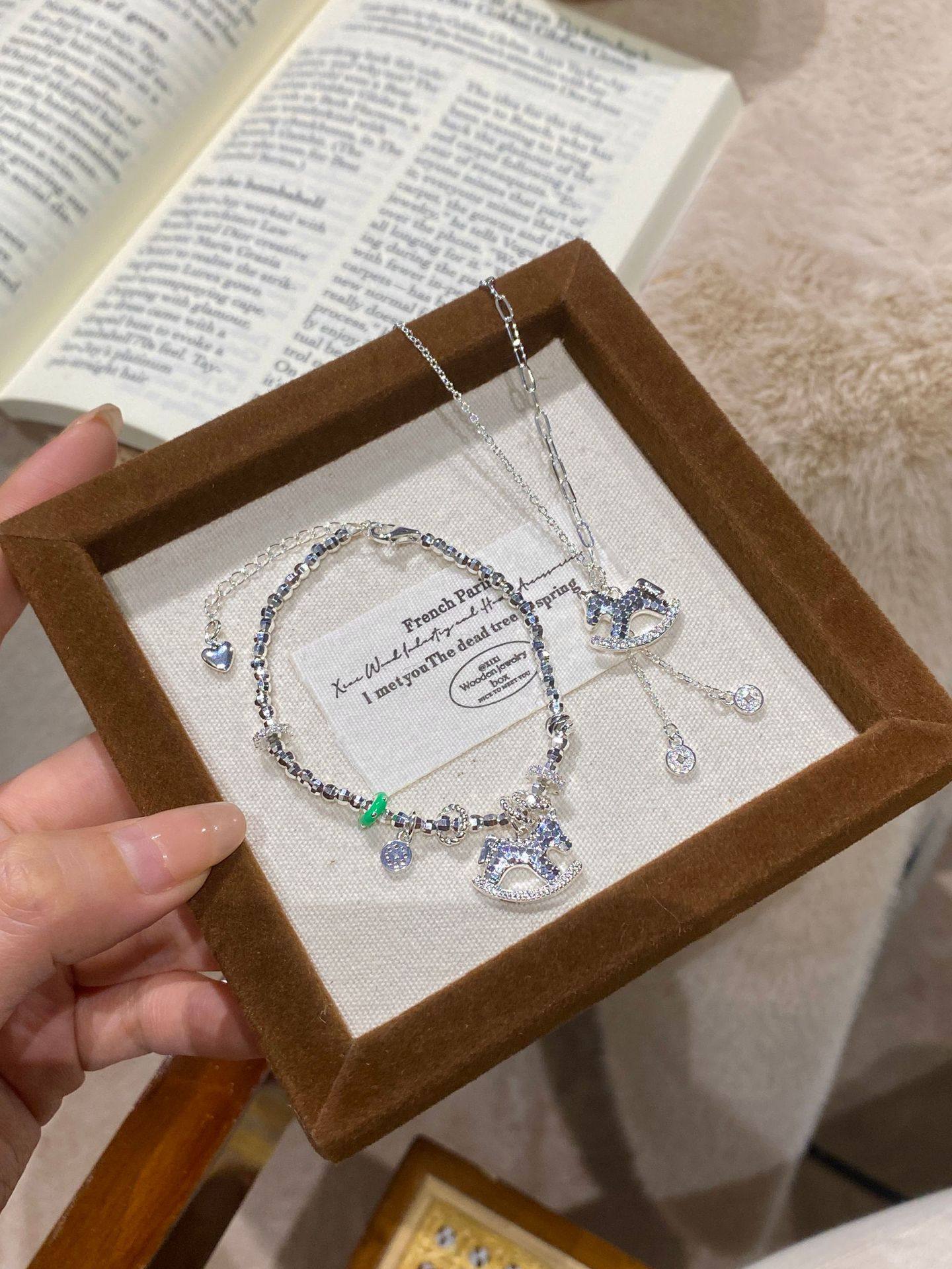 French "Get Rich Instantly" Golden Horse Year Necklace for Women, Light Luxury Niche Design Pendant Clavicle Chain