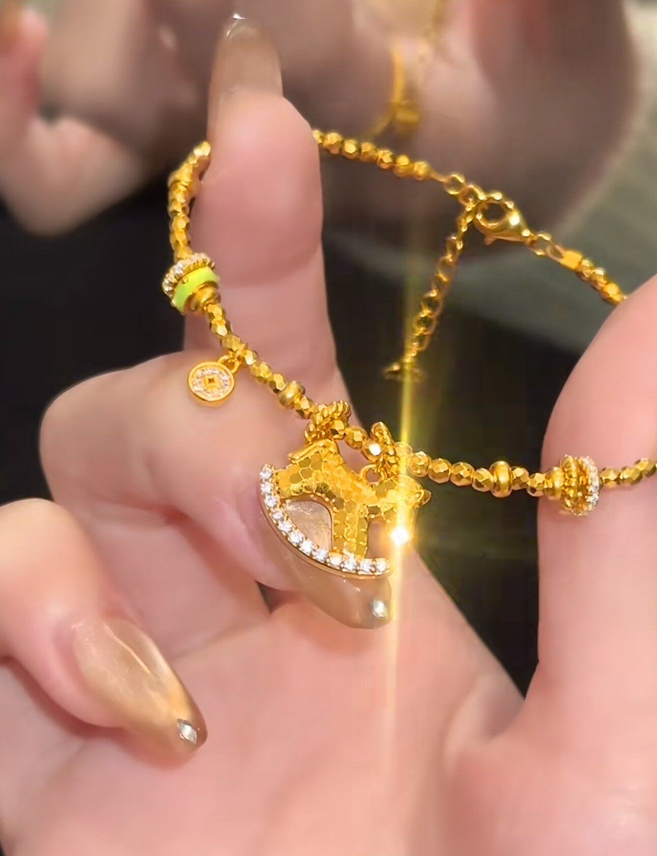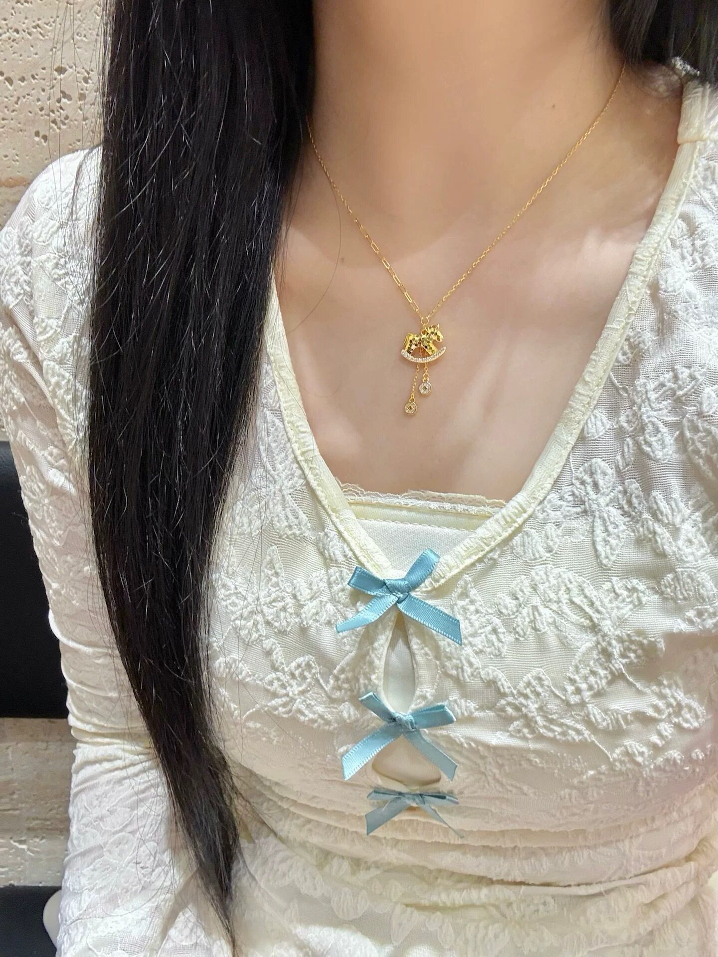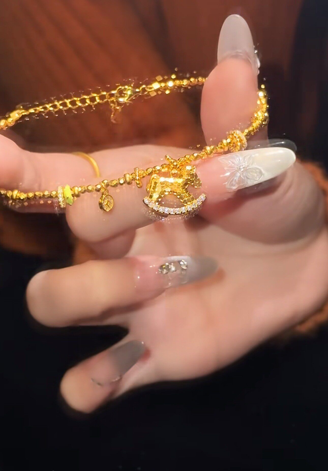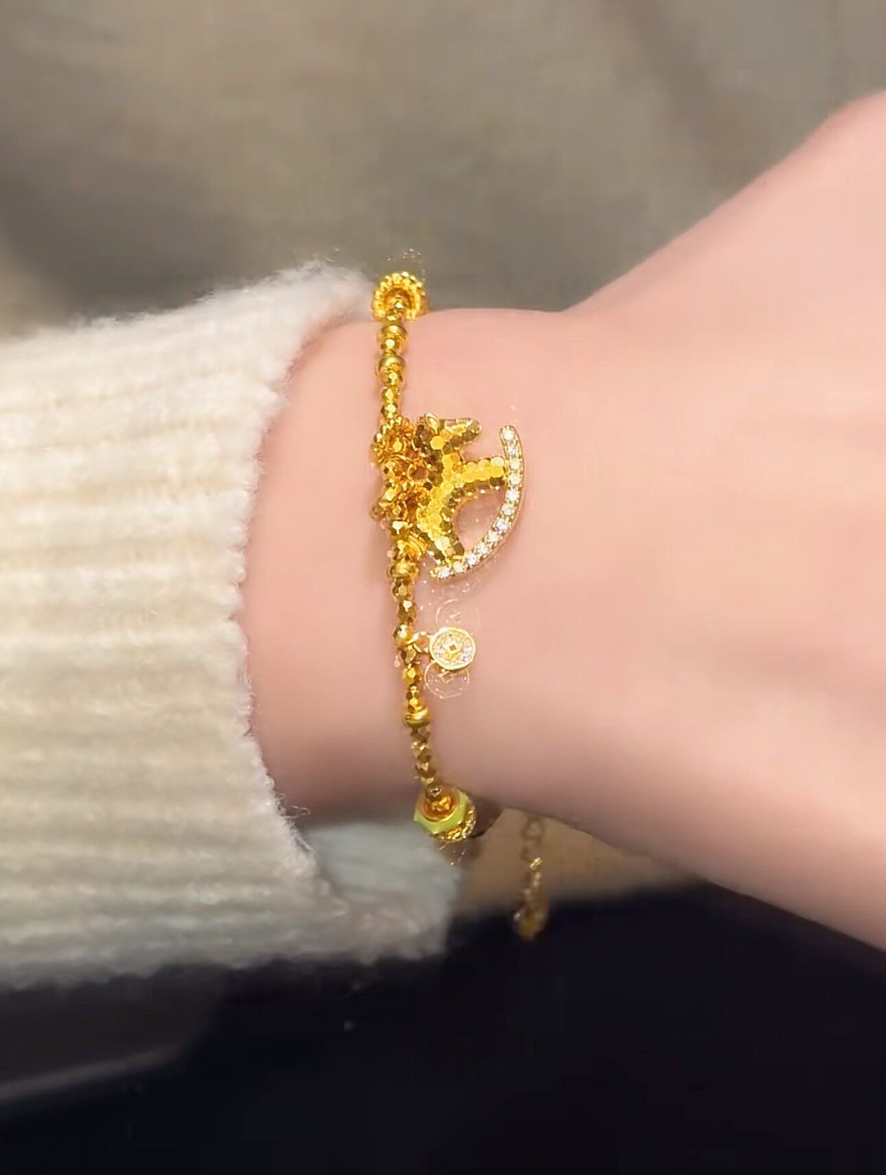 French "Get Rich Instantly" Golden Horse Year Necklace for Women, Light Luxury Niche Design Pendant Clavicle Chain