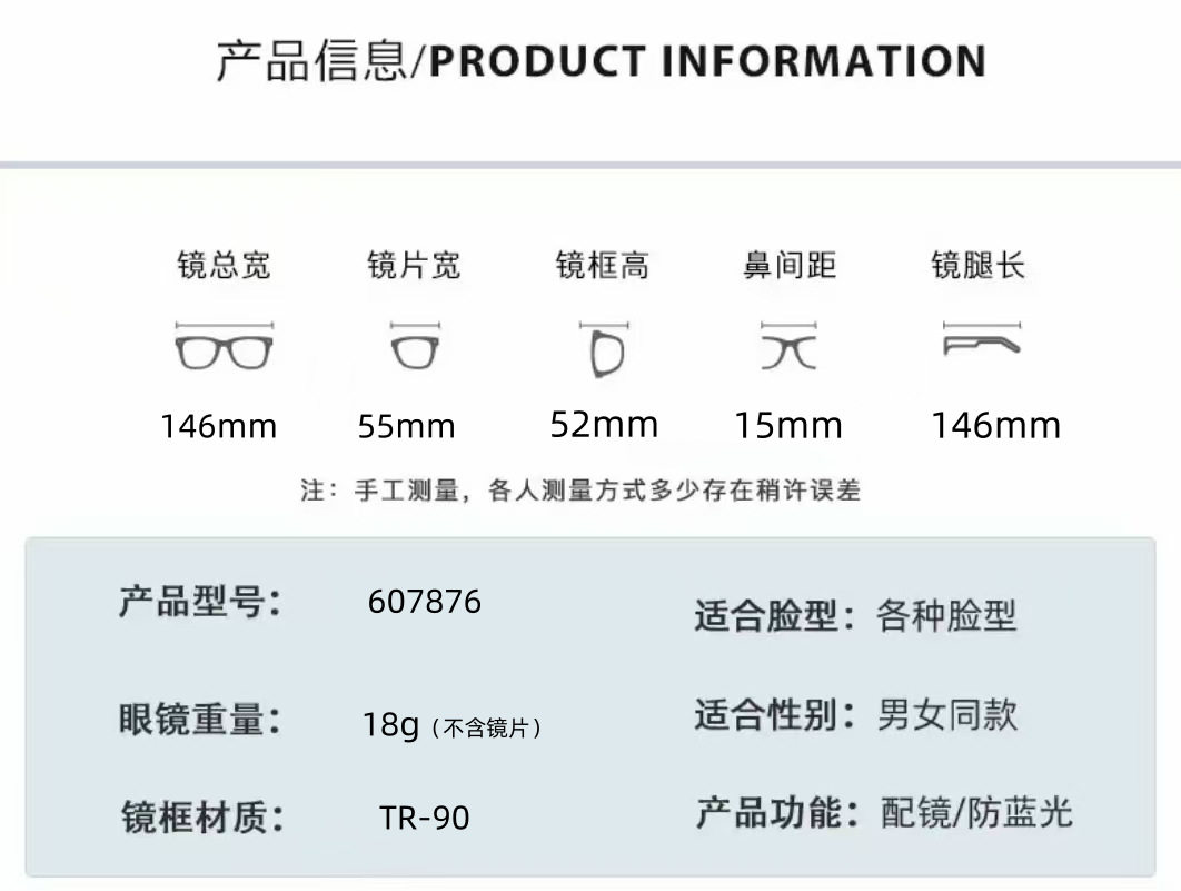 | Glasses structure | Full frame |