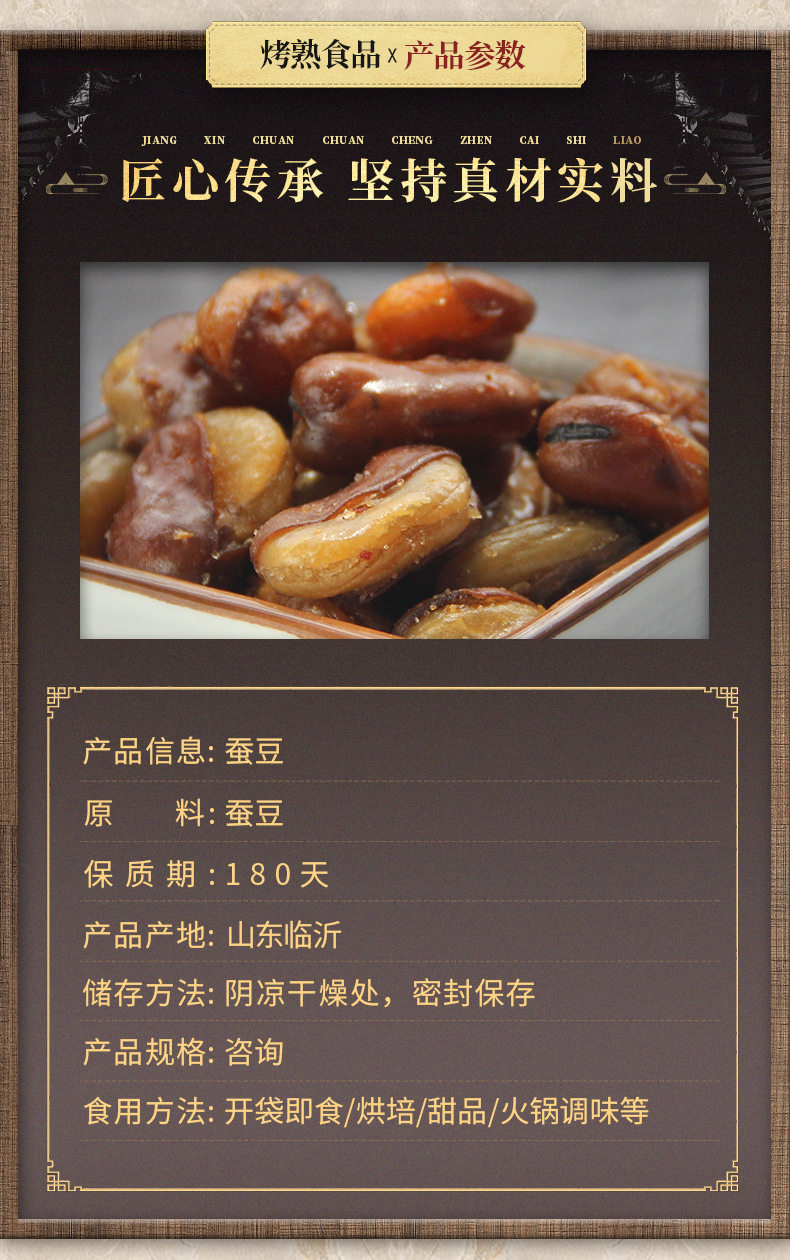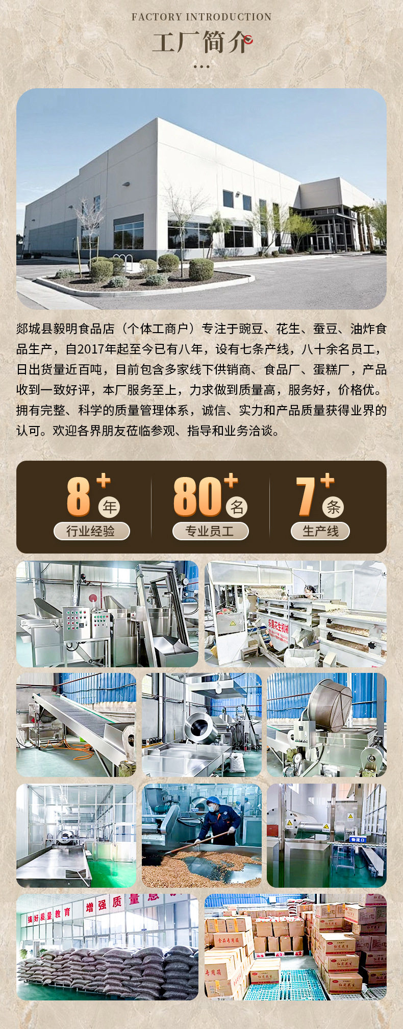 | Raw materials and ingredients | Broad beans, white sugar, edible vegetable oil, beef powder, onion powder |