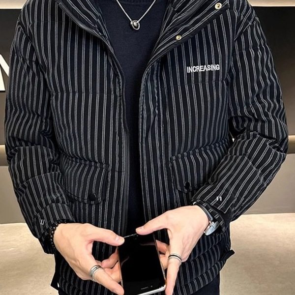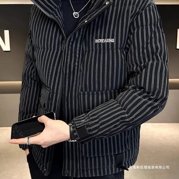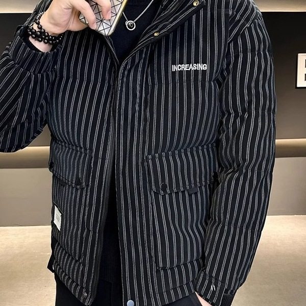 2025 Men's down Jacket Winter New Striped Handsome Short Duck down Casual Trendy Brand Trendy Jacket Black