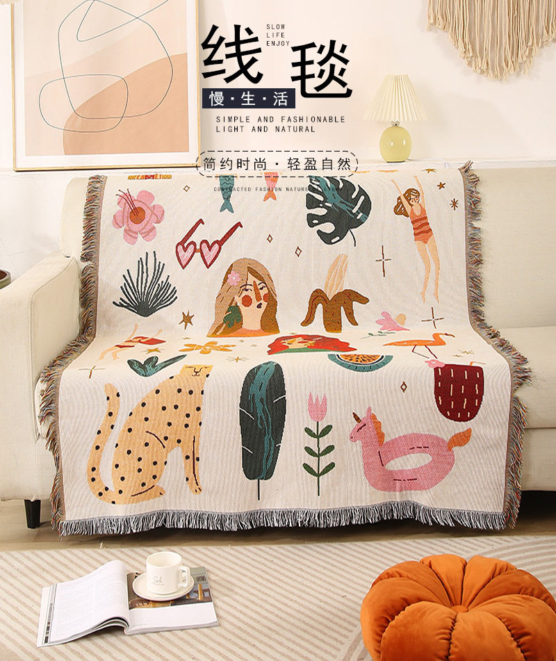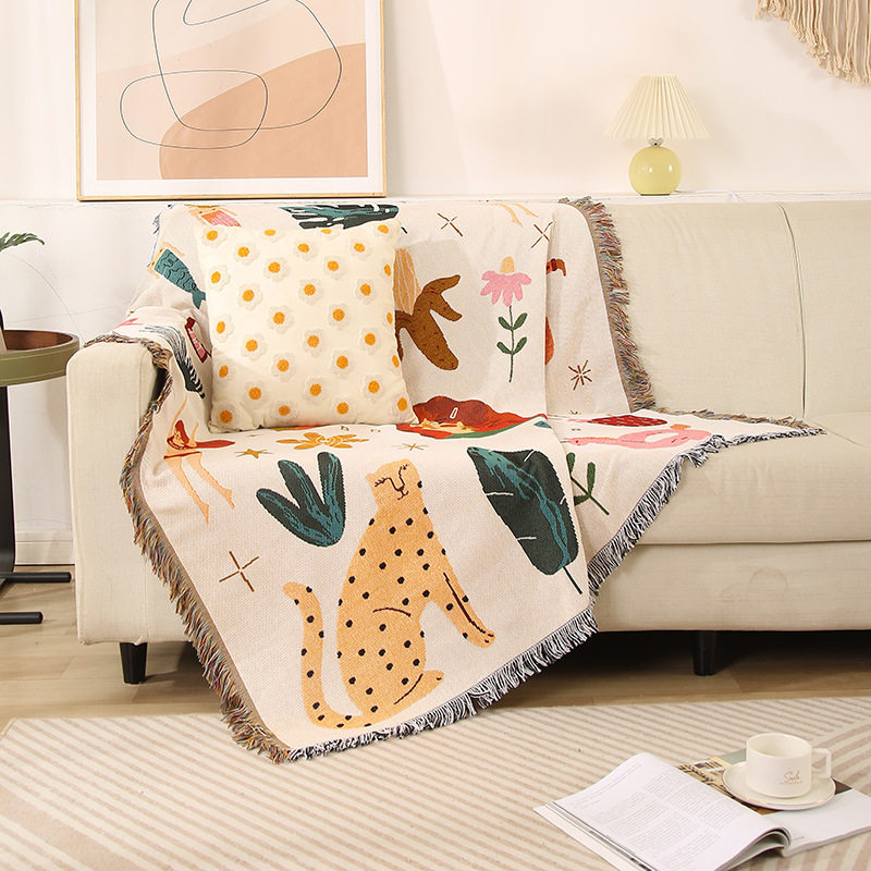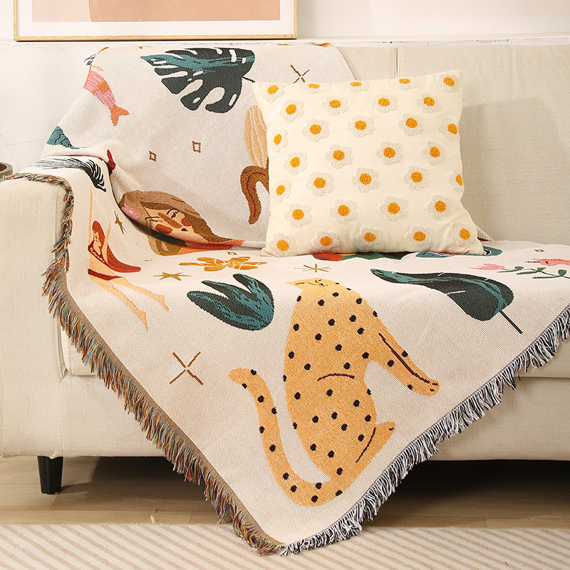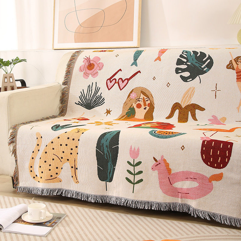 Cartoon Style Fashionable Single Sofa Towel Sofa Blanket Dustproof Cloth Tablecloth Hotel Bed and Breakfast Decorative Blanket