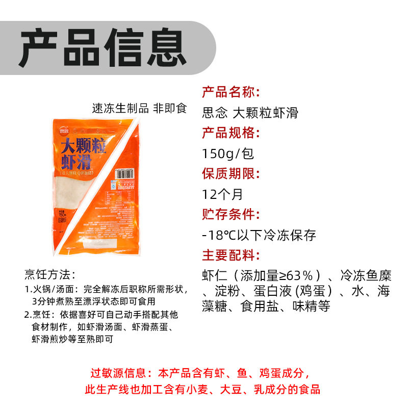 | Packaging specifications | Missing large particle shrimp slippery 150g |
