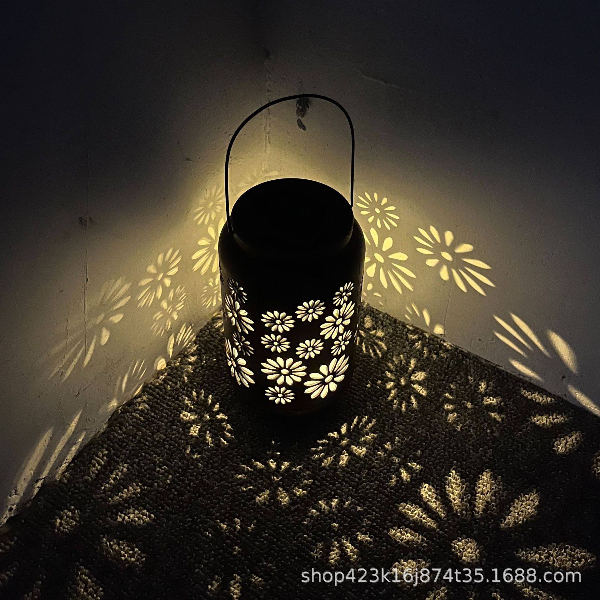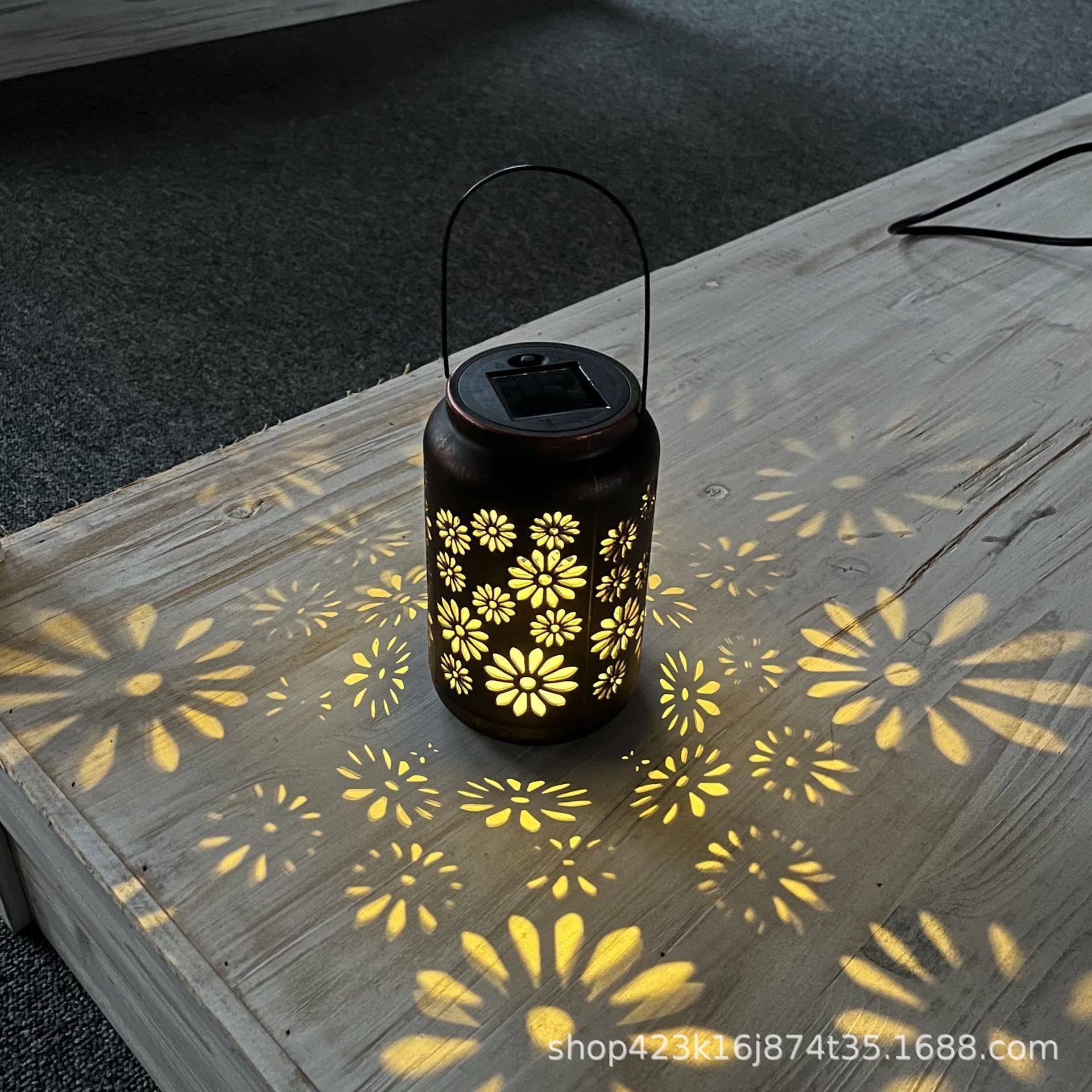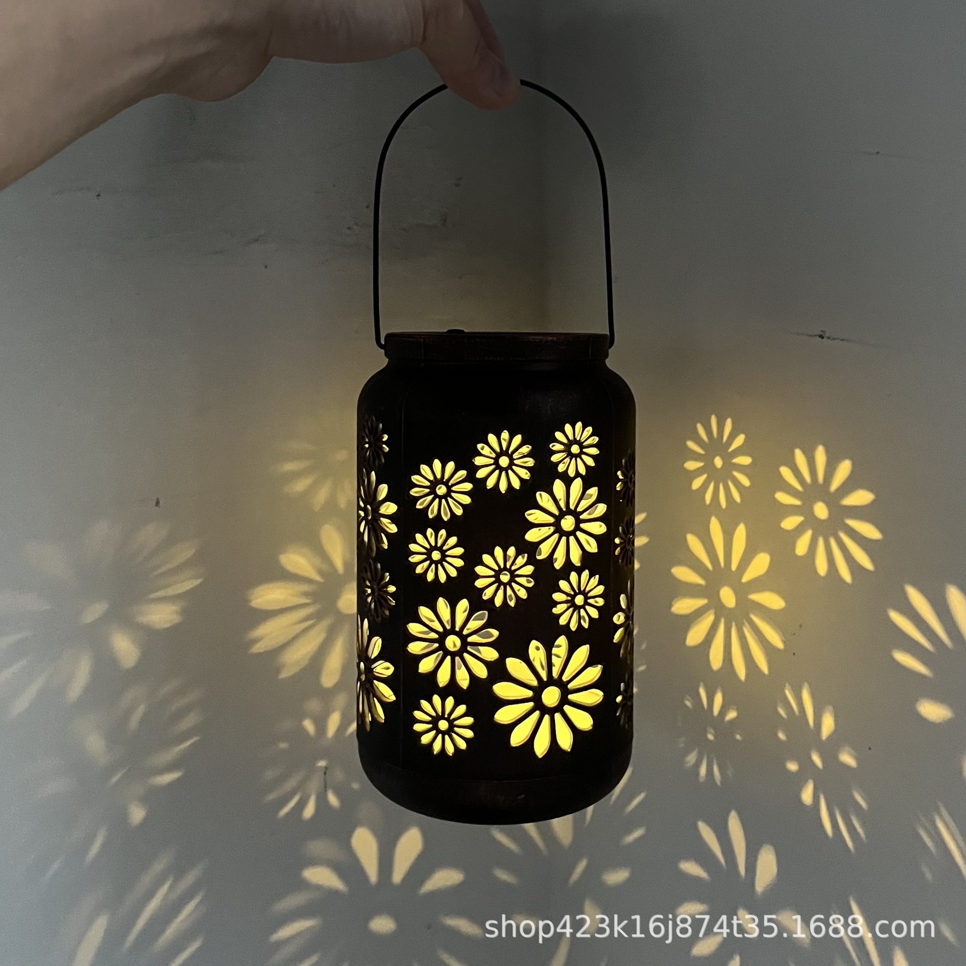 Garden Solar Led Light Peony Flower Hollow Courtyard Outdoor Atmosphere Light Homestay Decorative Light Portable Light Lantern