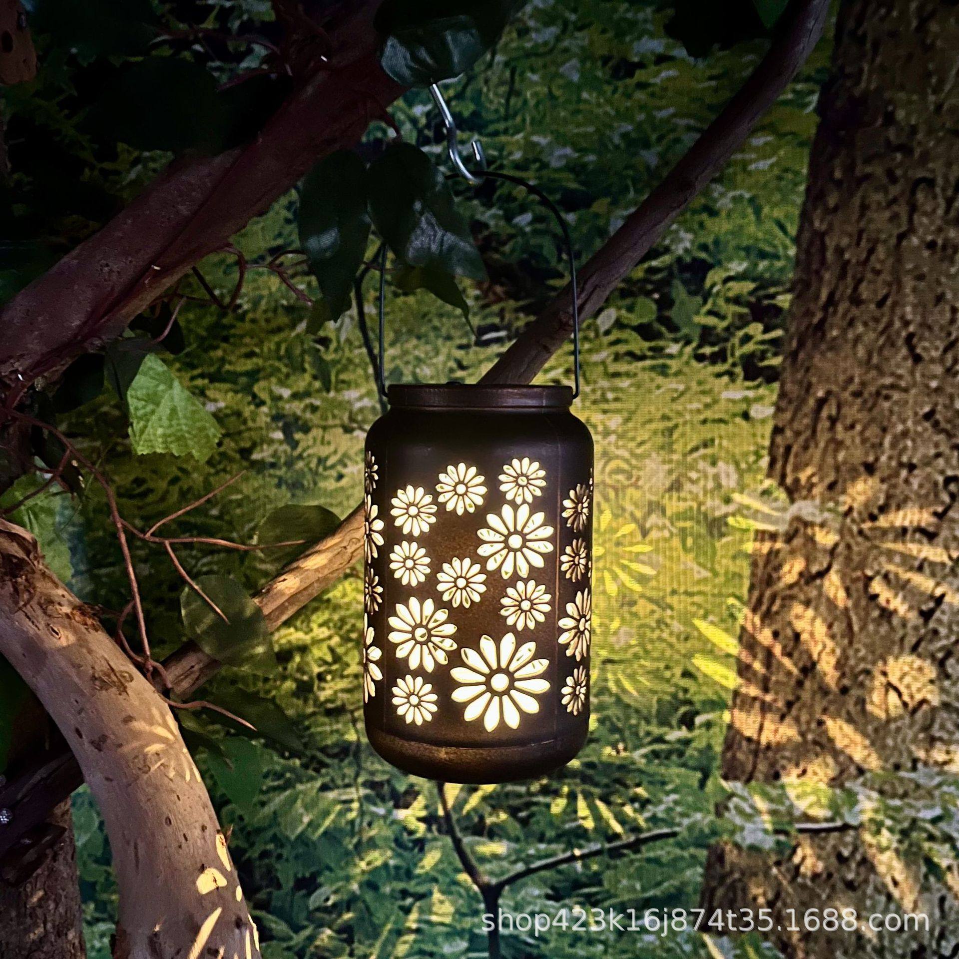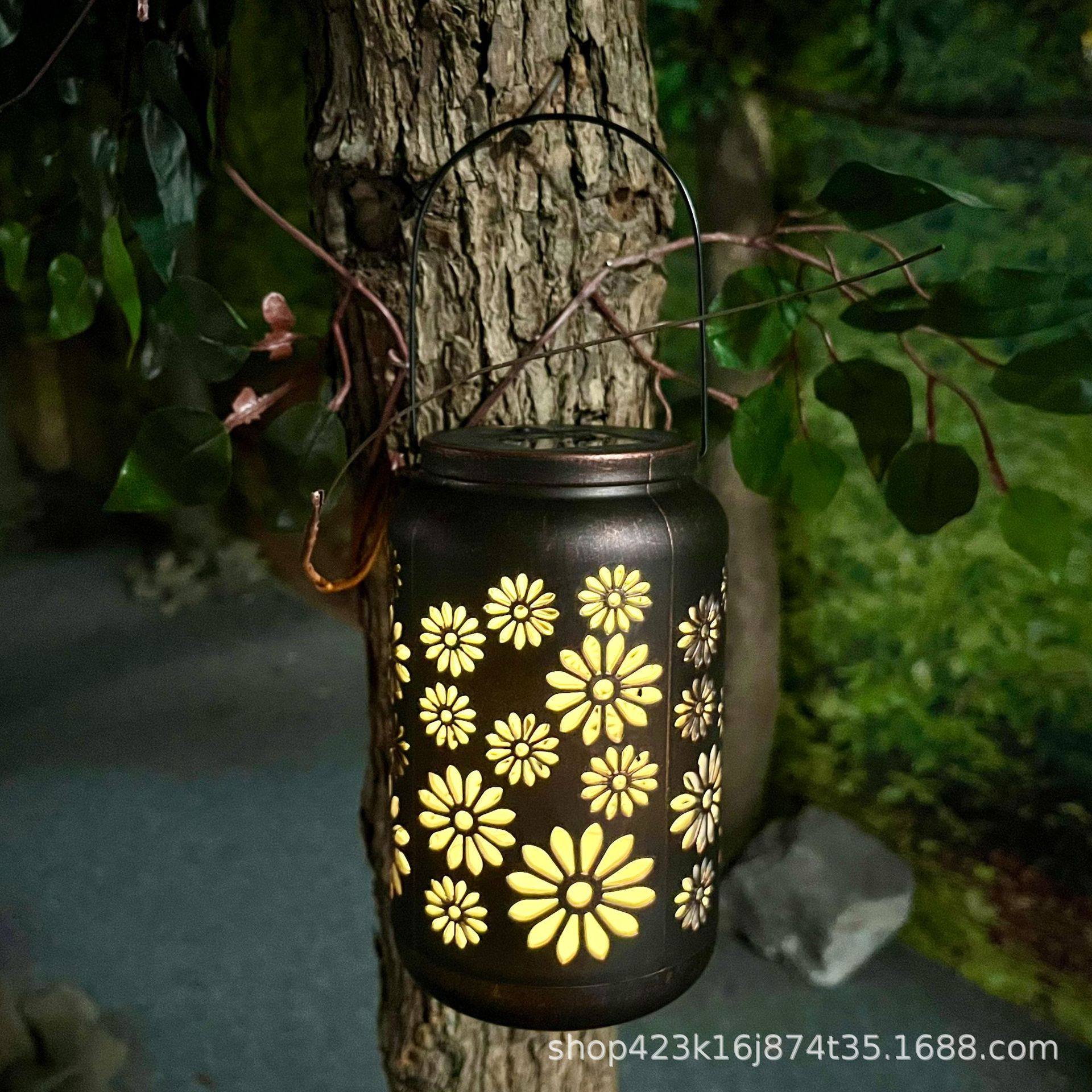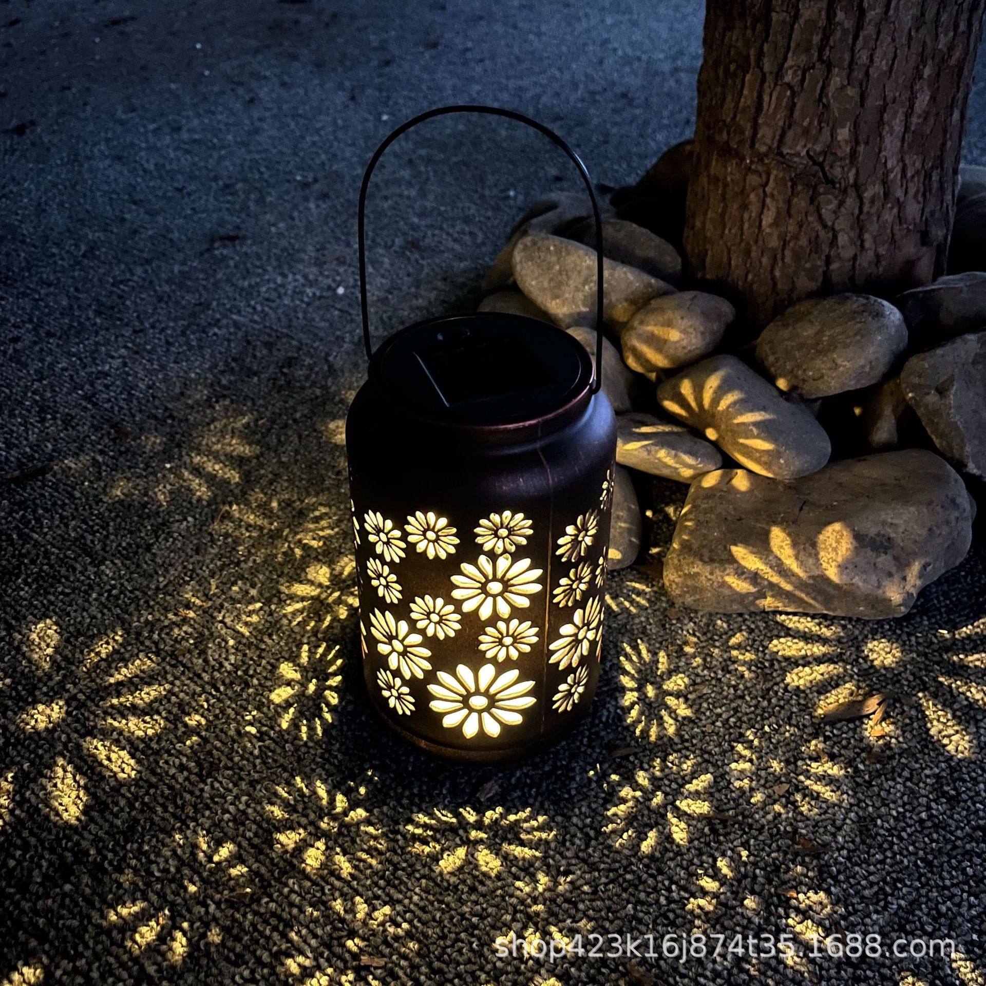 Garden Solar Led Light Peony Flower Hollow Courtyard Outdoor Atmosphere Light Homestay Decorative Light Portable Light Lantern