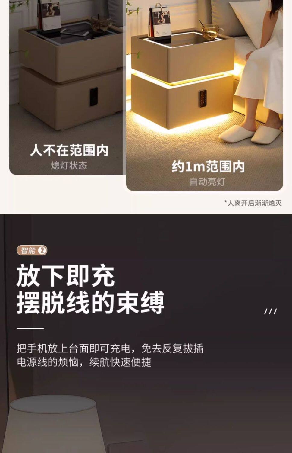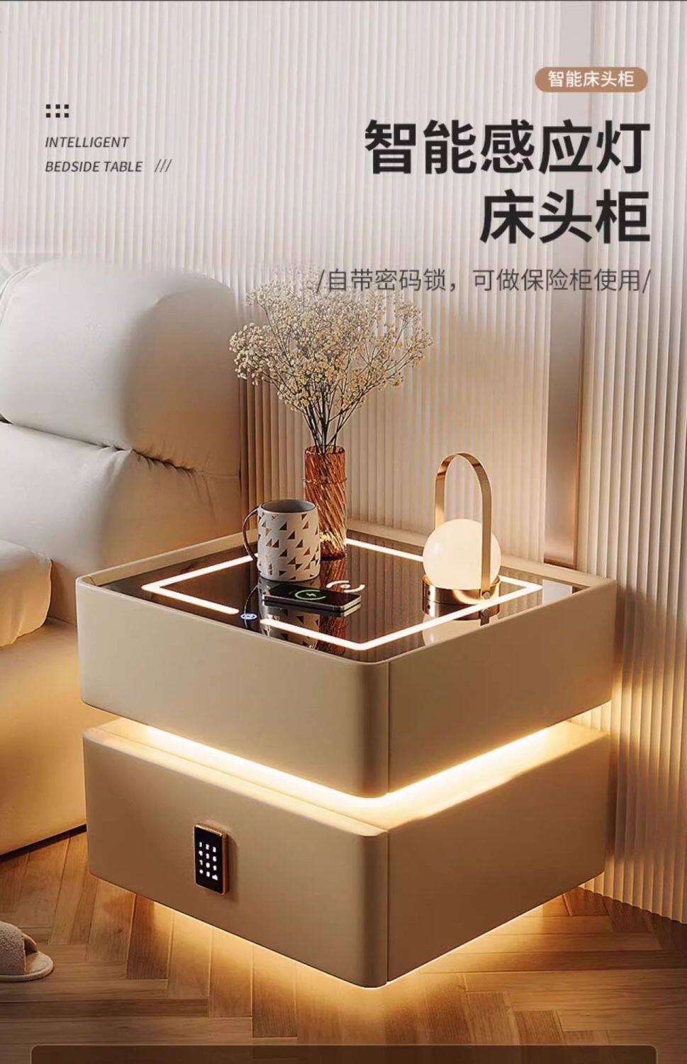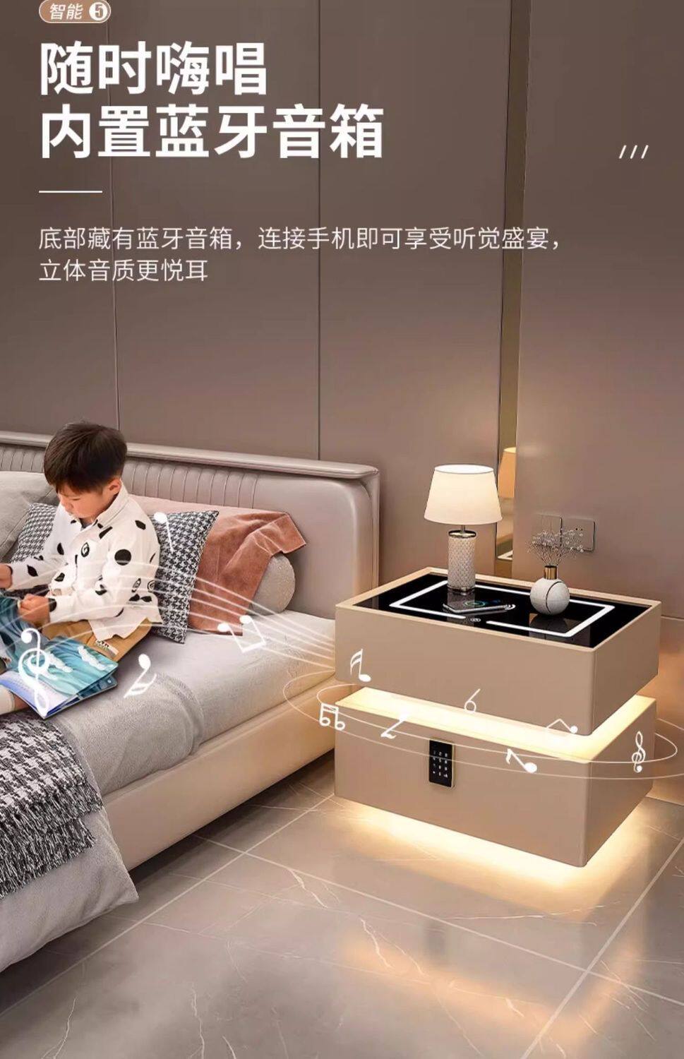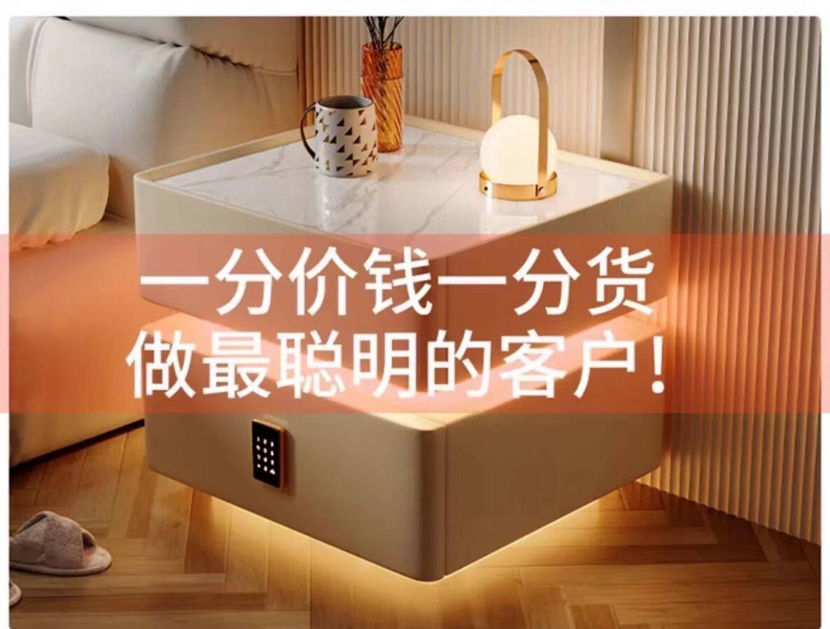 Smart Bedside Table Modern Simple Solid Wood with Light Bedroom Light Luxury Multi-Function Wireless Charging Bluetooth Smart Bed Cabinet