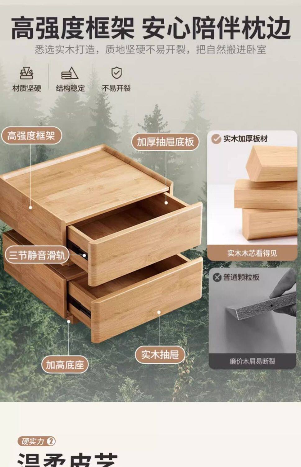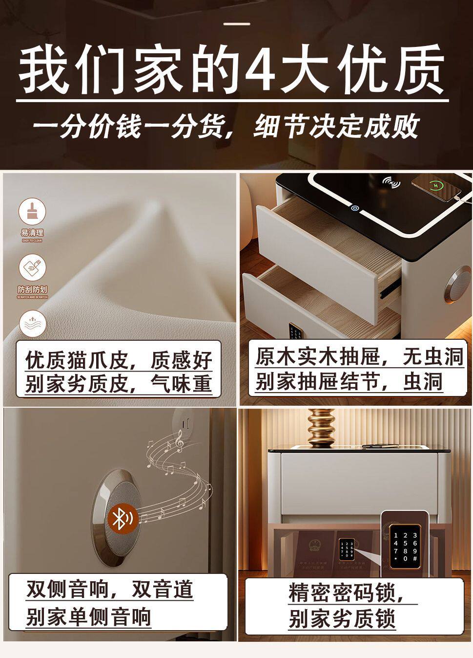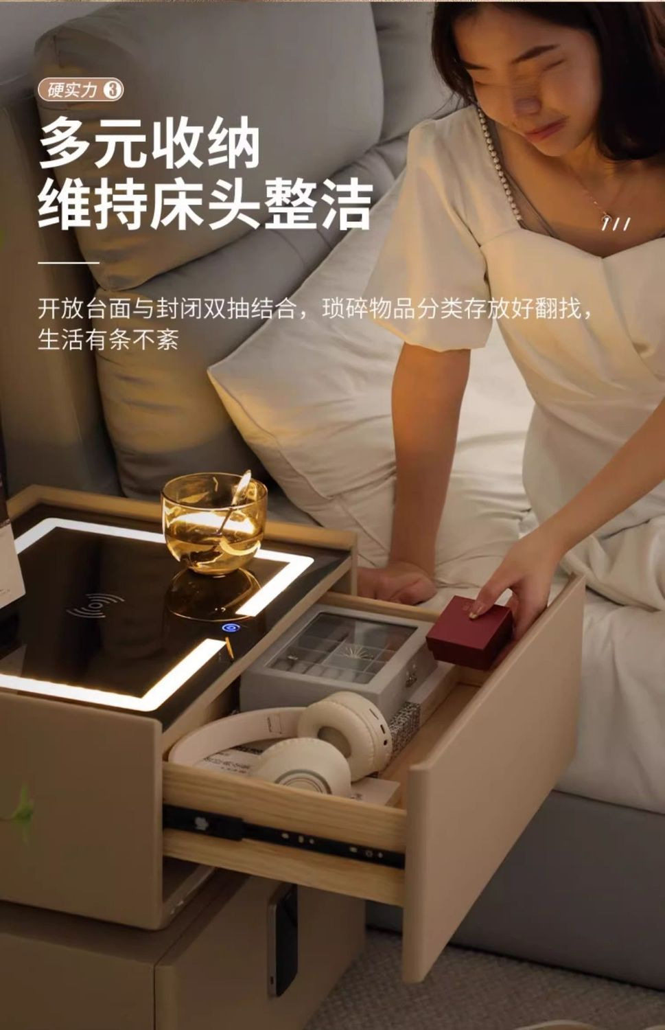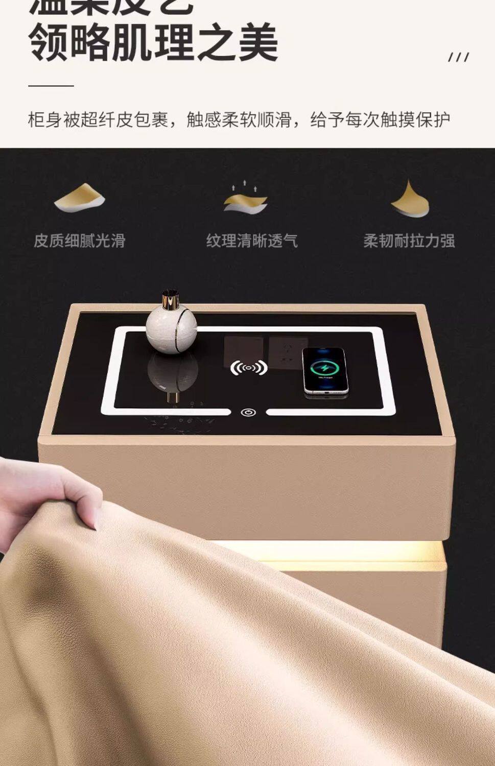 Smart Bedside Table Modern Simple Solid Wood with Light Bedroom Light Luxury Multi-Function Wireless Charging Bluetooth Smart Bed Cabinet