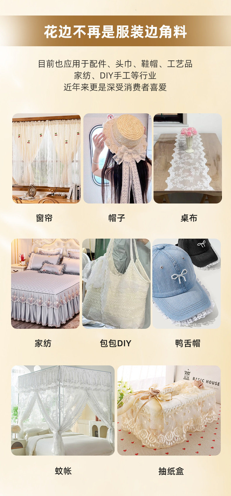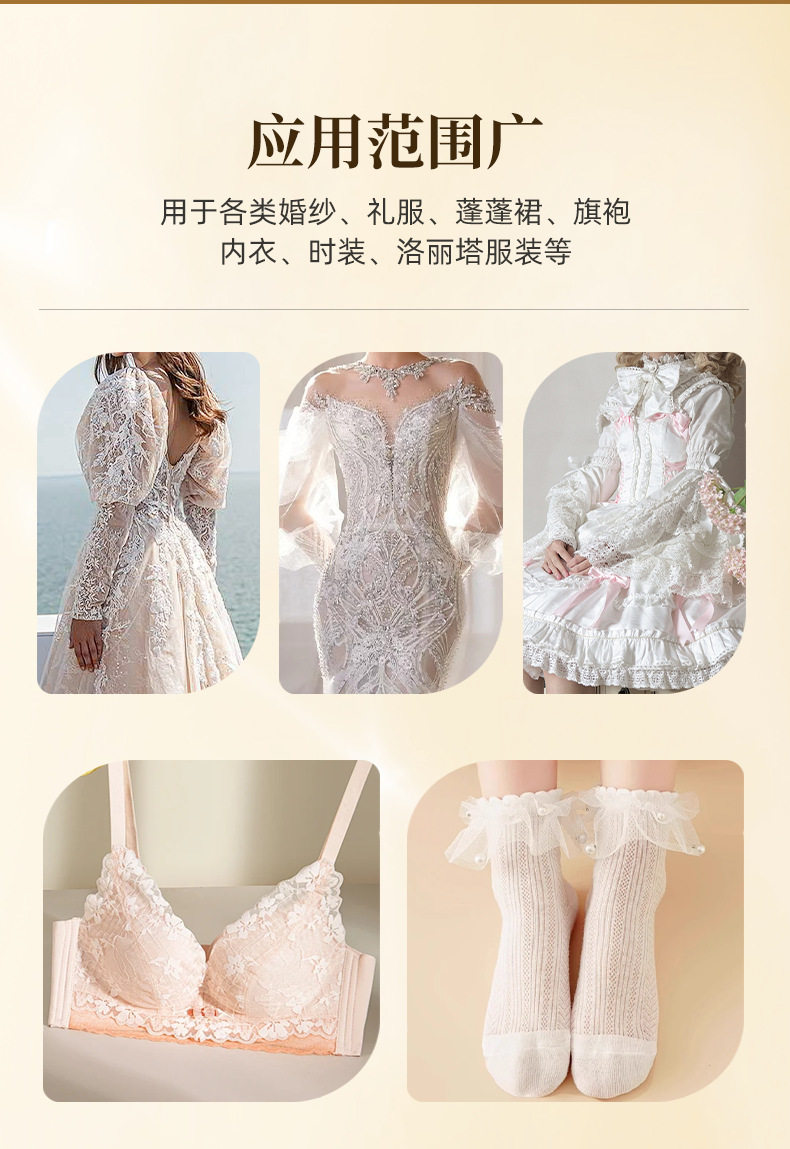 | Scope of application | Pajamas,Underwear,Women's clothing,Headwear,Ethnicity,Dress,Home,Decorate,Stockings,Belt,Bedding,Curtain,Crafts,Wedding dress,Stockings,Dress,Clothing,Children's clothing,Accessories,Accessories,Home textiles,Seamless panties,Diy handmade,Fishnet stockings,Clothing,Skirt,Mom outfit,Lace lingerie,Home textiles,Window decorations,Bow lace,Home intimates,Gift flower packaging,Home soft furnishings,Four-piece set of accessories,Other |