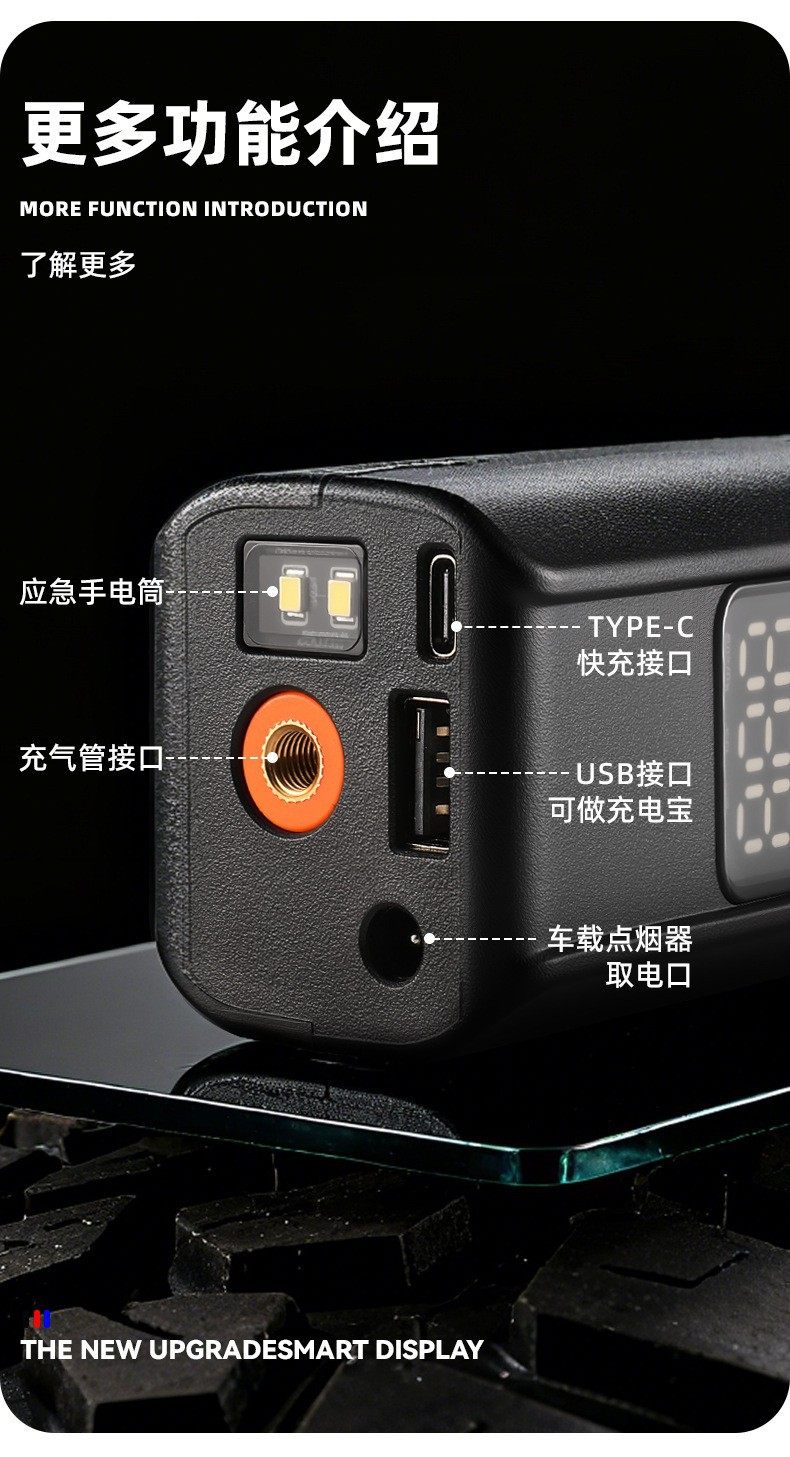 | Additional features | Lighting,Warning light,Usb charging,Automatically stop charging |