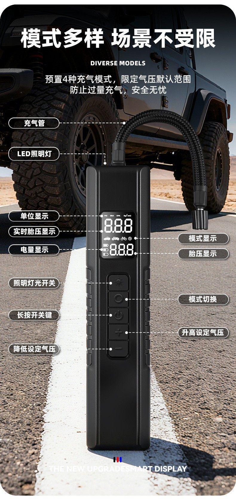 Car Air Pump with Light Tire Air Pump Car Charging Wireless Portable Air Pump Air Pump