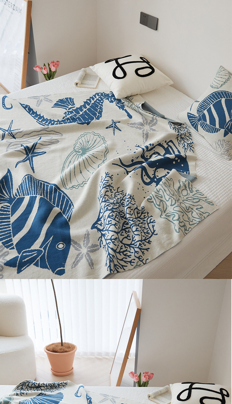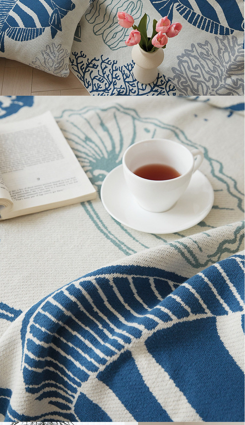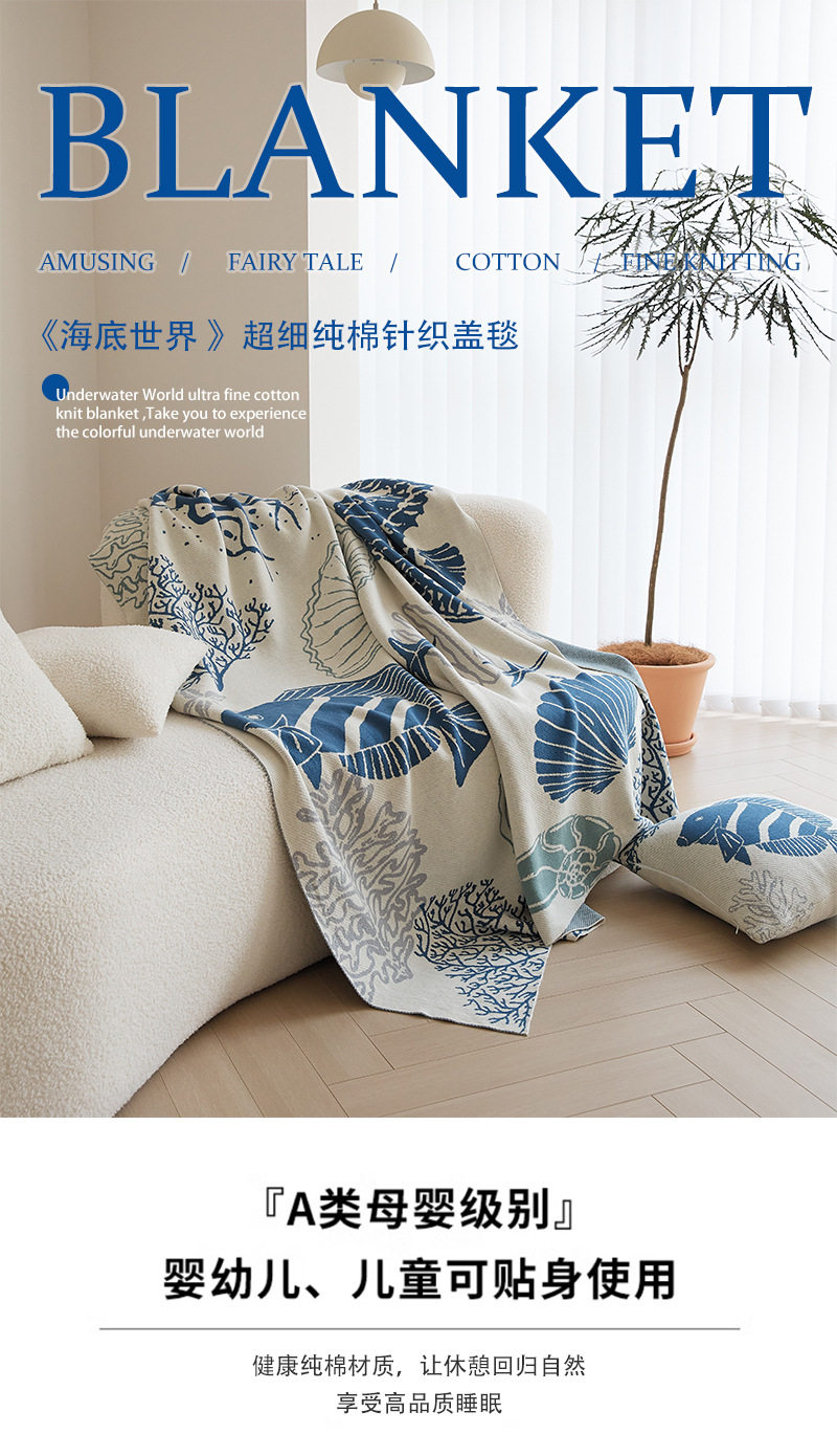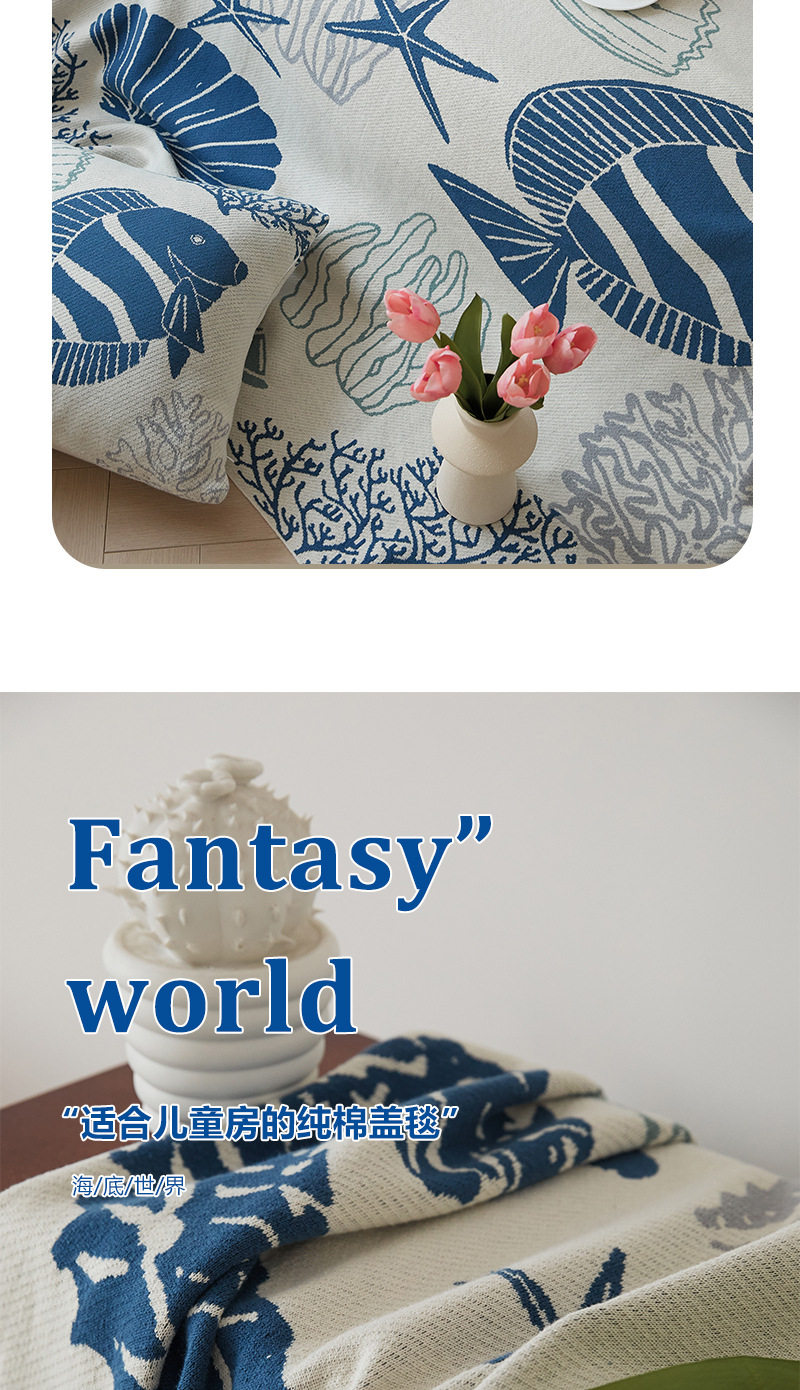 Pure Cotton Fine Knitted Sofa Blanket Underwater World Pure Cotton Knitted Blanket