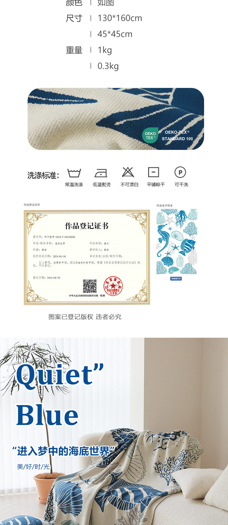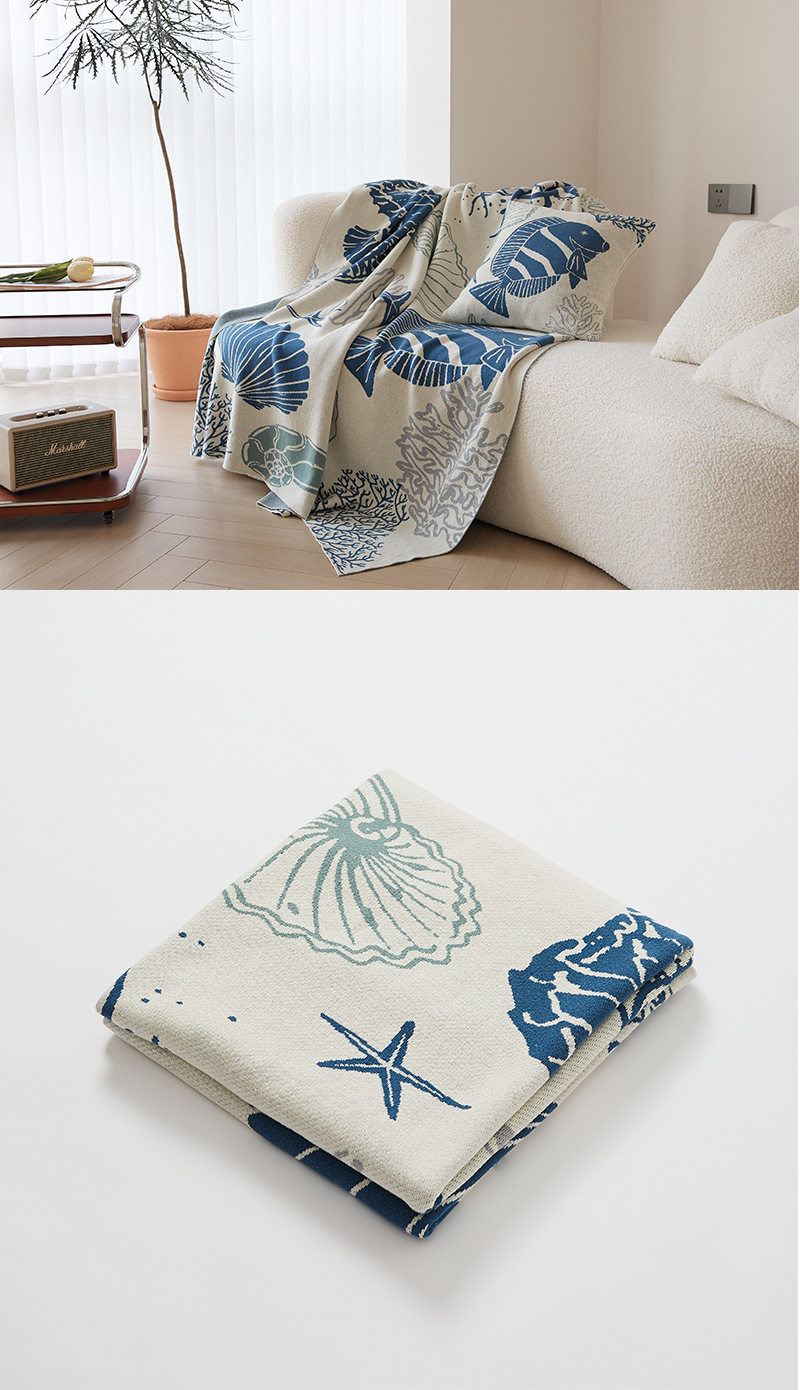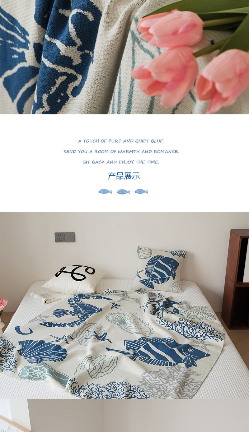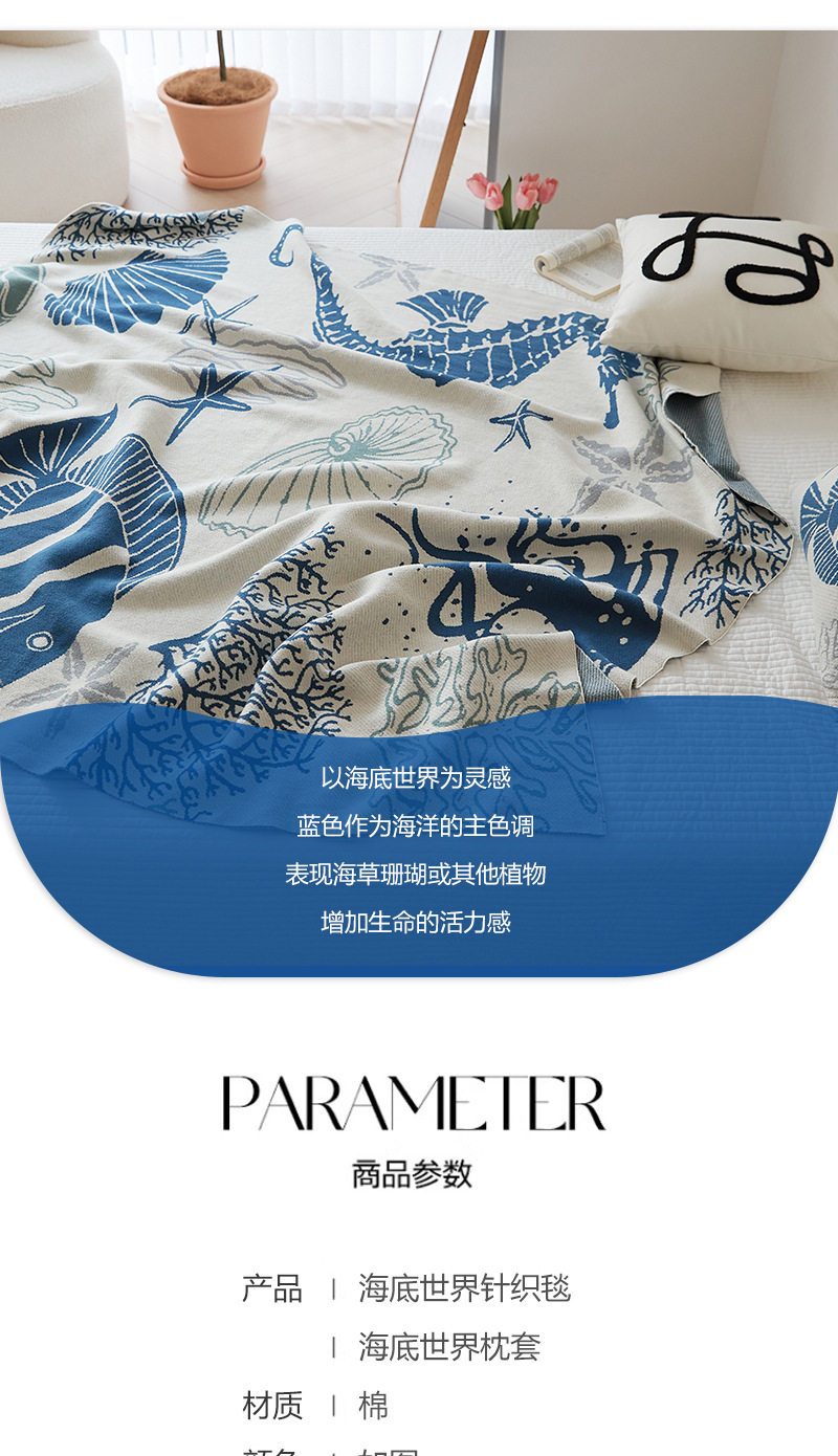Pure Cotton Fine Knitted Sofa Blanket Underwater World Pure Cotton Knitted Blanket