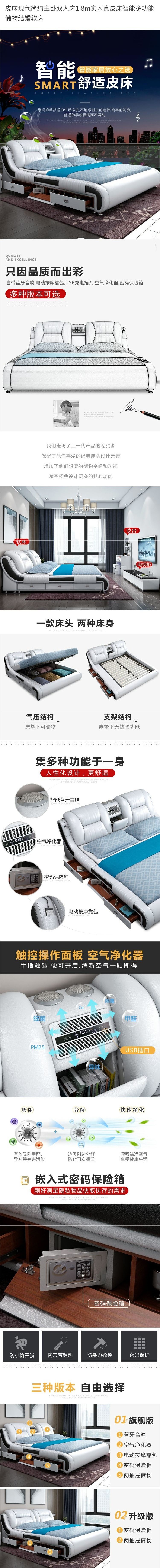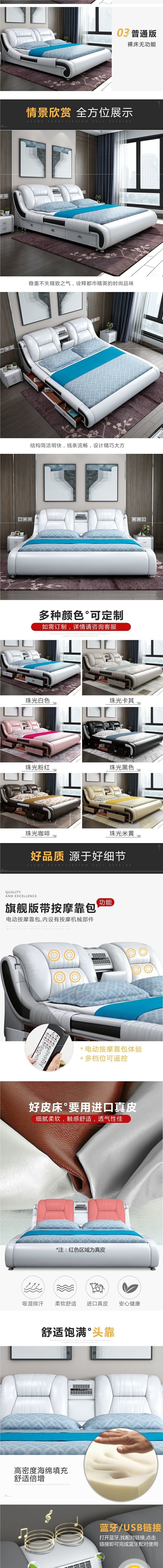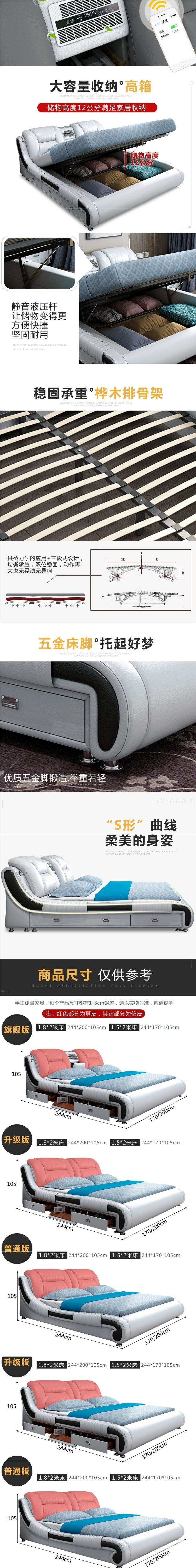 Smart Home Bed Double 1.8m Projector Pneumatic Drawer Multi-Functional Storage 1.5m Leather Master Bedroom King Bed
