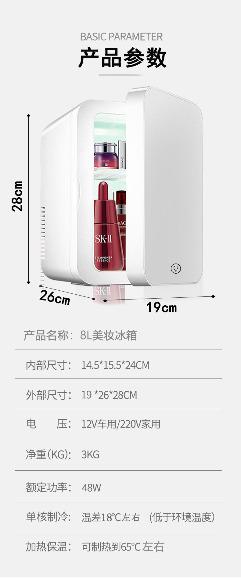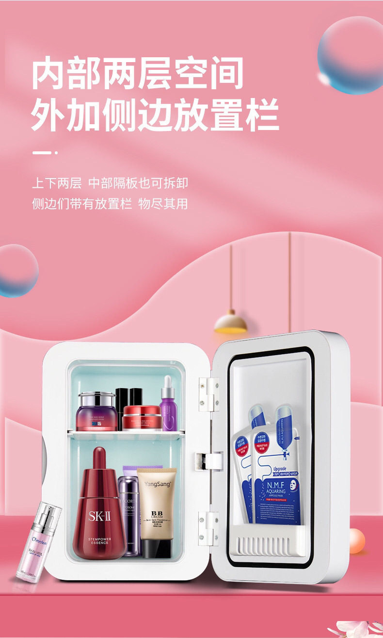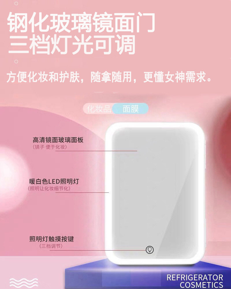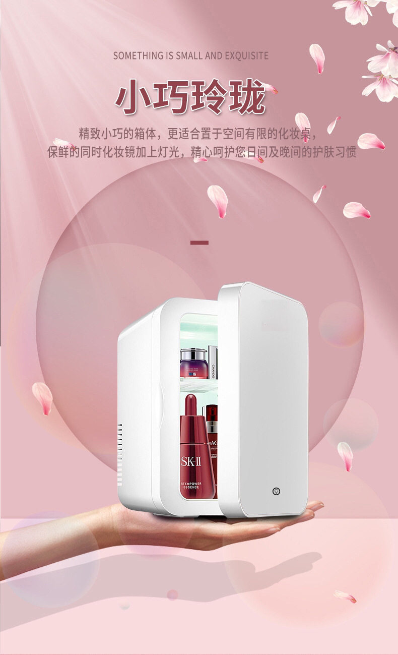 8L Mirror Small Refrigerator for Home and Car Use, Suitable for Storing Breast Milk, Facial Masks, Cosmetics, Beauty Products, Dual-Use for Cooling and Heating, Suitable for Mothers and Babies