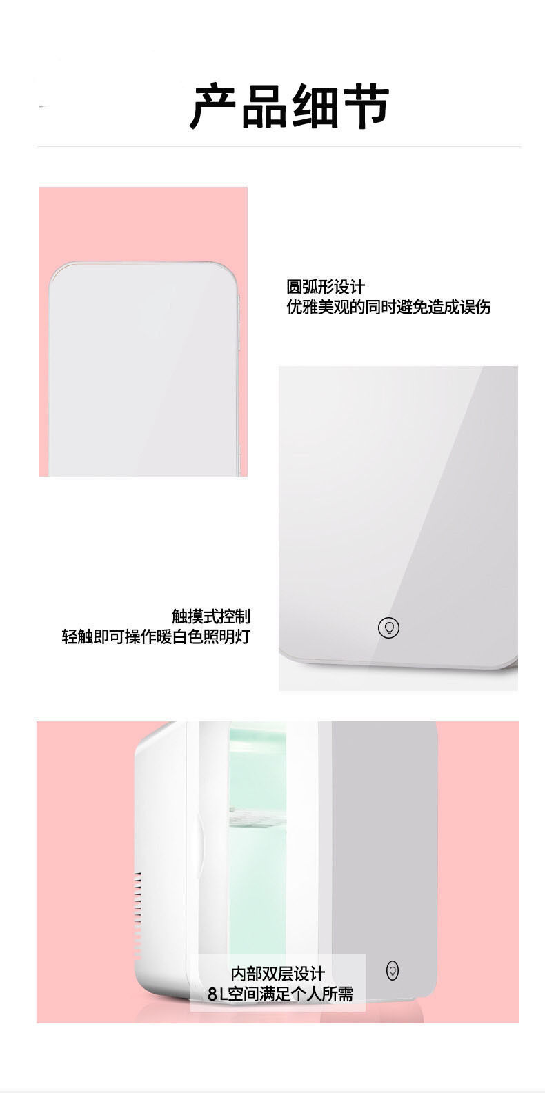 | Color | 8l white mirror+led light,8l pink mirror+led light |
