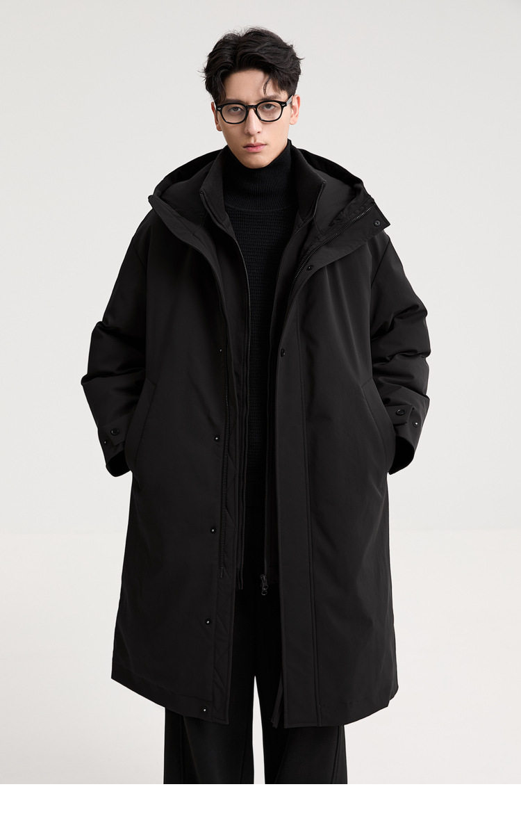 90 down Men's Windbreaker Style down Jacket 25 Winter New Warm Mid-Length Hooded Fake Two-Piece Jacket