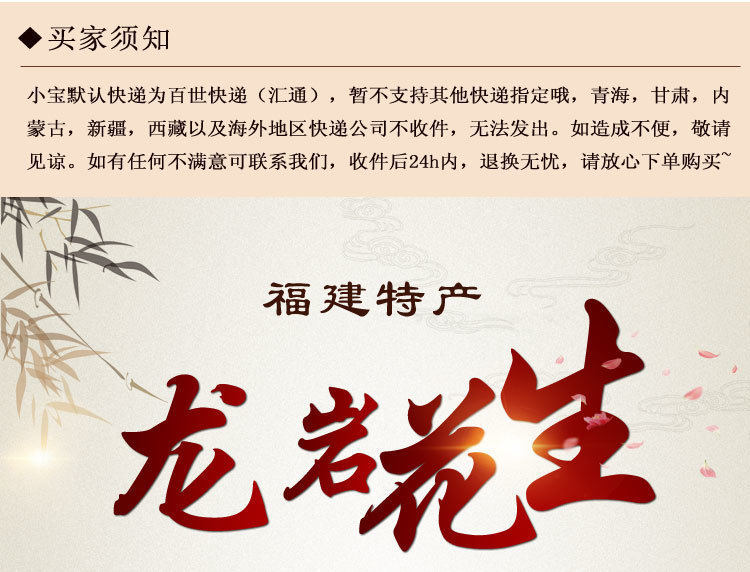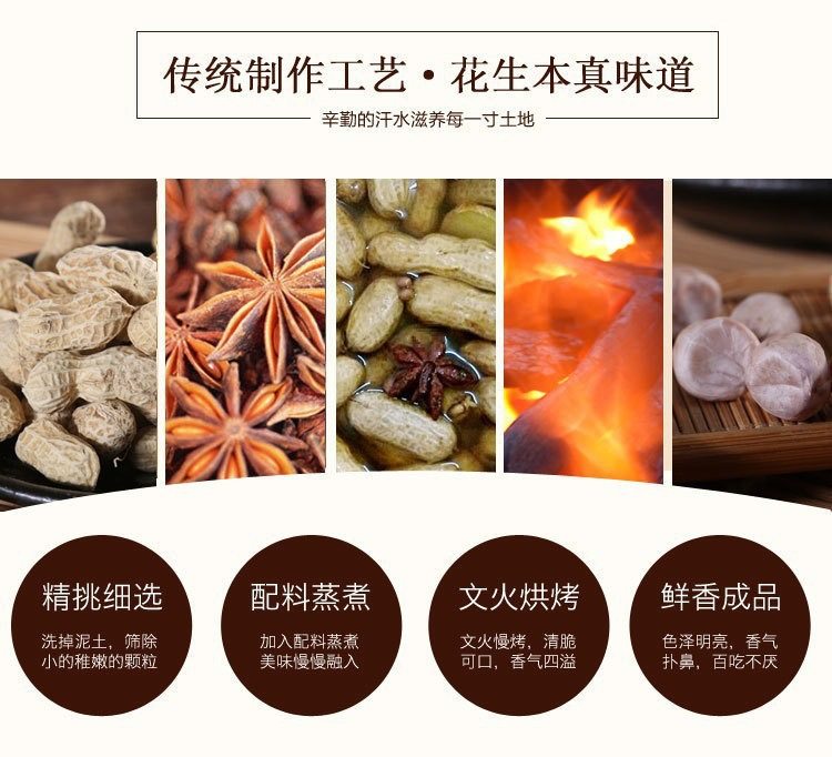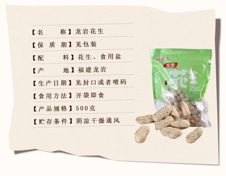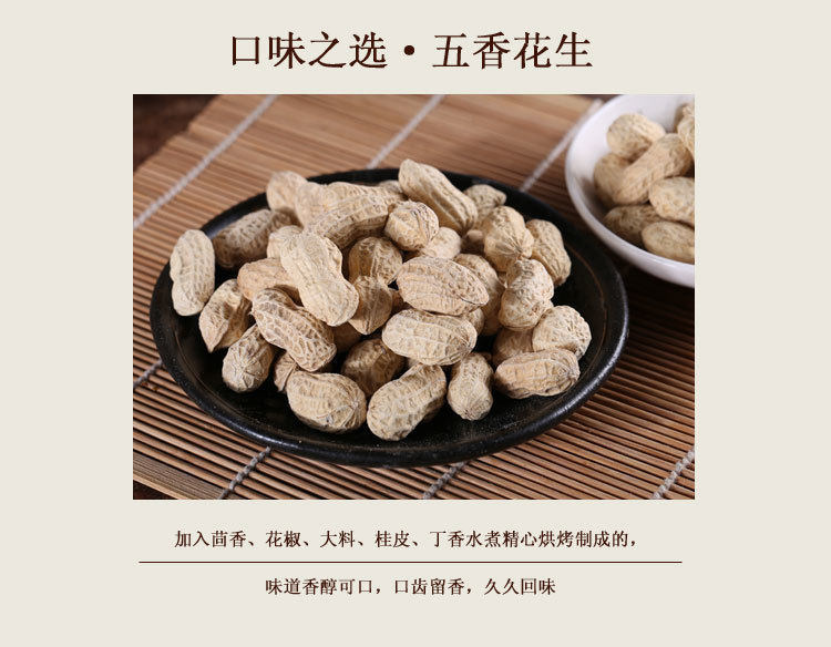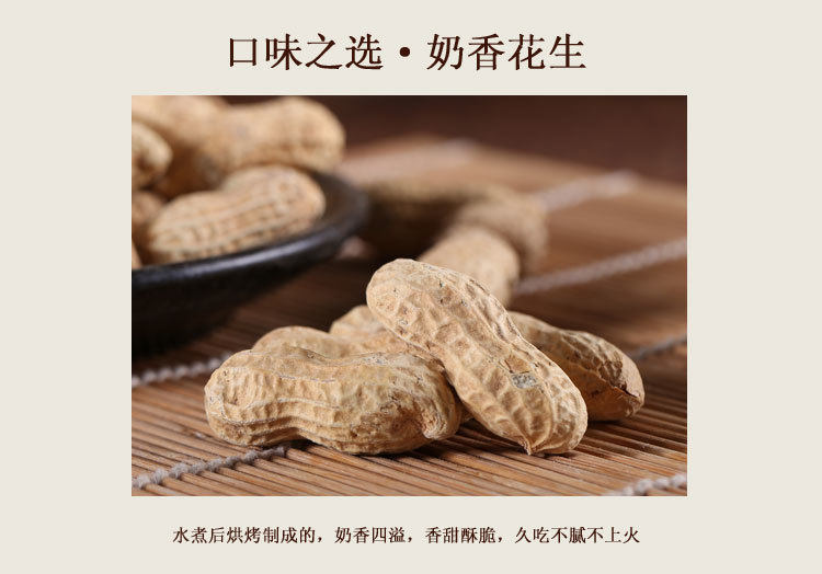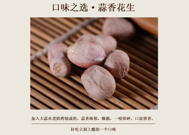 | Packaging specifications | Garlic peanuts-500g [one package],Garlic peanuts-1000g [two packages],Garlic peanuts-1500g [three packages],Garlic peanuts-2000g [four packs],Spiced peanuts-500g [one package],Spiced peanuts-1000g [two packages],Spiced peanuts-1500g [three packages],Spiced peanuts-2000g [four packs],Salted dried peanuts [salted crispy]-1000g [two packs],Salted dried peanuts [salted crispy]-1500g [three packs],Salted dried peanuts [salted crispy]-2000g [four packs],【】boiled and sun-dried peanuts-500g【one package】,【】boiled and sun-dried peanuts-1000g【two packages】,【】boiled and sun-dried peanuts-1500g【three packages】,【】boiled and sun-dried peanuts-2000g【four packages】,[five flavors + garlic flavor]-1000g [two packages],[boiled and sun-dried + five flavors]-500g [one package],[five flavors + garlic flavor]-500g [one package] |