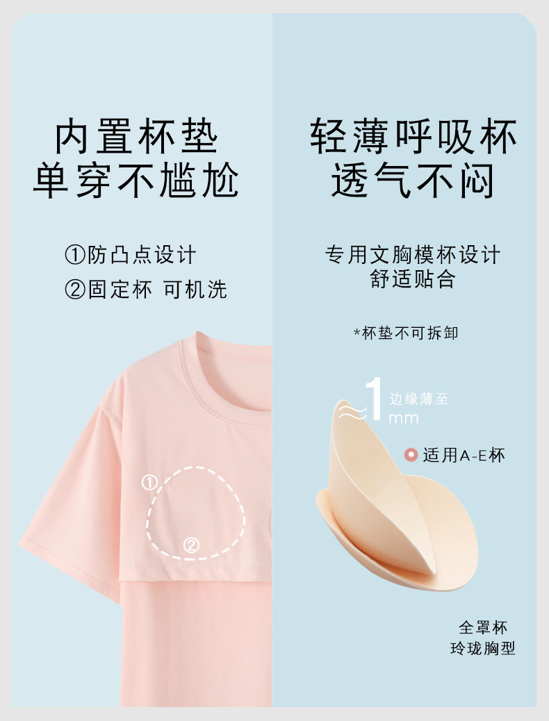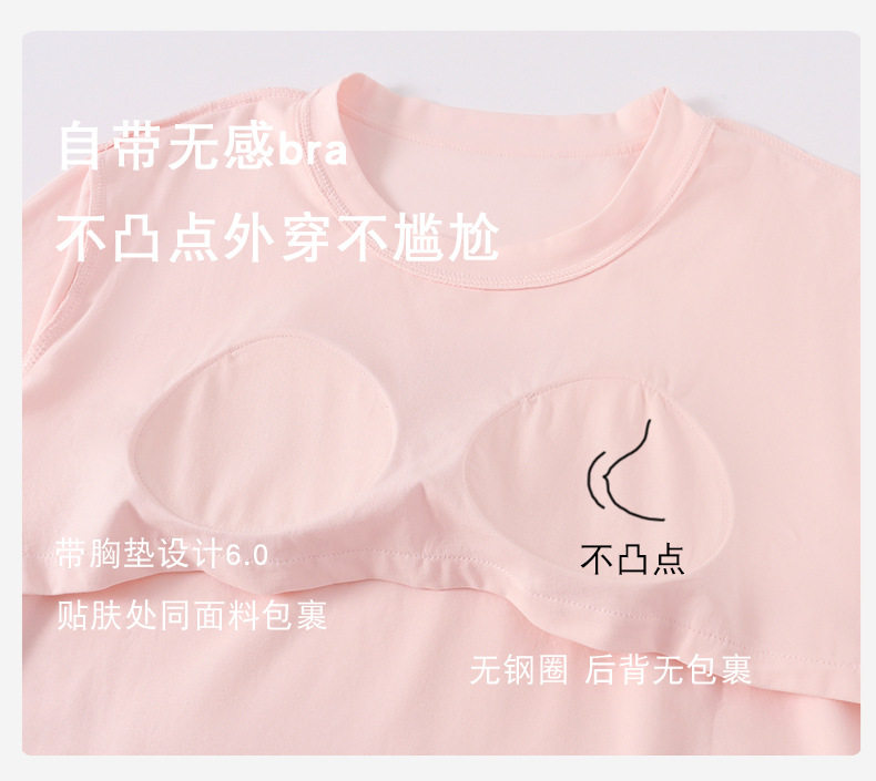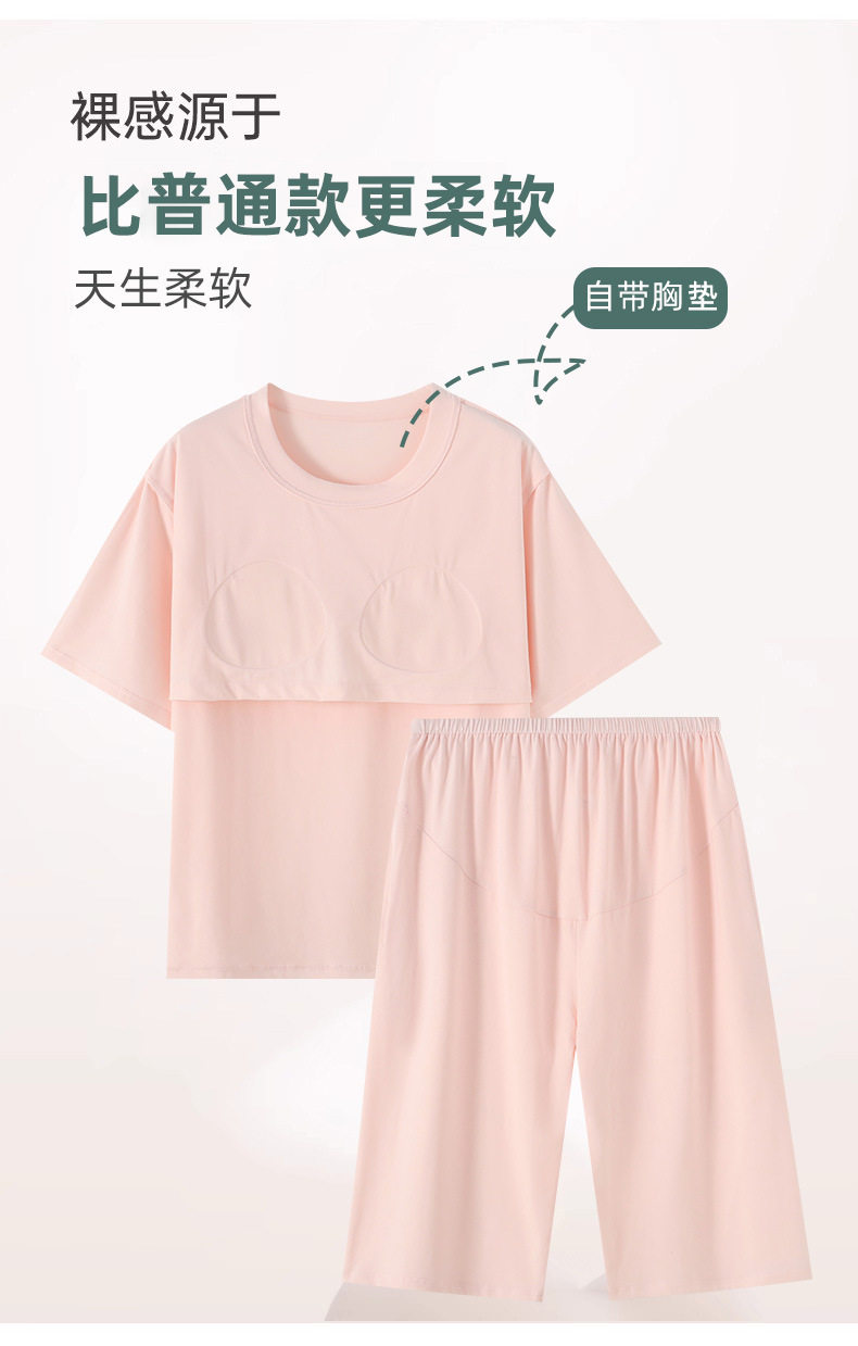 [with Breast Pad] Pajamas for Women Summer Category a Short Sleeve 100 Count Lenzing Modal Bra-Free Women's Home Clothes