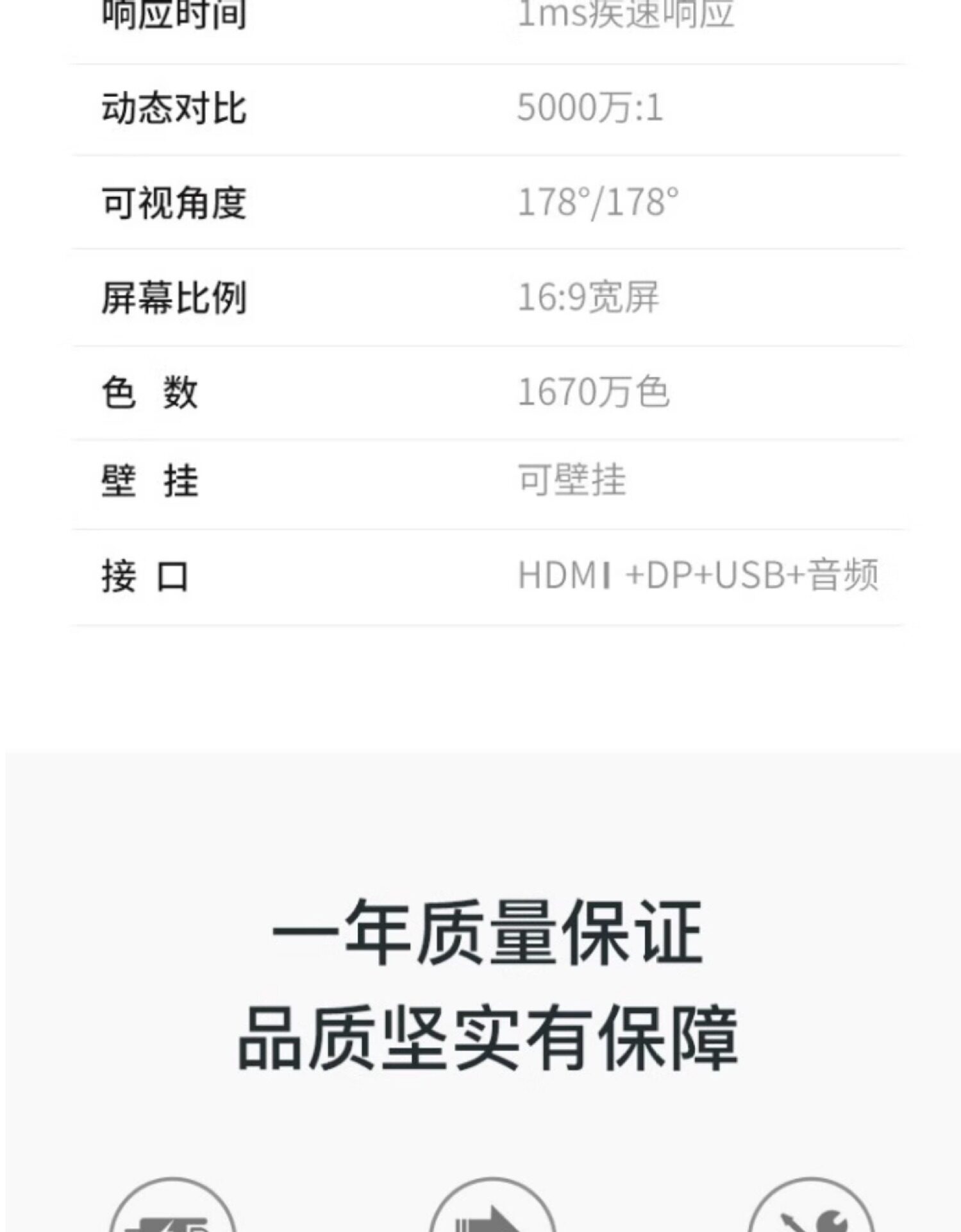 | Size | 24inch face black 75hz. [narrow bezel]-official standard,24inch face black 75hz. [borderless]-official standard,24inch face black 100hz [borderless]-official standard,24inch direct white 100hz [borderless]-official standard,24inch directly facing black 120hz gaming model. [narrow bezel] - official standard,24inch directly facing black 120hz gaming model. [borderless]-official standard configuration,24inch direct white 120hz e-sports model. [borderless] - official standard,24inch curved black 120hz gaming model. [borderless]-official standard,24inch directly facing black 144hz gaming model. [borderless]-official standard,24inch face-to-face black 180hz gaming model [borderless] - official standard,24inch face black 200hz gaming model [borderless] - official standard,24inch face black 240hz e-sports model [borderless] - official standard,24inch direct white 144hz gaming model. [borderless]-official standard,24inch direct white 180hz e-sports model. [borderless]-official standard,24inch curved black 144hz gaming model. [borderless]-official standard,24inch curved black 180hz gaming model. [borderless]-official standard,24inch face the darkness. [2k ultra-clear + 180hz high brush e-sports] - official standard configuration,24inch curved black 75hz. [borderless]-official standard,24inch curved white surface 75hz. [borderless]-official standard,24inch face the black 75hz. [built-in speaker + borderless]-official standard,27inch face black 75hz. [borderless]-official standard,27inch curved black 75hz. [borderless]-official standard,27inch face black 100hz. [borderless]-official standard,27inch direct white 100hz. [borderless] - official standard,27inch directly facing black 120hz gaming model. [borderless]-official standard configuration,27inch curved black 120hz gaming model. [borderless]-official standard,27inch directly facing black 144hz gaming model. [borderless]-official standard,27inch directly facing black 165hz gaming model. [borderless] - official standard configuration,27inch curved black 144hz gaming model. [borderless]-official standard,27inch curved black 180hz gaming model [borderless] - official standard,27inch face the darkness. [2k ultra-clear + 120hz high brush e-sports] - official standard configuration,27inch face the black [2k ultra clear + 144hz high refresh rate e-sports] - official standard,27inch face the darkness. [2k ultra-clear + 165hz high brush e-sports] - official standard configuration,27inch face the darkness. [2k ultra-clear + 180hz high brush e-sports] - official standard configuration,27inch curved black. [2k ultra-clear + 144hz high brush e-sports] - official standard configuration,27inch curved black. [2k ultra-clear + 180hz high brush e-sports] - official standard,32inch curved black. [2k hd + 180hz high brush e-sports] - official standard,34inch face the black. [4k hd + hairtail screen] - official standard,24inch direct white 60hz [borderless]-official standard,24inch face black 100hz [narrow bezel]-official standard,24inch face-to-face black 165hz gaming model [borderless] - official standard,24inch directly facing the black 240hz gaming model. [borderless]-official standard configuration,Tmall genuine product - official standard,Brand direct sales - official standard configuration,Extremely fast delivery - official standard configuration |