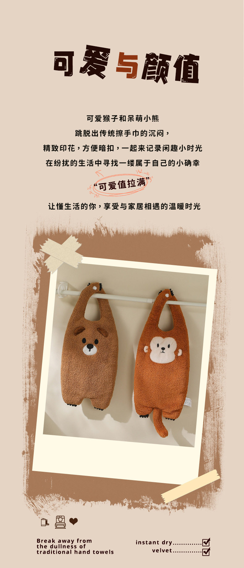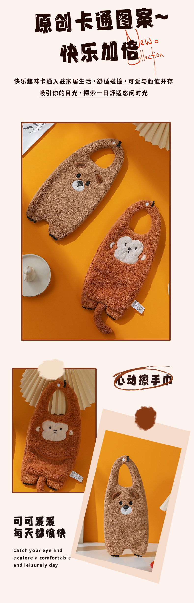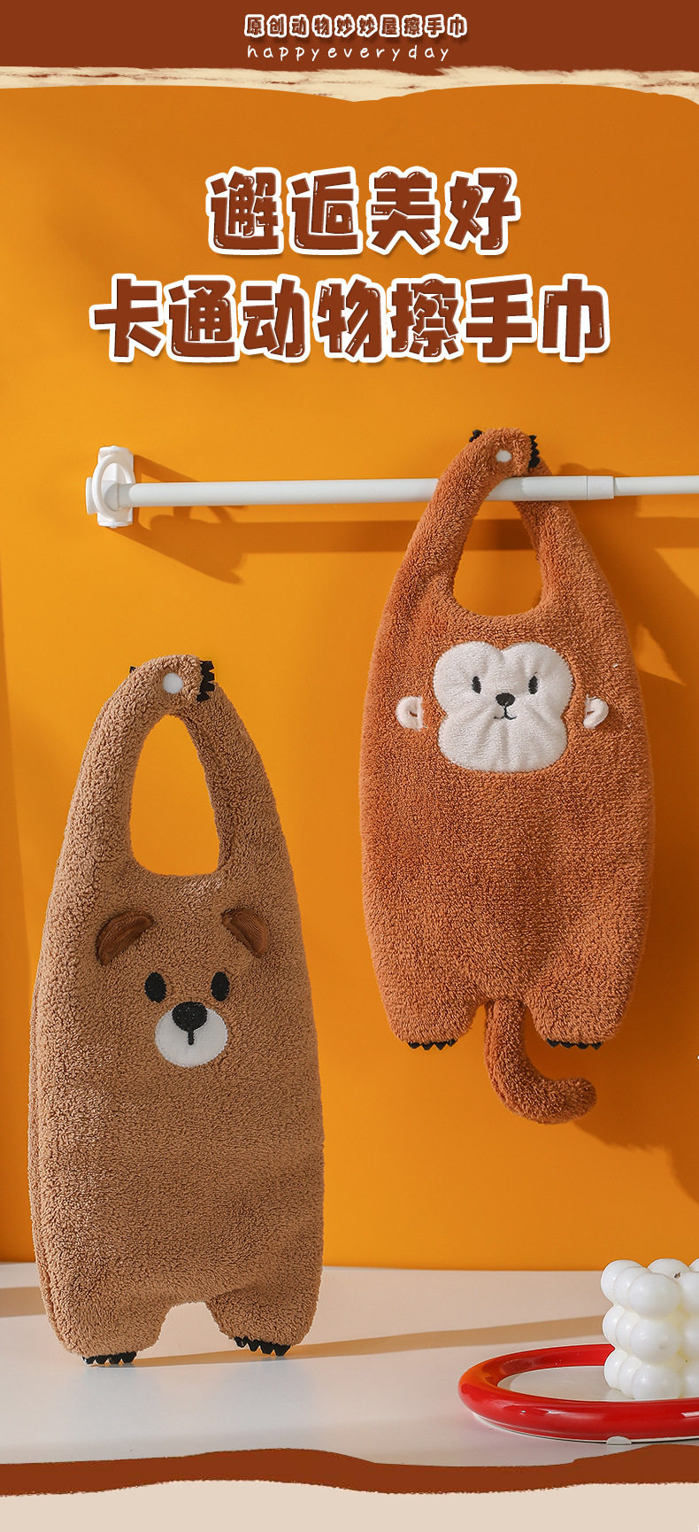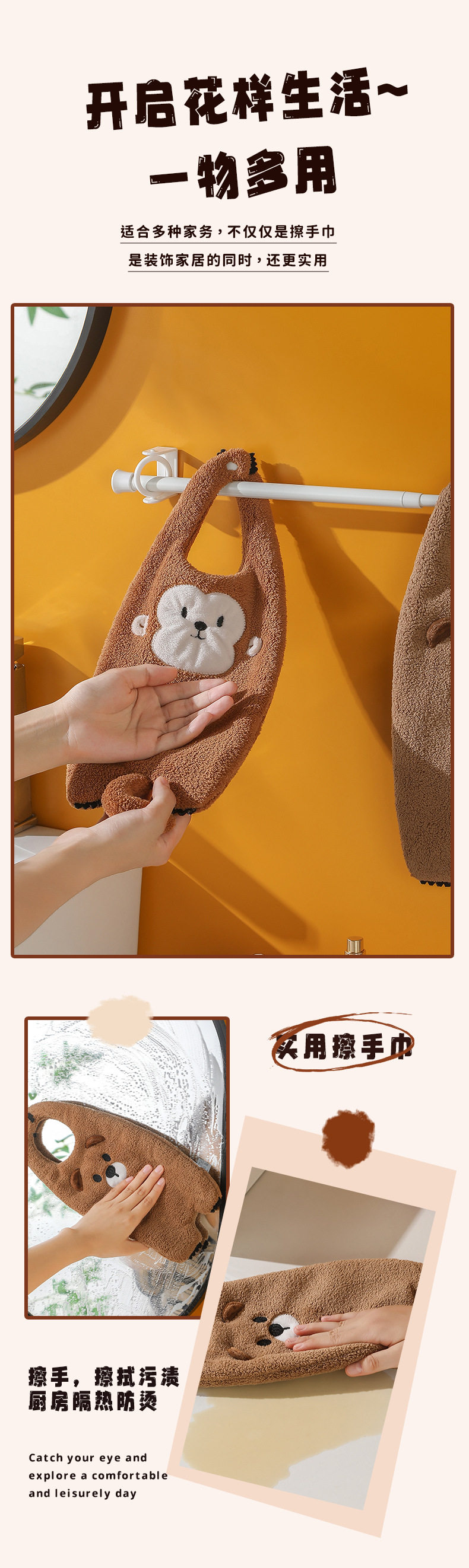 New Cartoon Hand Towel Coral Velvet Thickened Absorbent Hand Towel Hanging Kitchen Bathroom Household Quick-Drying Towel