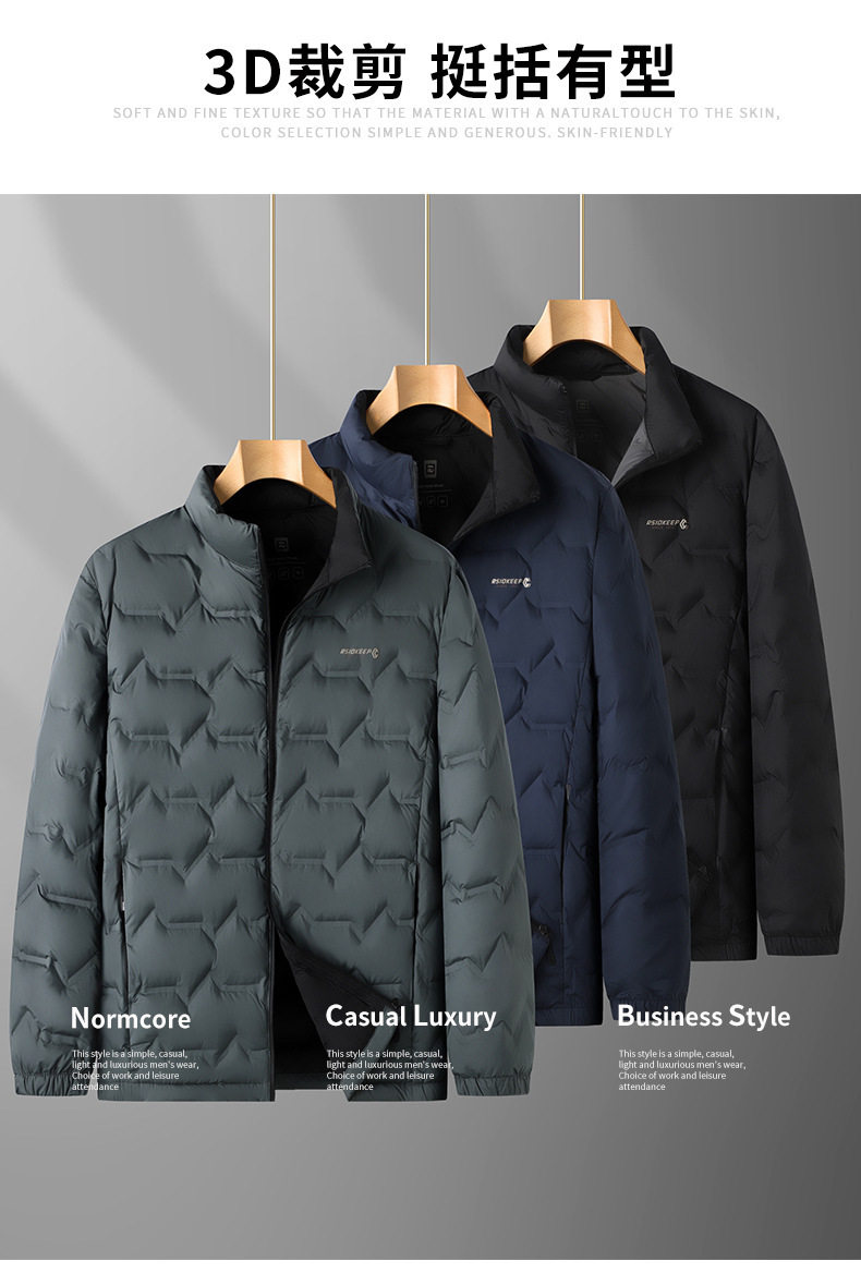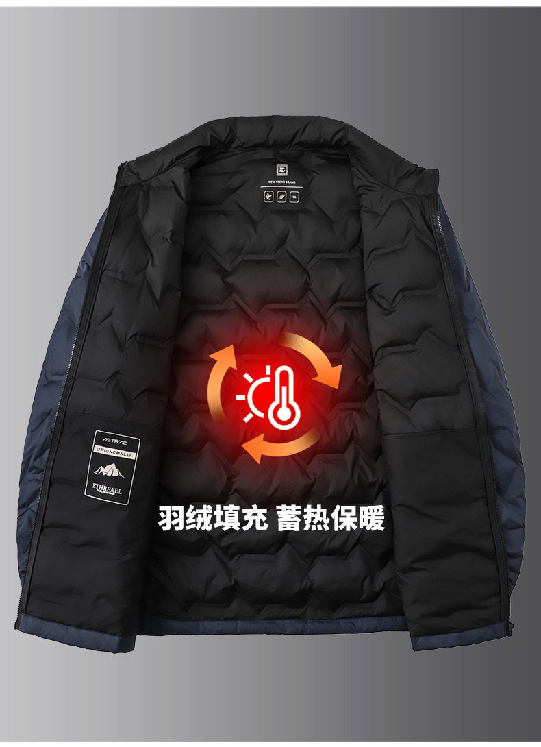2025 Winter Men's Warm and Lightweight down Jacket Plus Fat Plus Size Fashionable Stand-Up Collar Jacket Loose and Versatile to Keep Warm