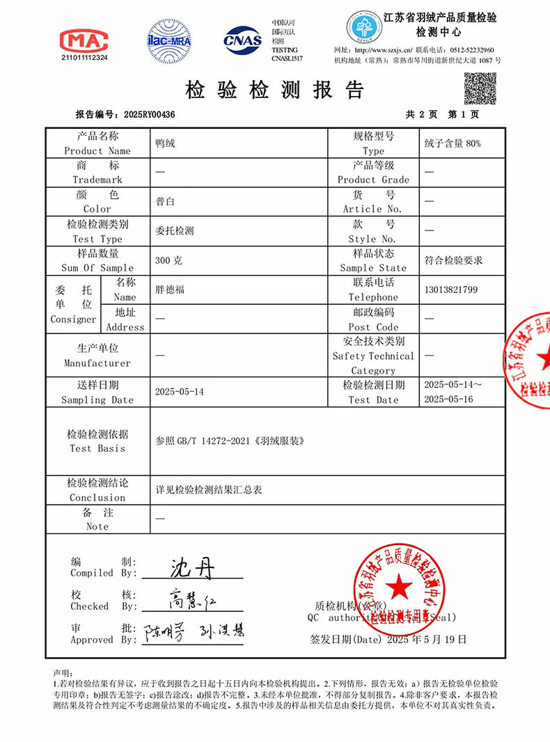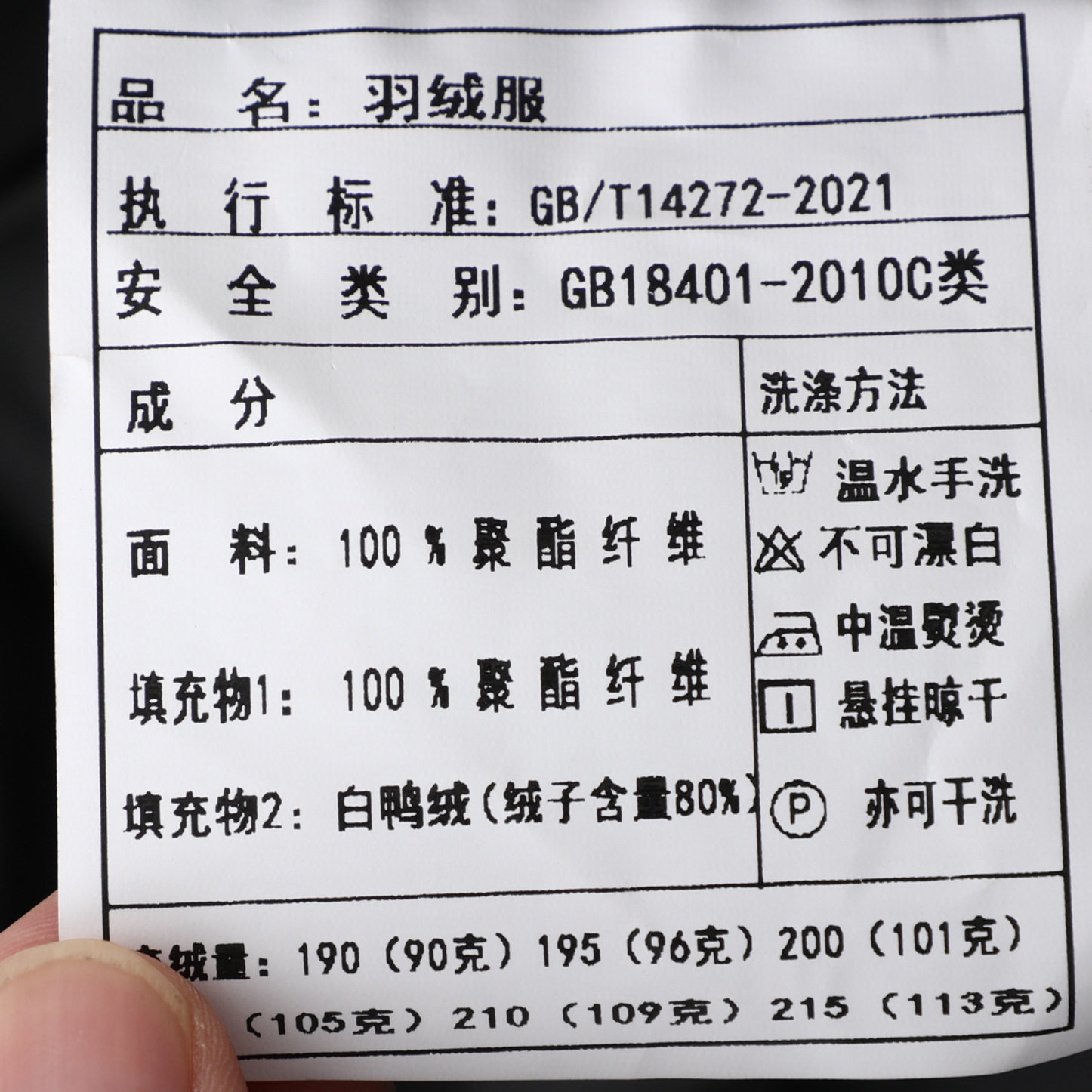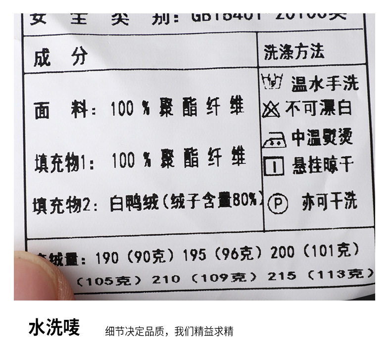 | Down filling amount | 90-113g |