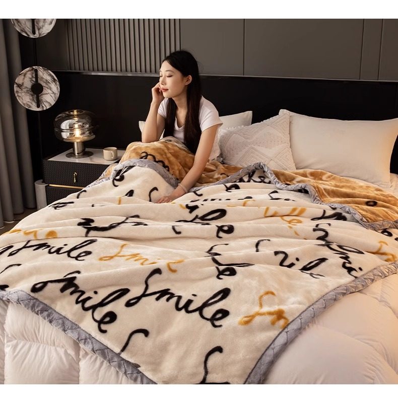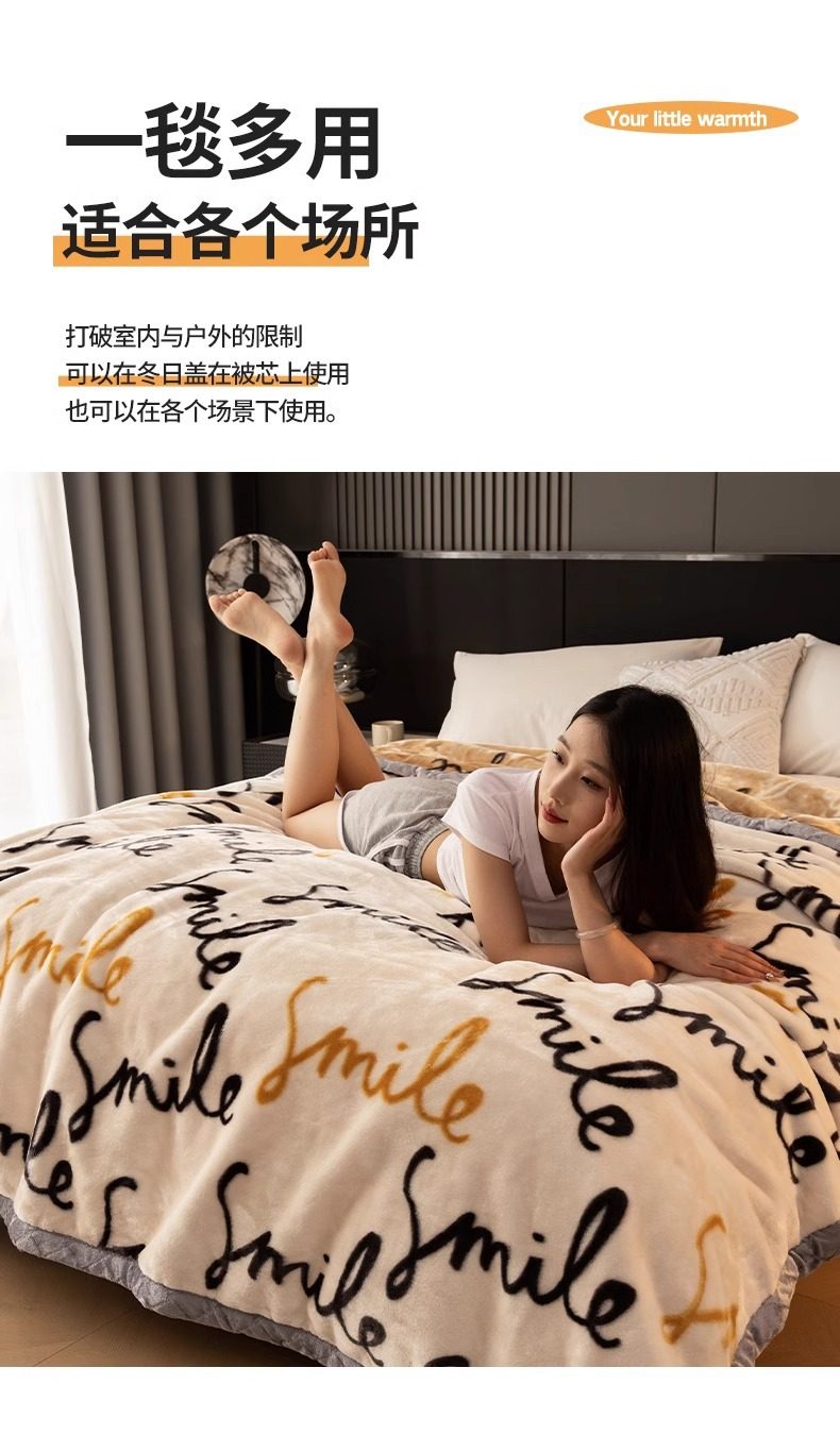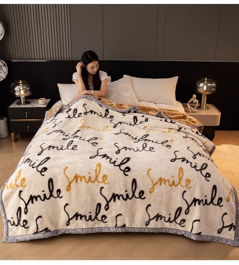 Raschel Blanket Winter Thickeneded Blanket Fleece-Lined Nap Blanket Office Student Dormitory Coral Velvet Sofa Blanket