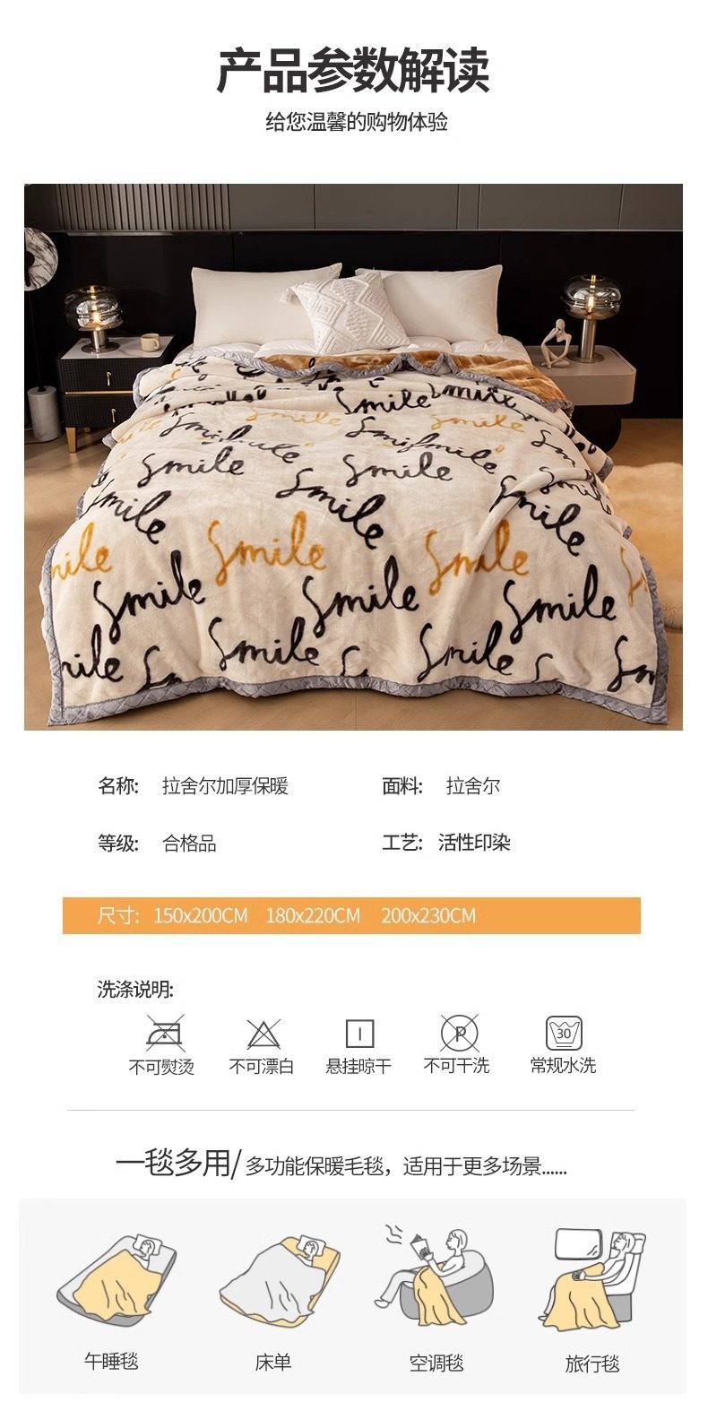 | Blanket type | Raschel blanket |