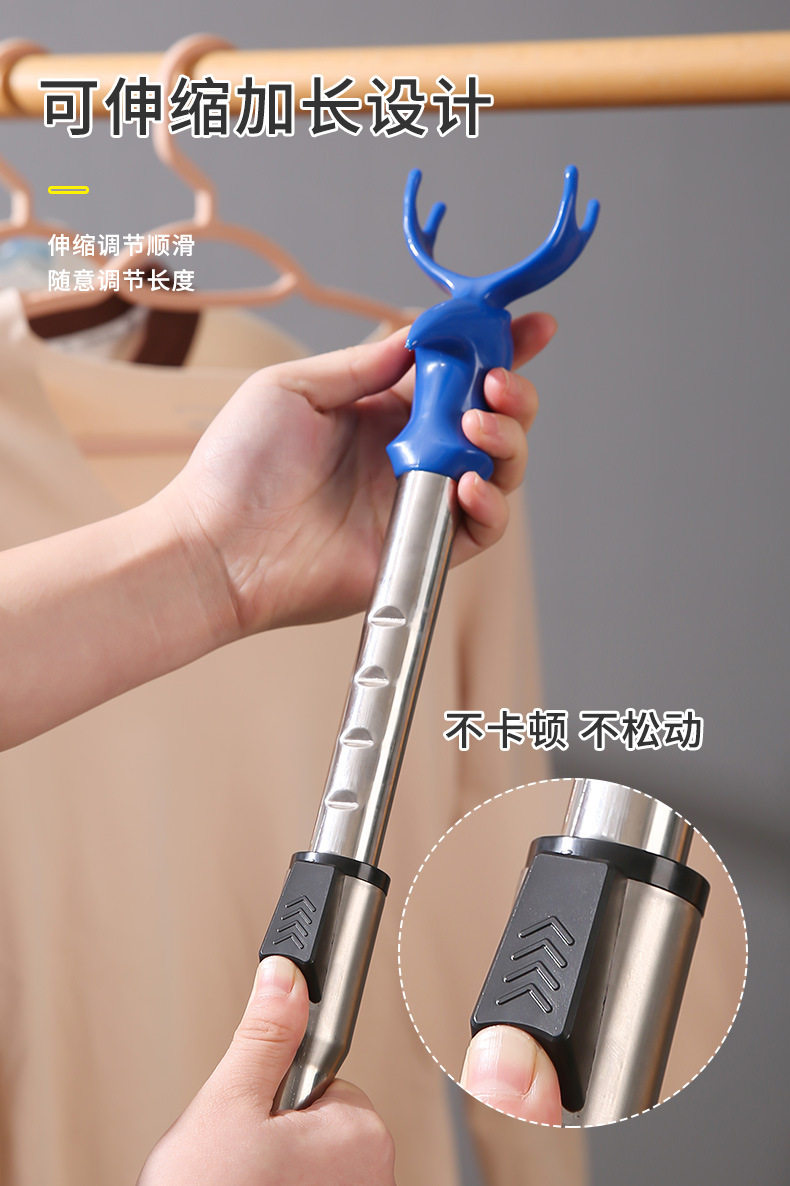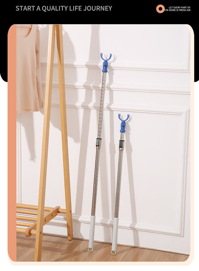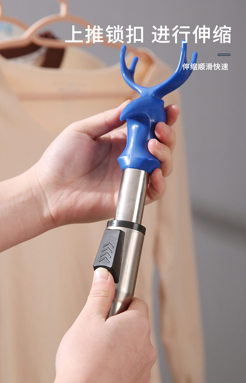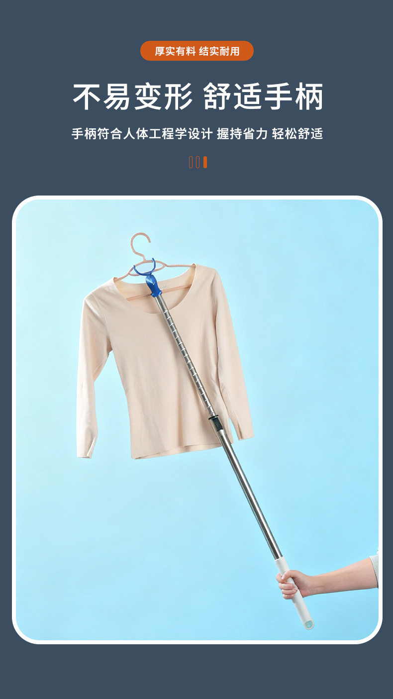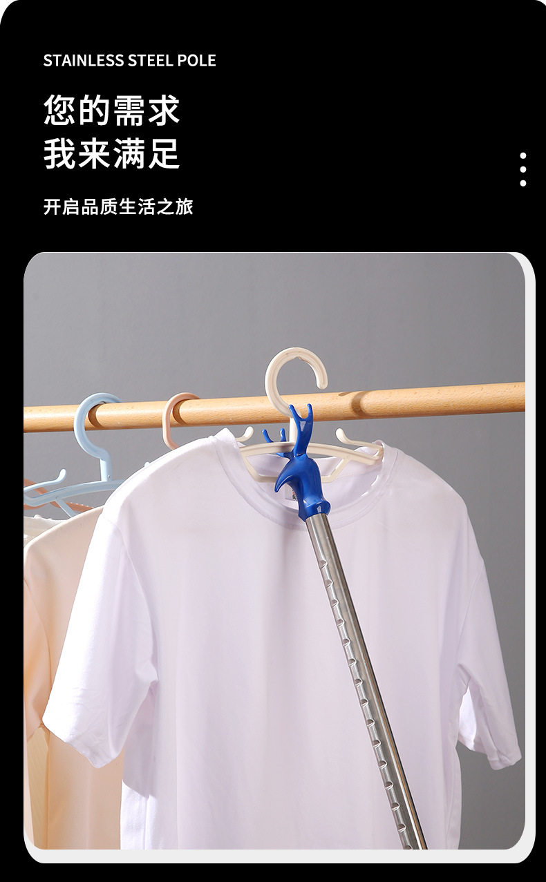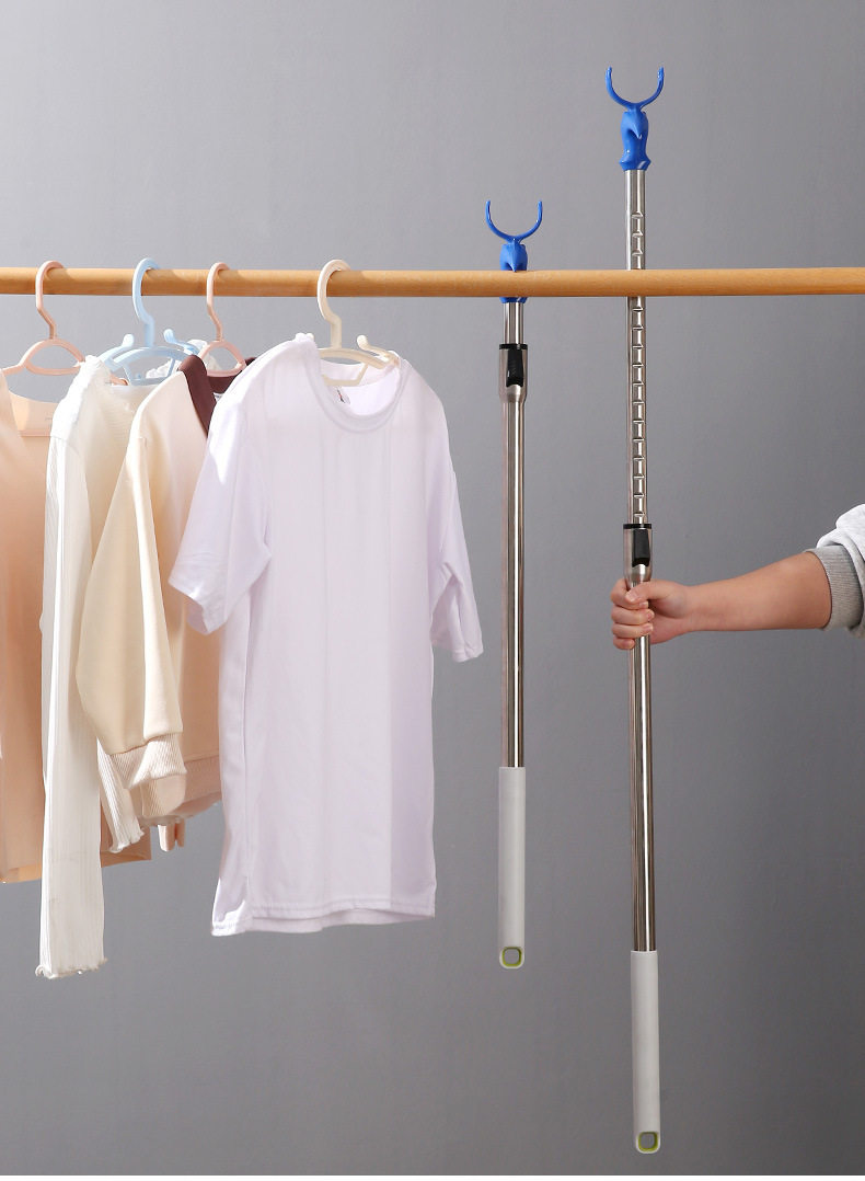 Expandable Clothes Hanger Rod for Home Use, Integrated Clothes Drying Rod, Stainless Steel Thickened Dormitory Balcony Extended Fork