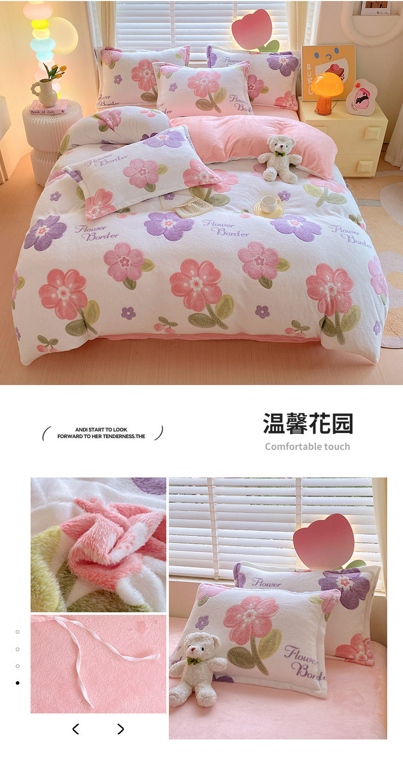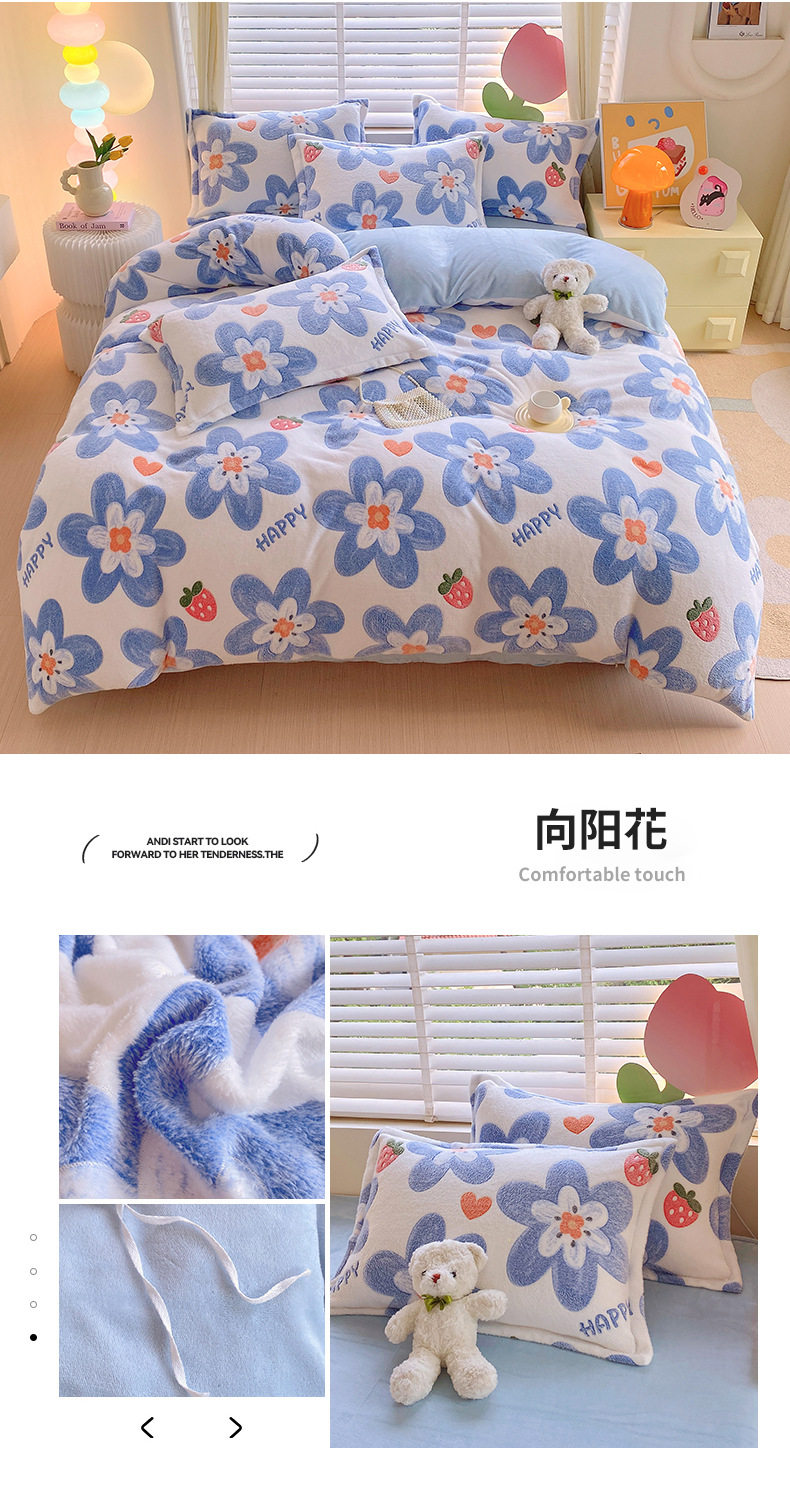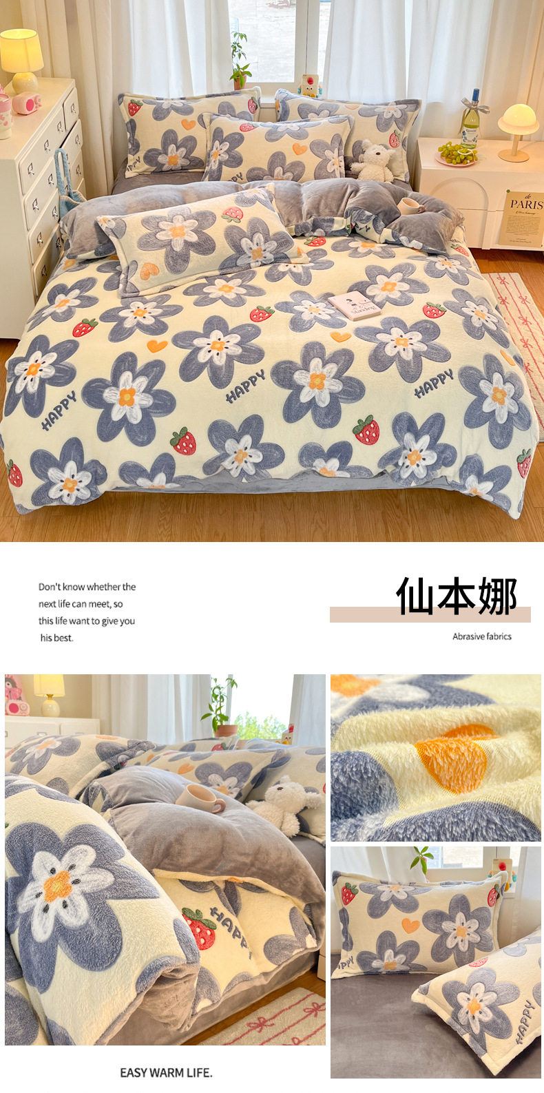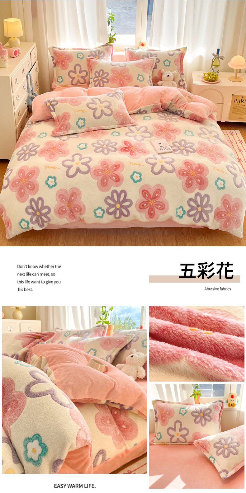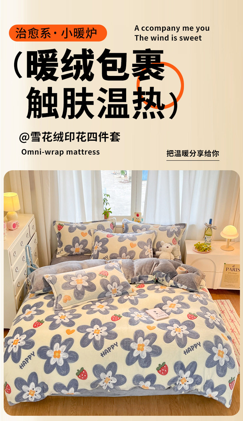 Thickened Snowflake Velvet Four-Piece Winter Coral Milk Velvet Quilt Cover Double-Sided Velvet Bed Sheets Quilt Cover Three-Piece Fitted Bed Sheets Set
